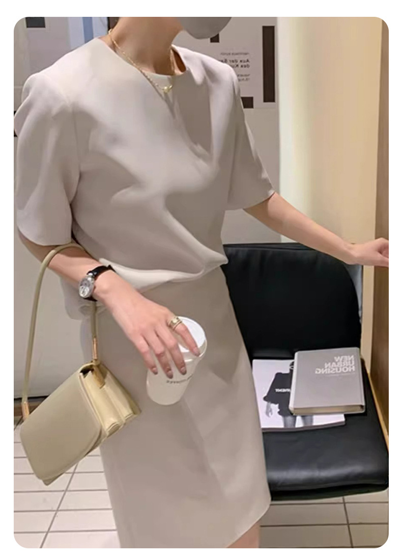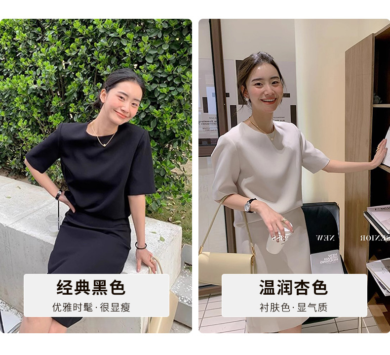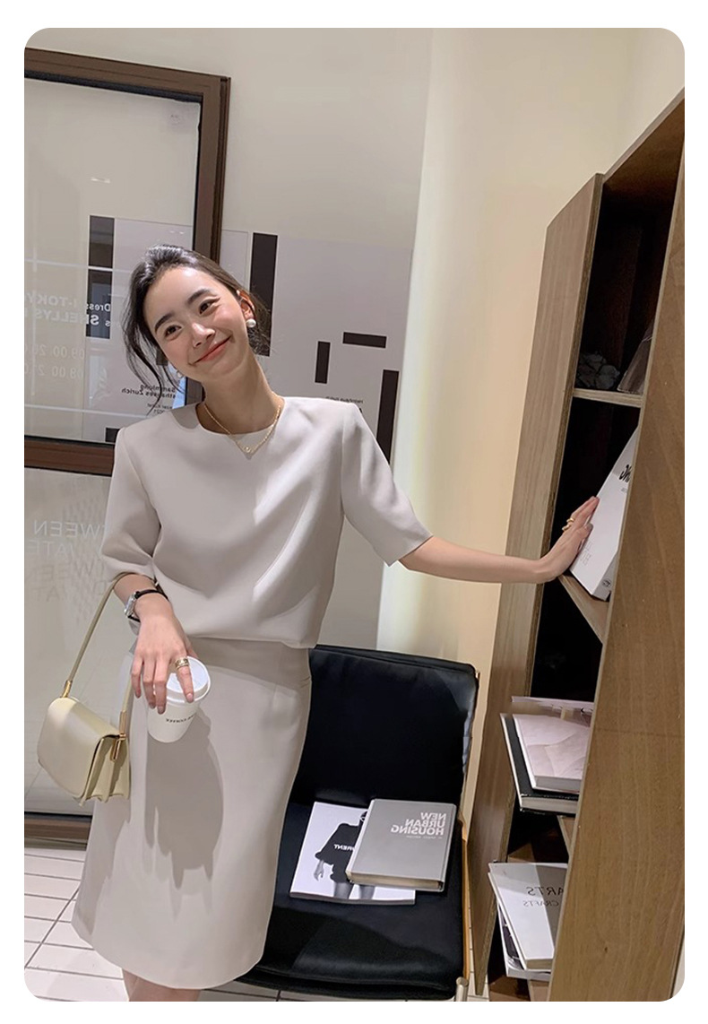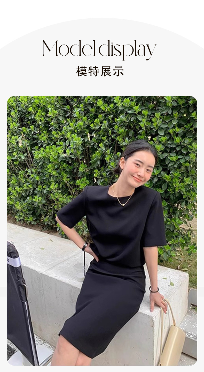 Xiaoxiangfeng 라운드 넥 반팔 우아한 레이디 탑 여성 여름 신작 2025 하이 웨이스트 슬림 스커트 투피스 슈트스토어 가기