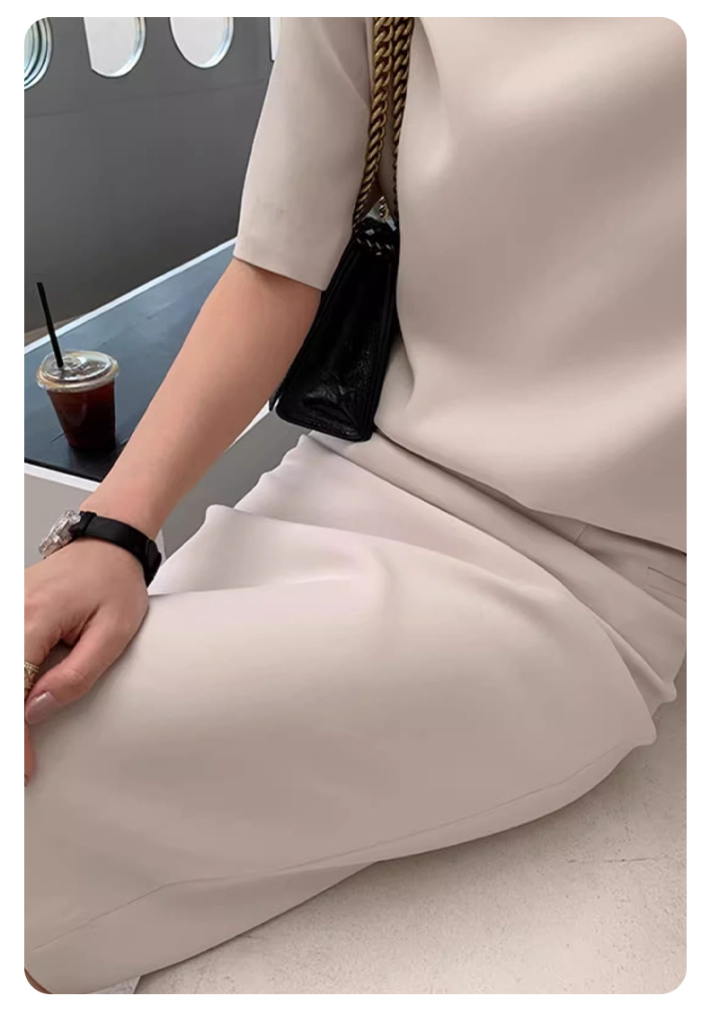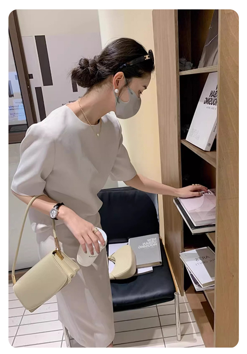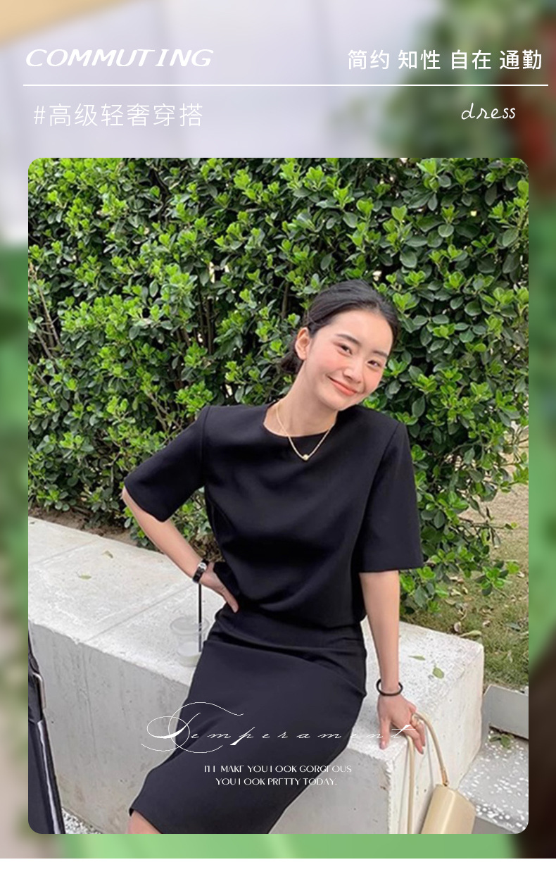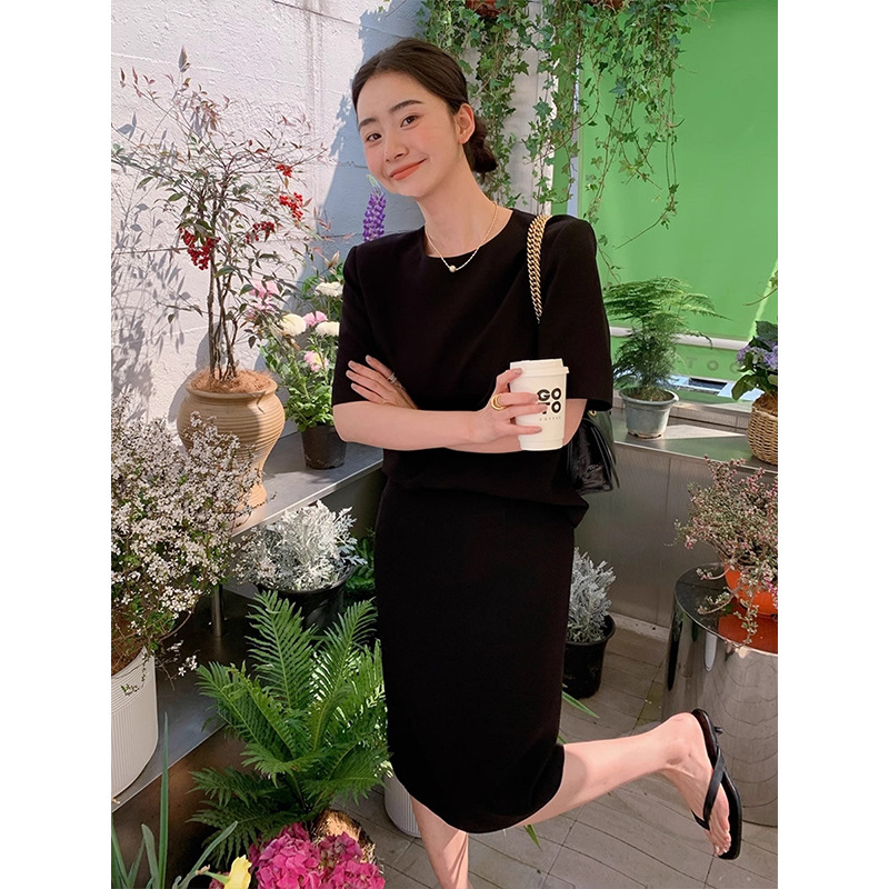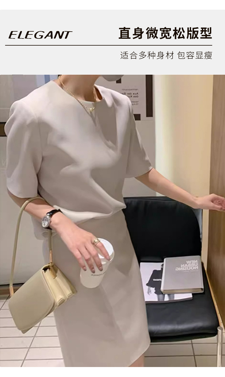 Xiaoxiangfeng 라운드 넥 반팔 우아한 레이디 탑 여성 여름 신작 2025 하이 웨이스트 슬림 스커트 투피스 슈트스토어 가기