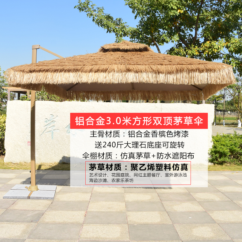 • 대리석 기초를 가진 3 m 스퀘어 더블 초가 로마 우산
