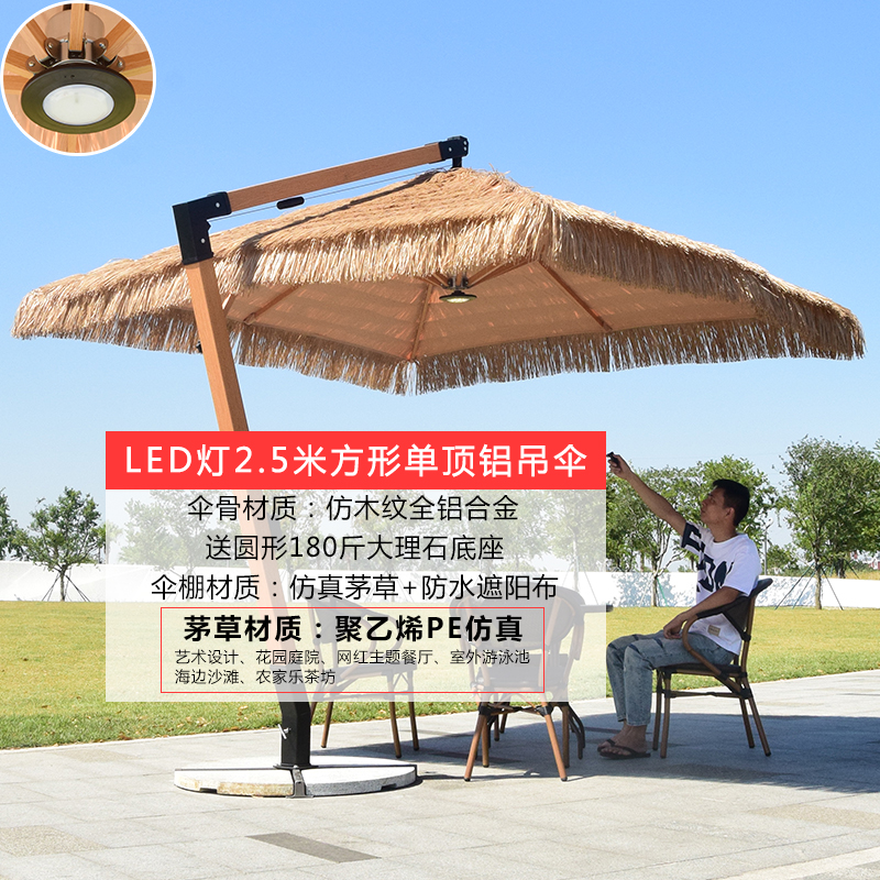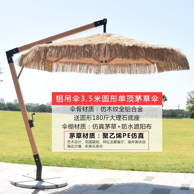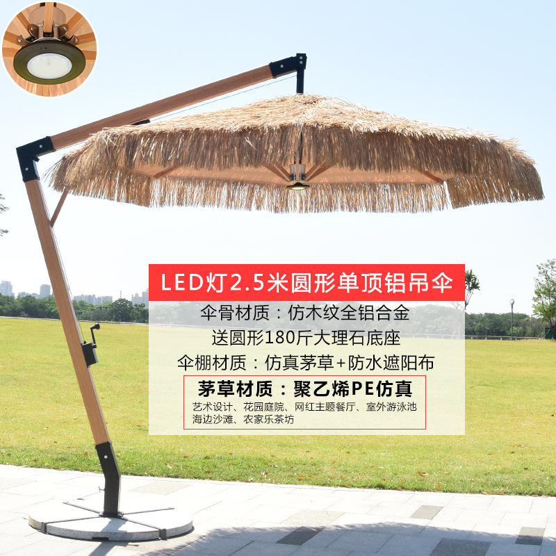 • 2.5 m 둥근 초가 알루미늄 매달려 우산 대리석베이스 강화