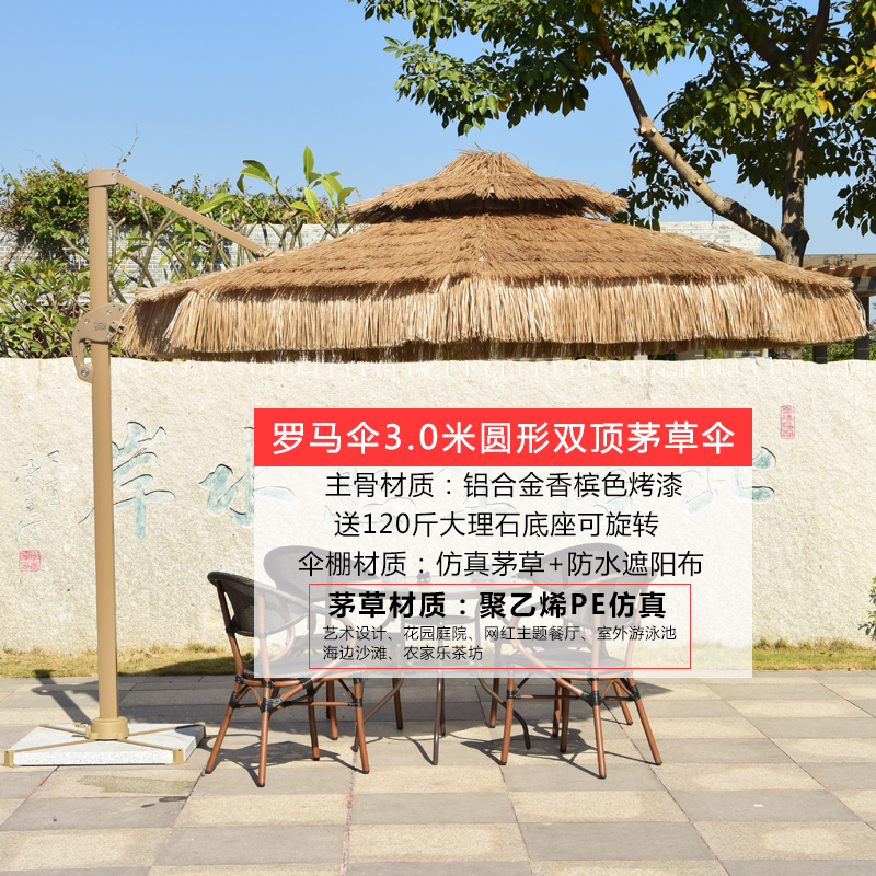 • 대리석 기초를 가진 3 m 라운드 더블 초가 로마 우산