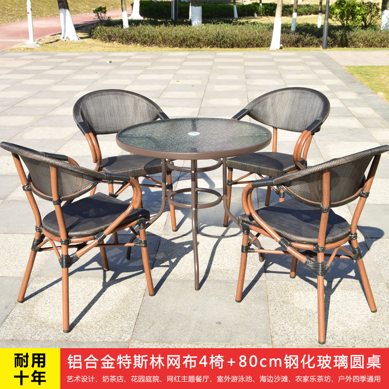• 테슬린 메쉬 4 의자 80 강화 유리 라운드 테이블