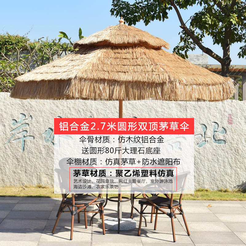 • 알루미늄 합금 2.7 m 둥근 더블 탑 초가 중간 기둥 우산 대리석 바닥