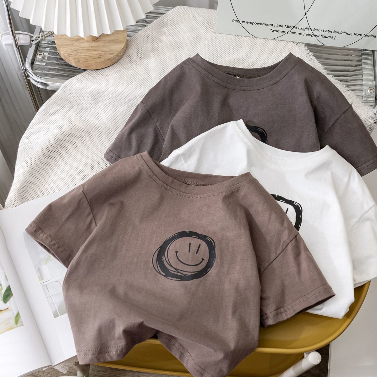 남학생 반소매 티셔츠 여름용 얇은 탑 어린이 반소매 한국면 아기의 여름 티셔츠