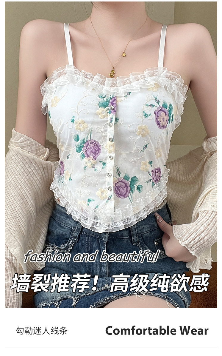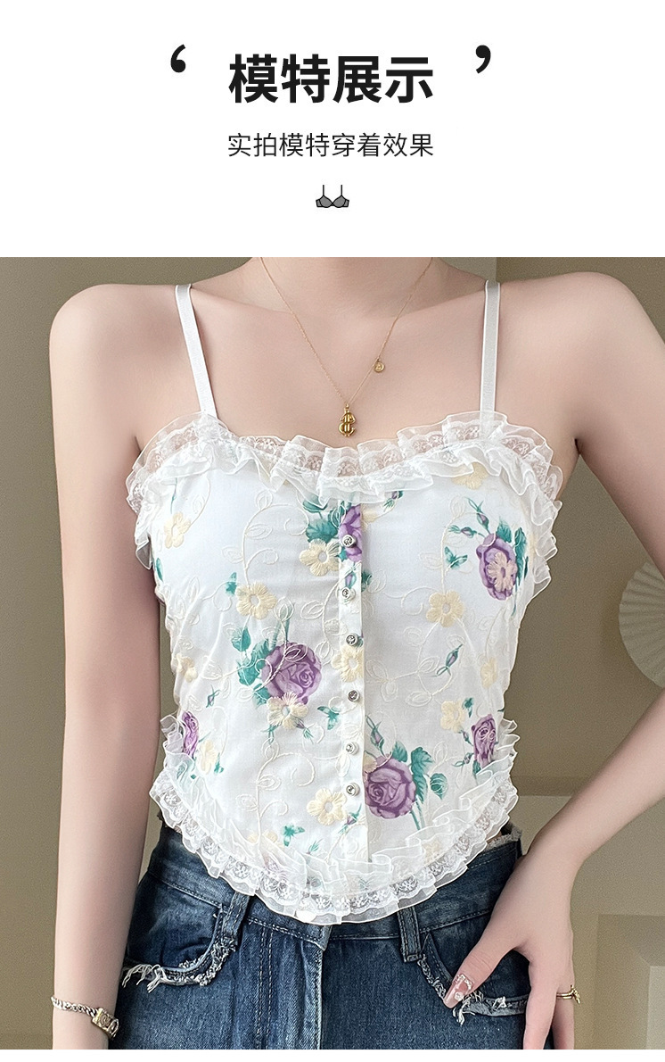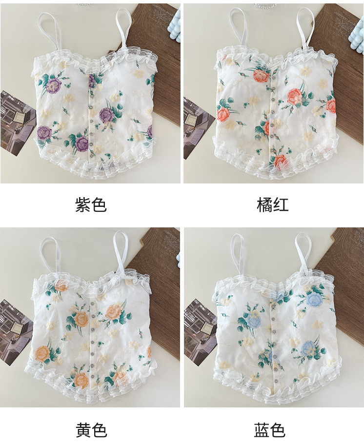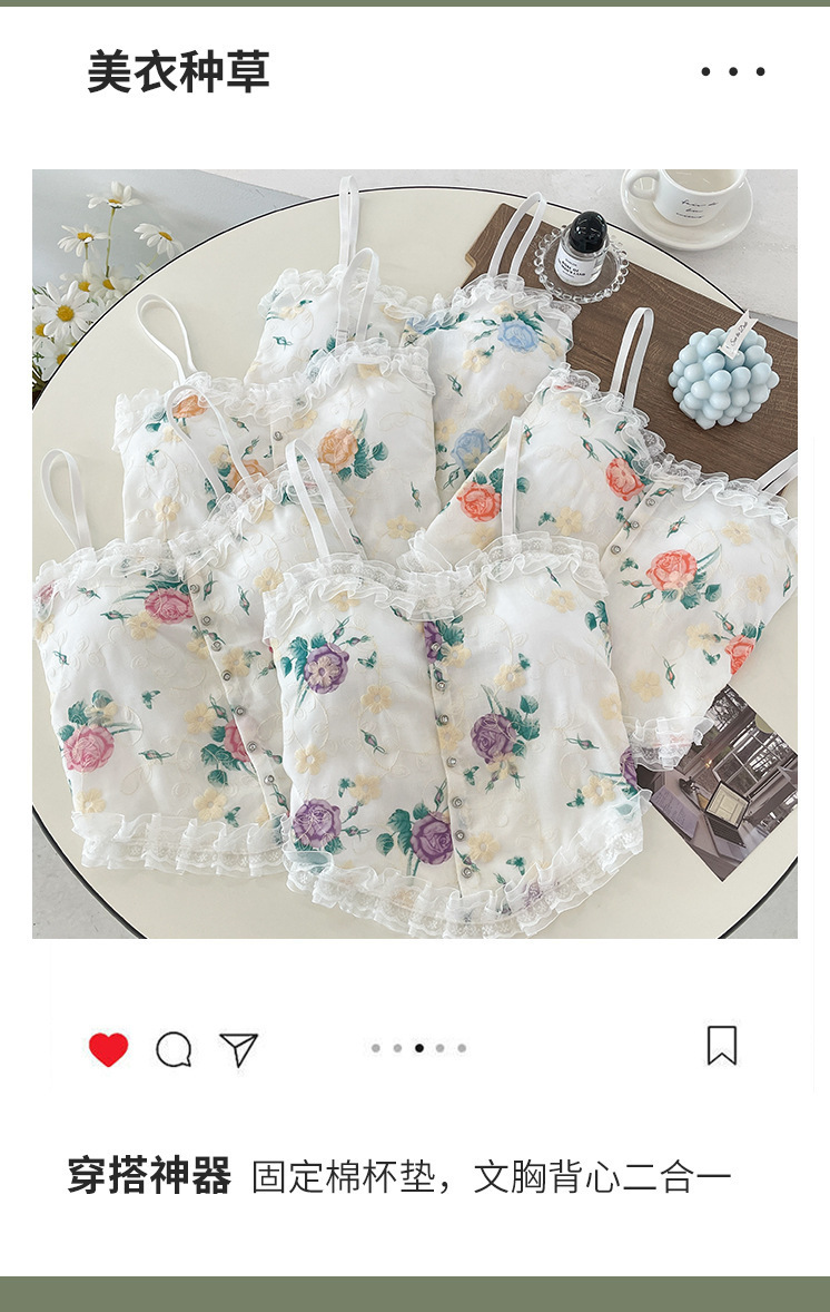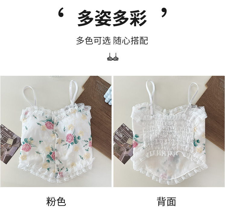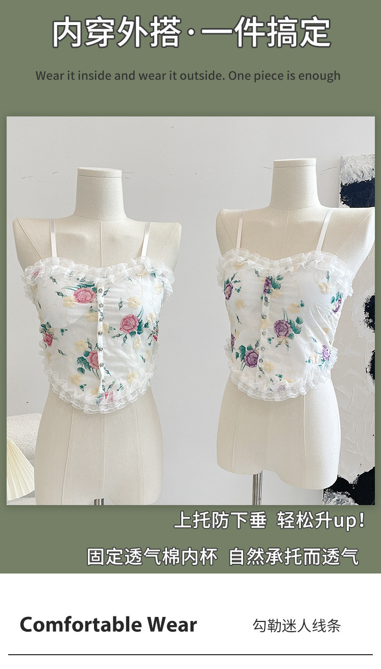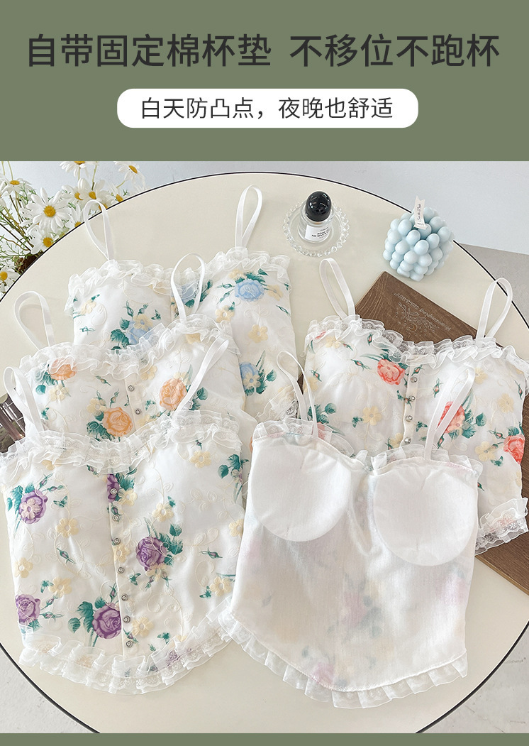 꽃 달콤한 레이스 작은 카미솔 소녀 로즈 인쇄 꽃 원피스 편안한 통기성 튜브 탑