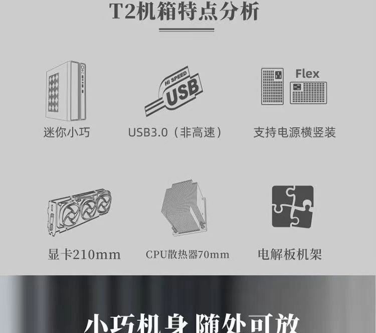 Colorfish T1 비즈니스 HTPC 데스크탑 컴퓨터 휴대용 미니 데스크탑 소형 메인 섀시 1U 전원 공급 장치