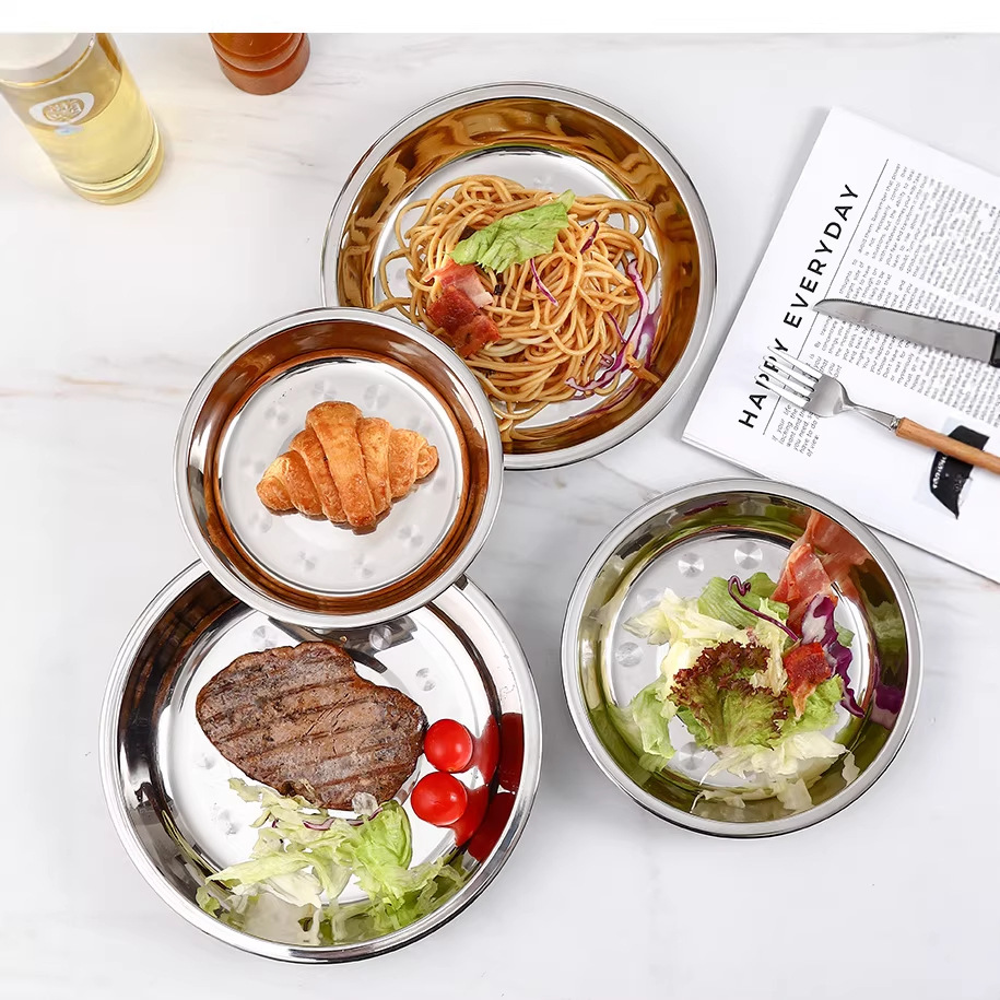 가족 요리 및 레스토랑 호텔 딥 플레이트 도매를위한 두꺼운 304 스테인레스 스틸 디스크 조미료 요리스토어 가기