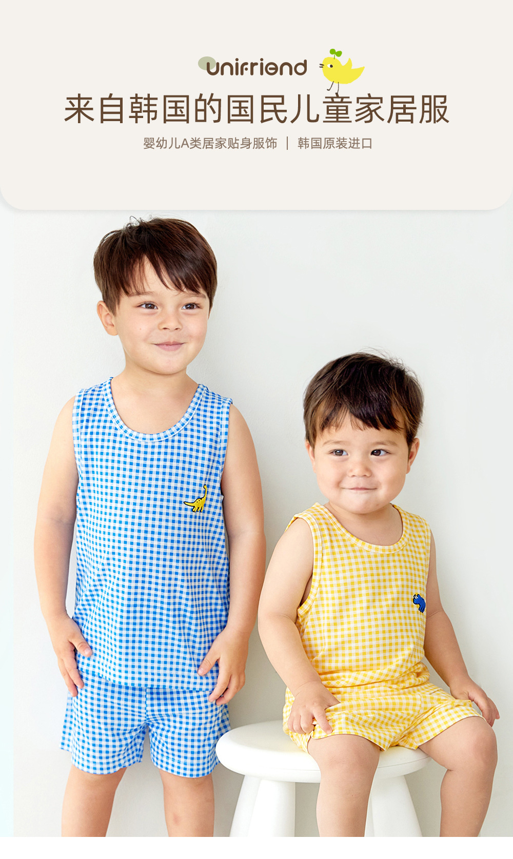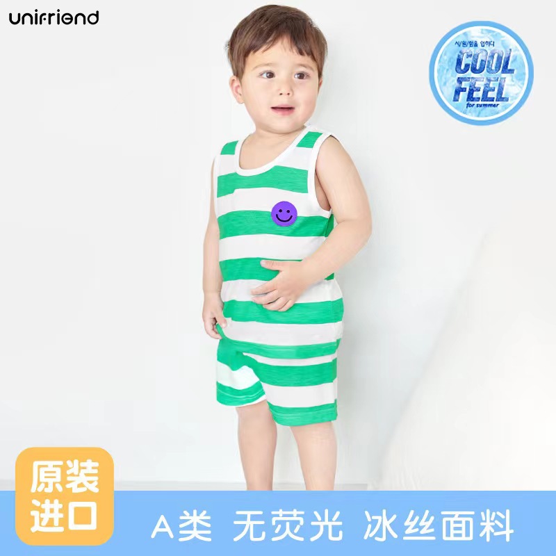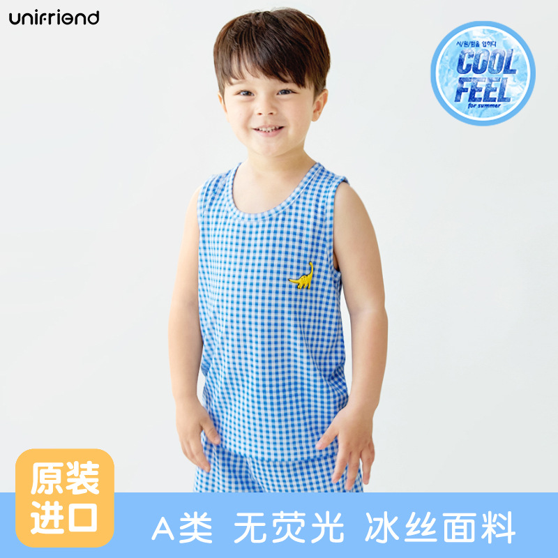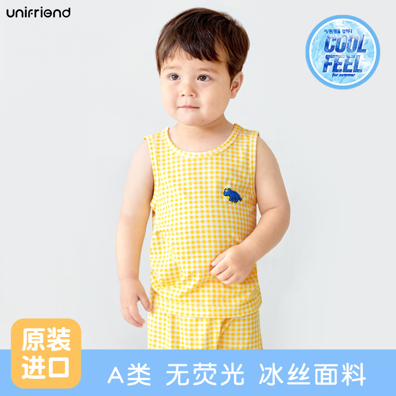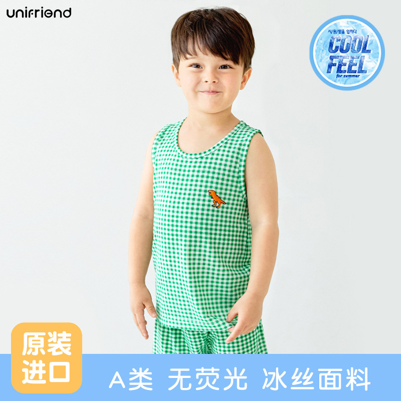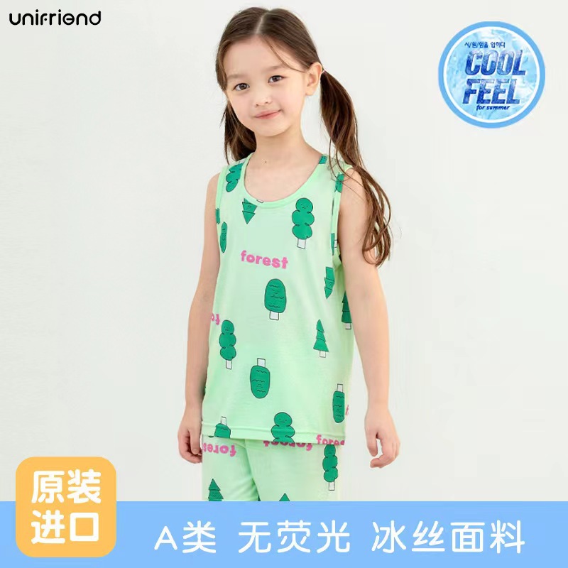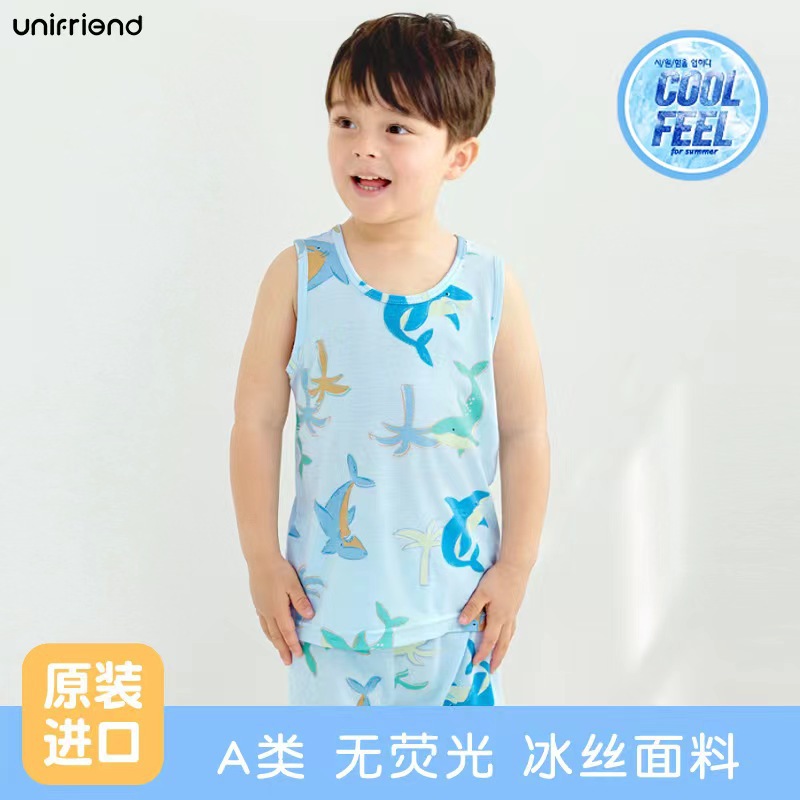 Unifriend24 새로운 어린이 잠옷 소년의 여름 얼음 실크 조끼 여성 보물 집 옷 조끼 세트스토어 가기