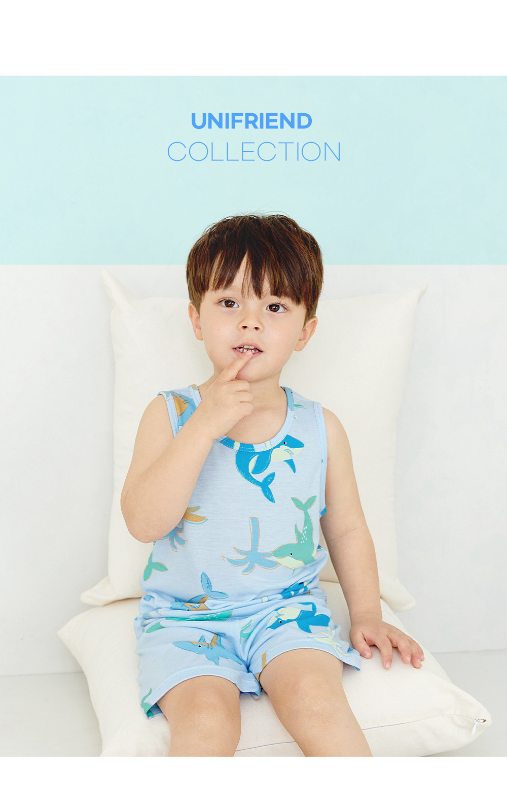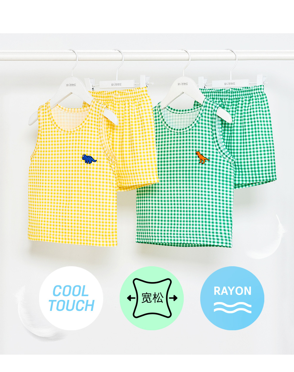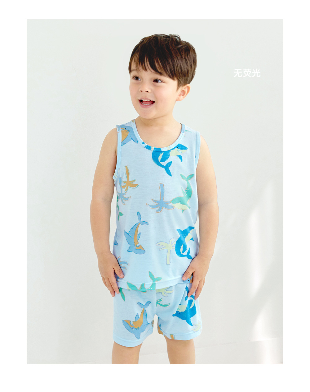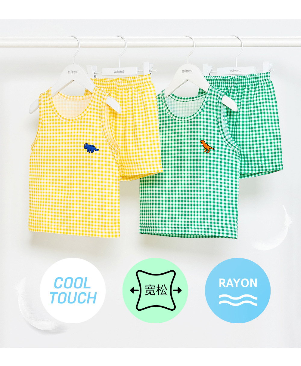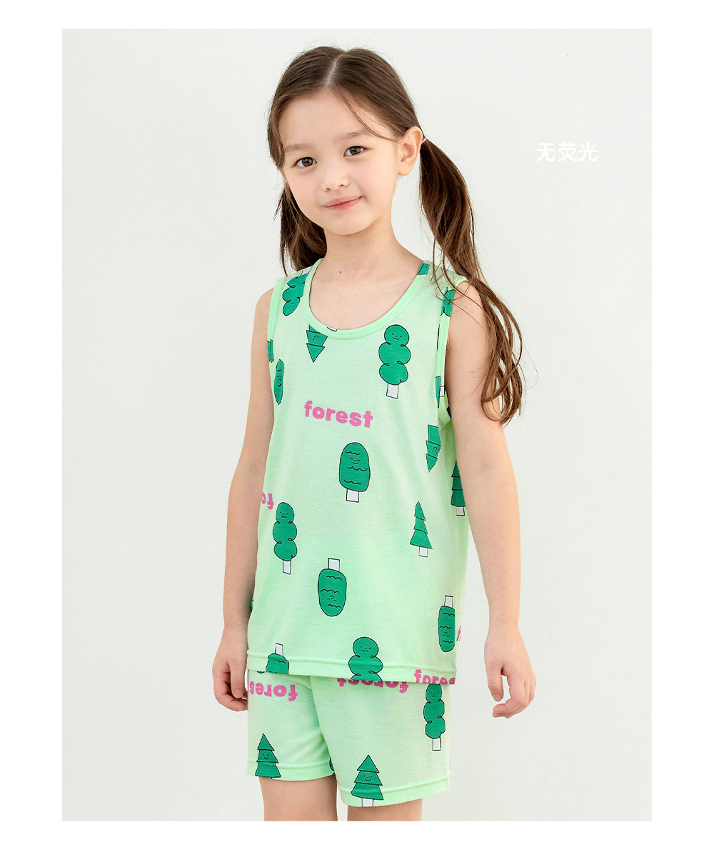 Unifriend24 새로운 어린이 잠옷 소년의 여름 얼음 실크 조끼 여성 보물 집 옷 조끼 세트
