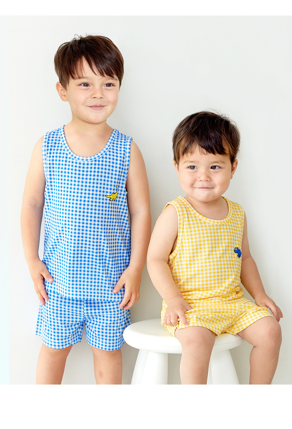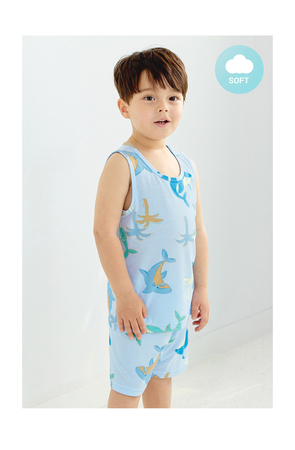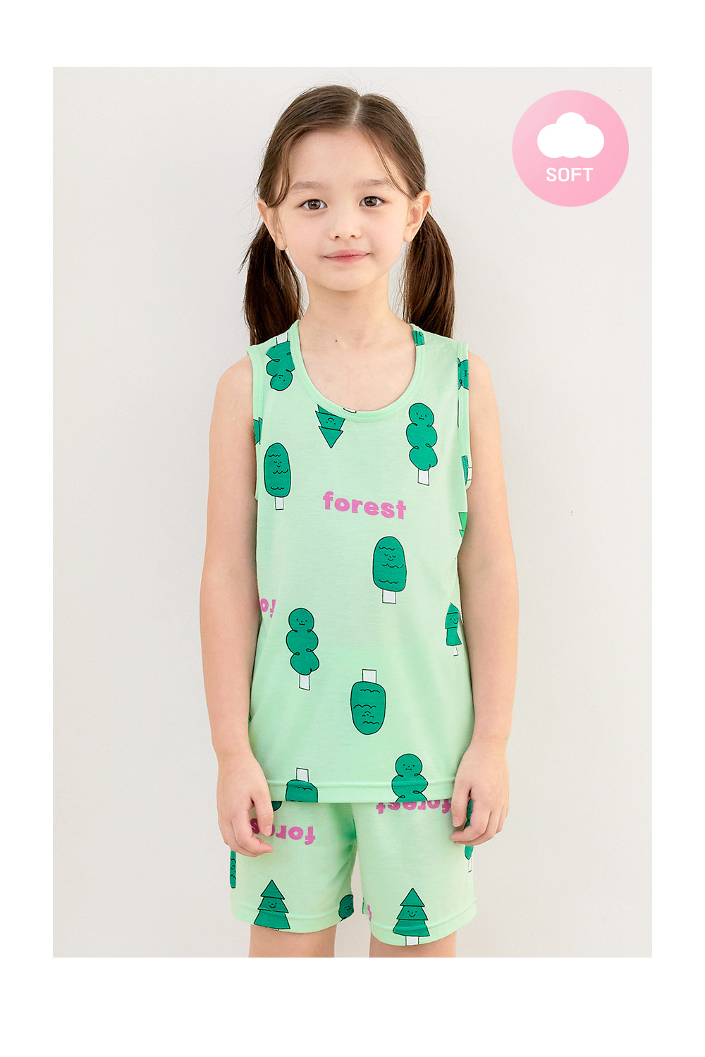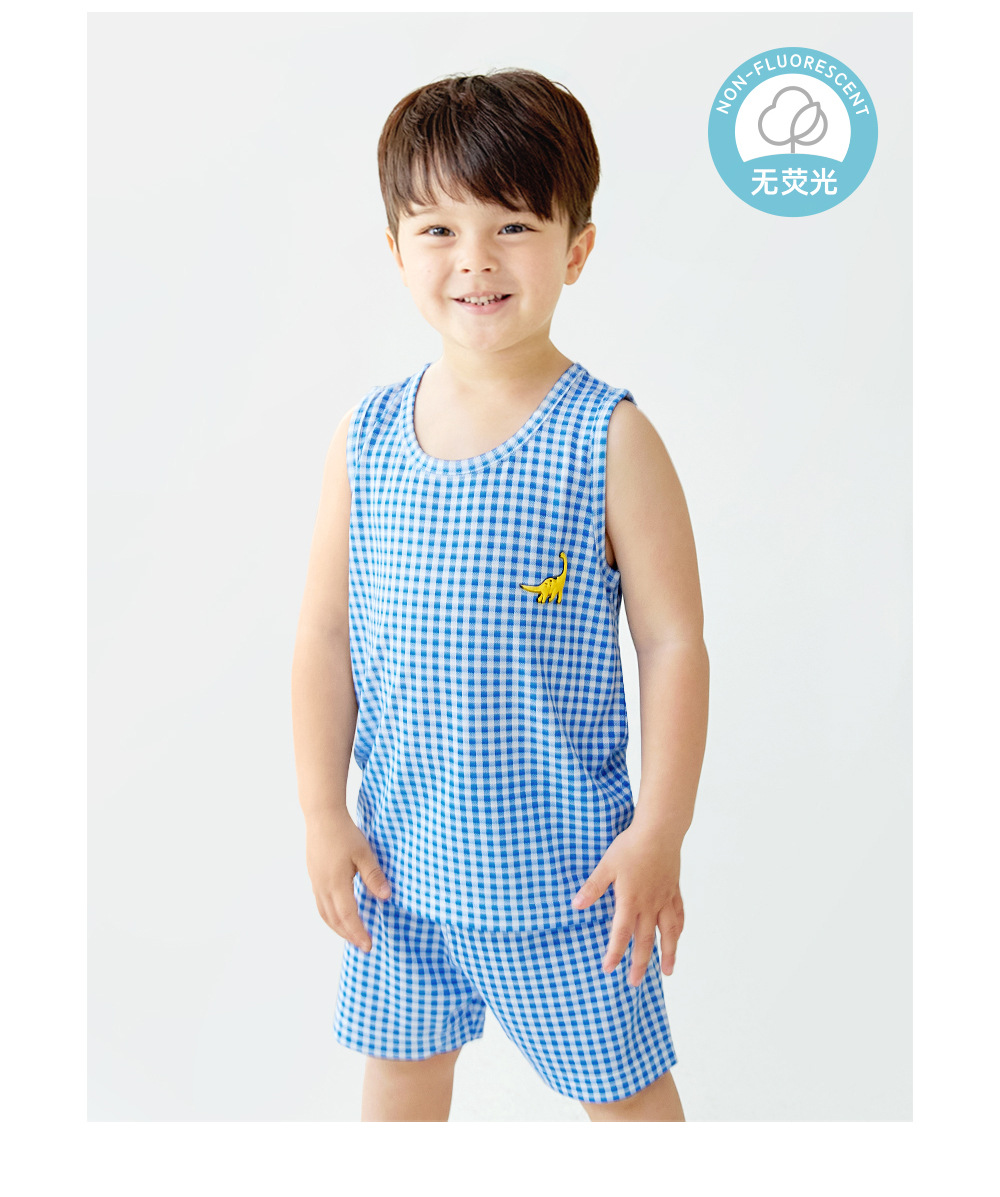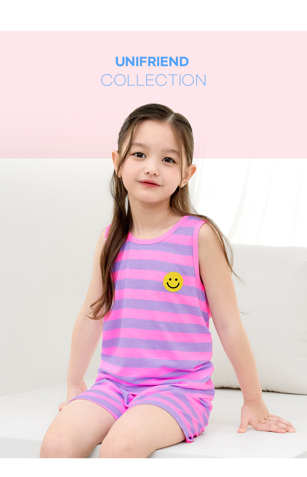 Unifriend24 새로운 어린이 잠옷 소년의 여름 얼음 실크 조끼 여성 보물 집 옷 조끼 세트
