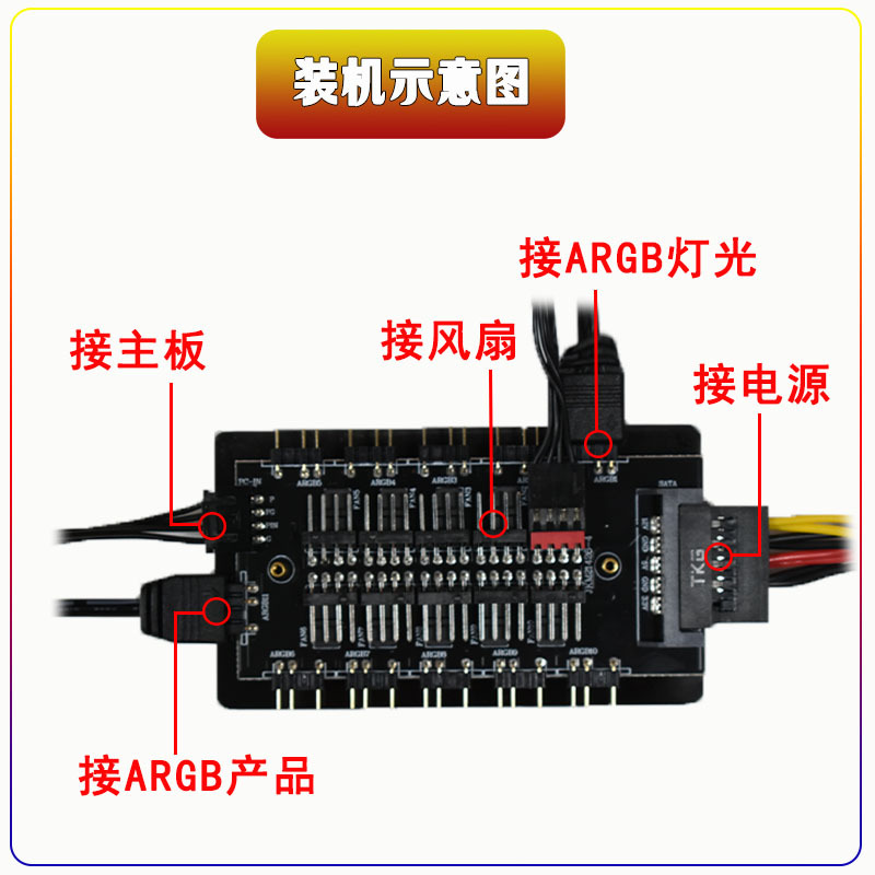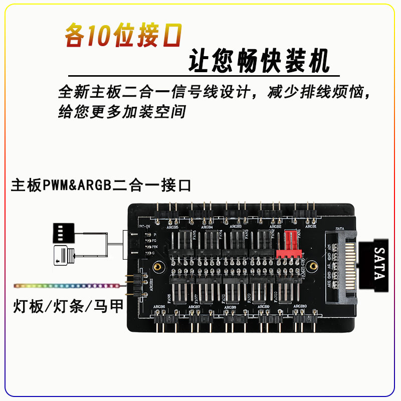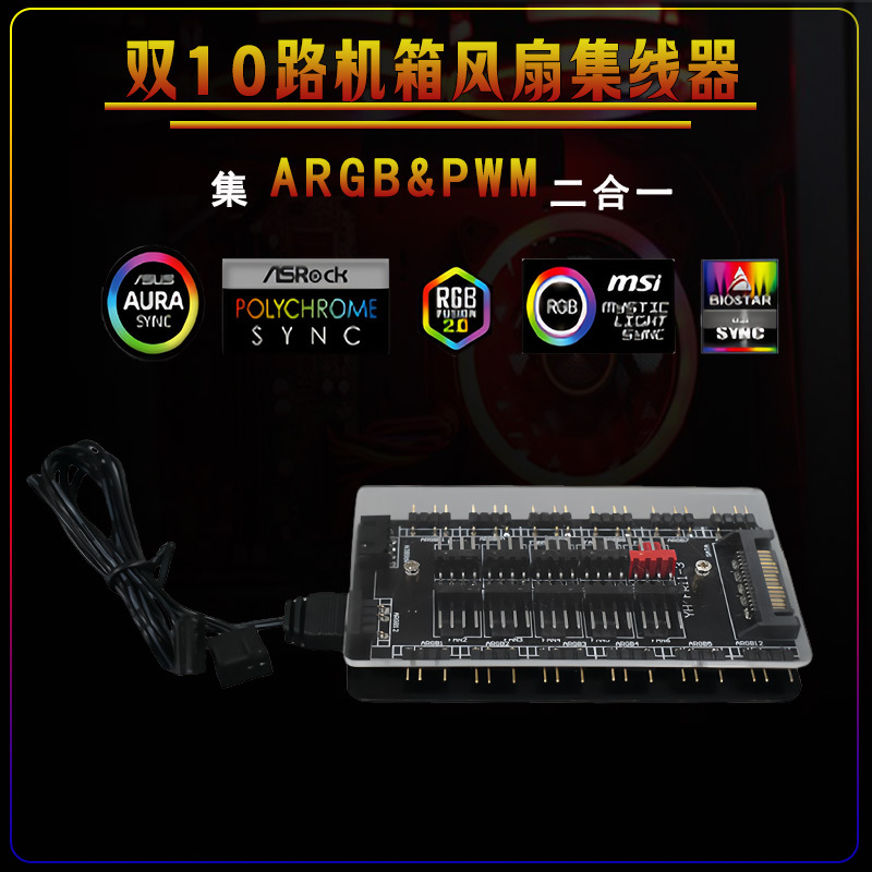 ARGB+PWM 2-in-1 허브 팬 허브 온도 제어 Shenguang 동기화 10 채널 섀시 팬 조명 제어