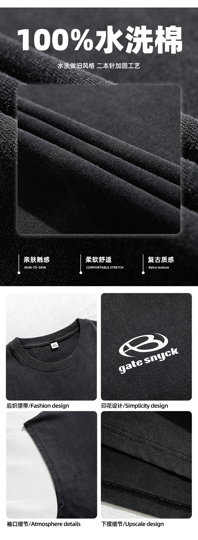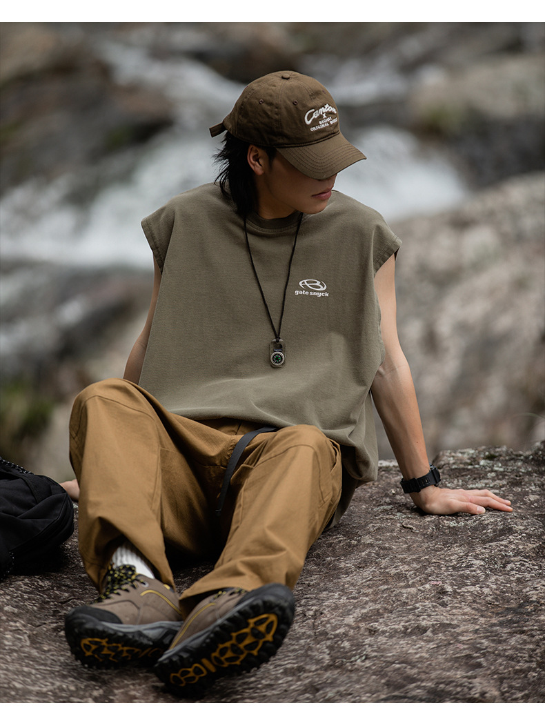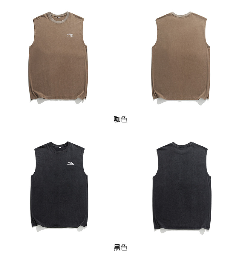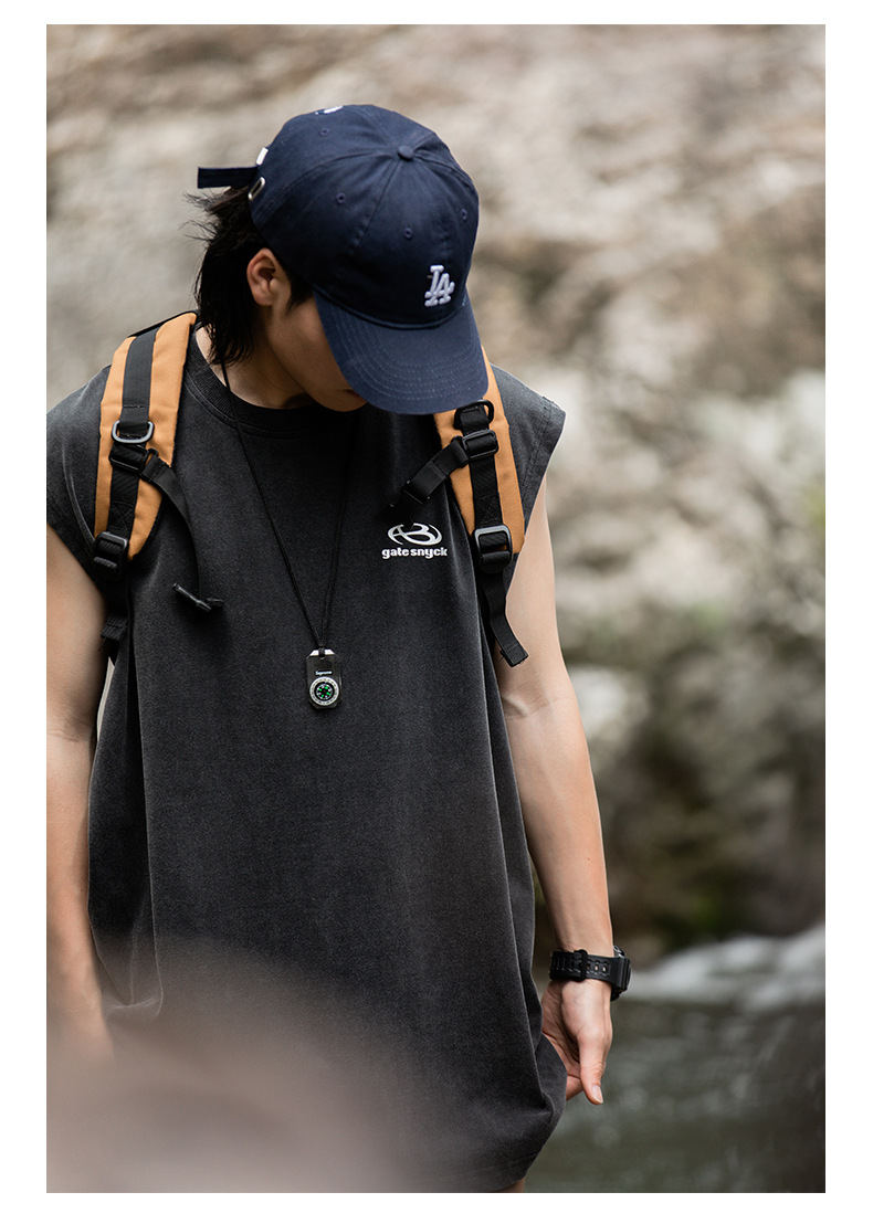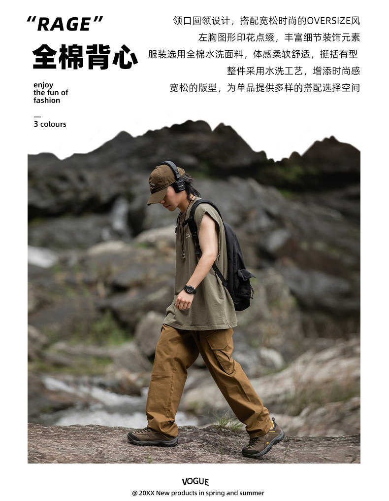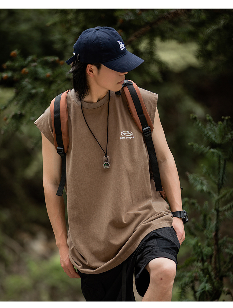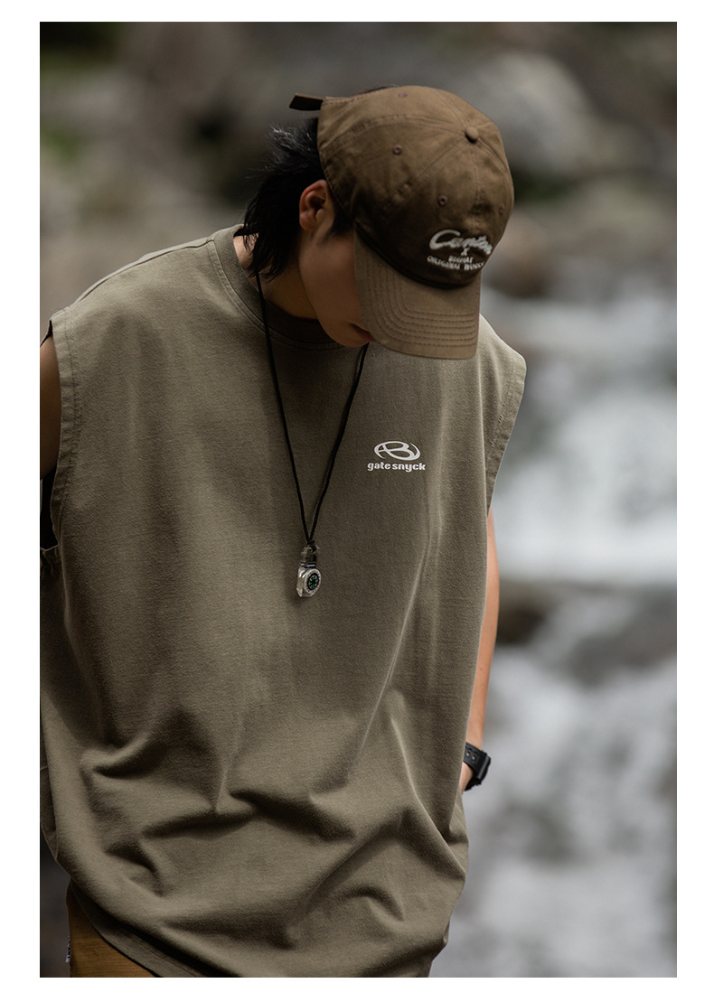 한로드 남성용 세탁 코튼 민소매 티셔츠 조끼 새로운 일본 레트로 트렌디 브랜드 인쇄 느슨한 웨이스트 코트 Q스토어 가기