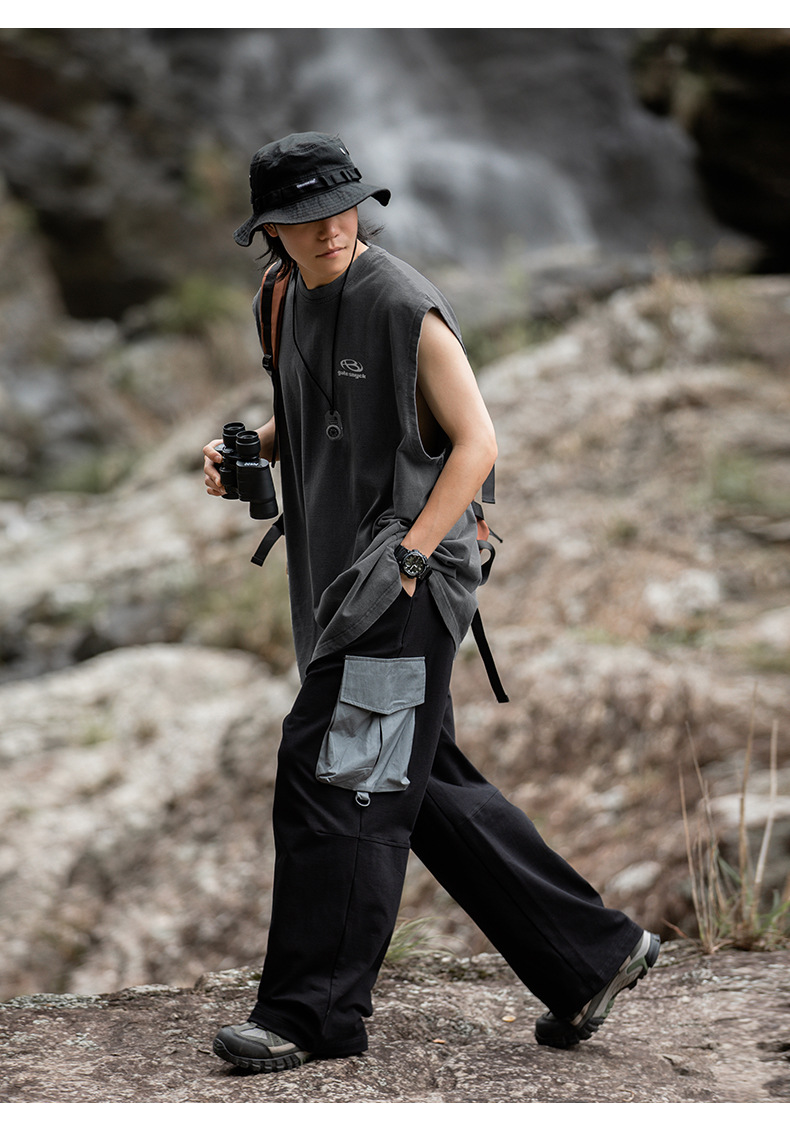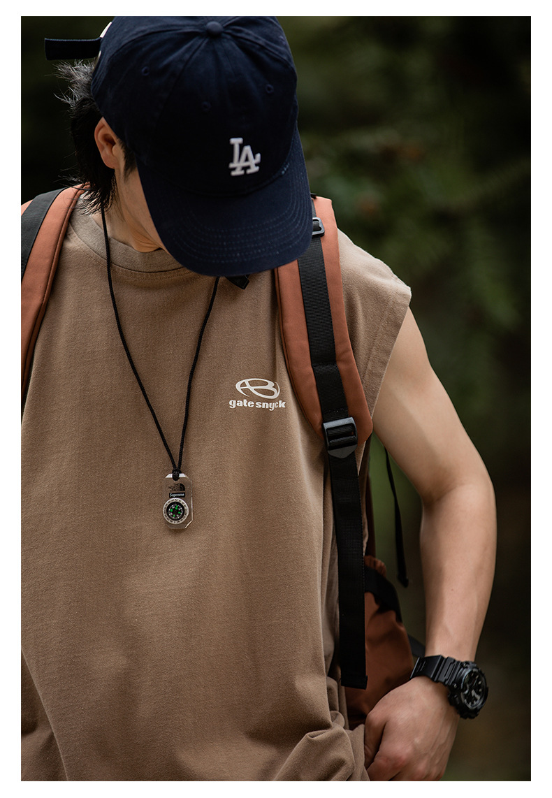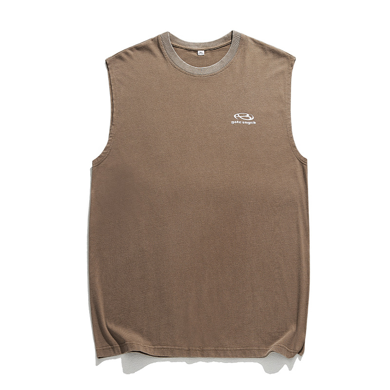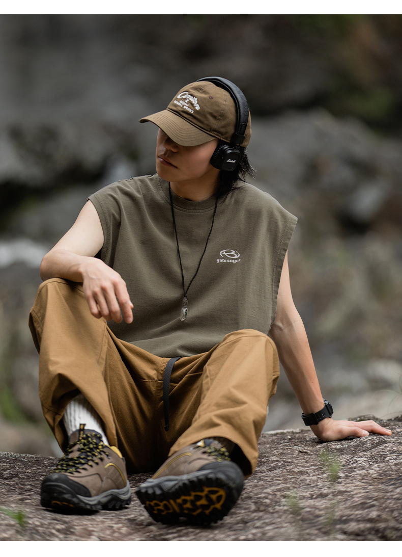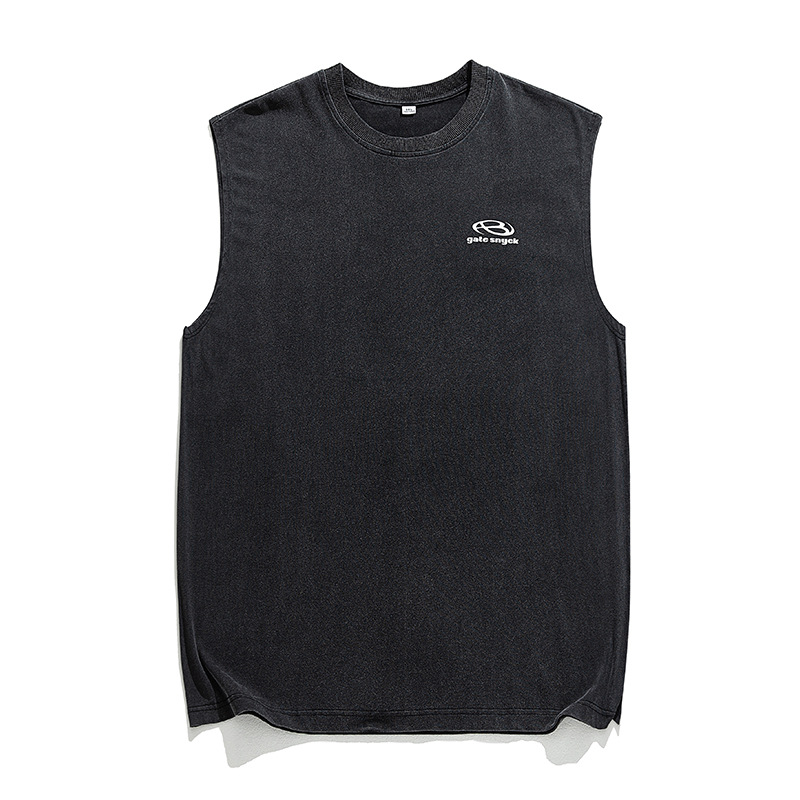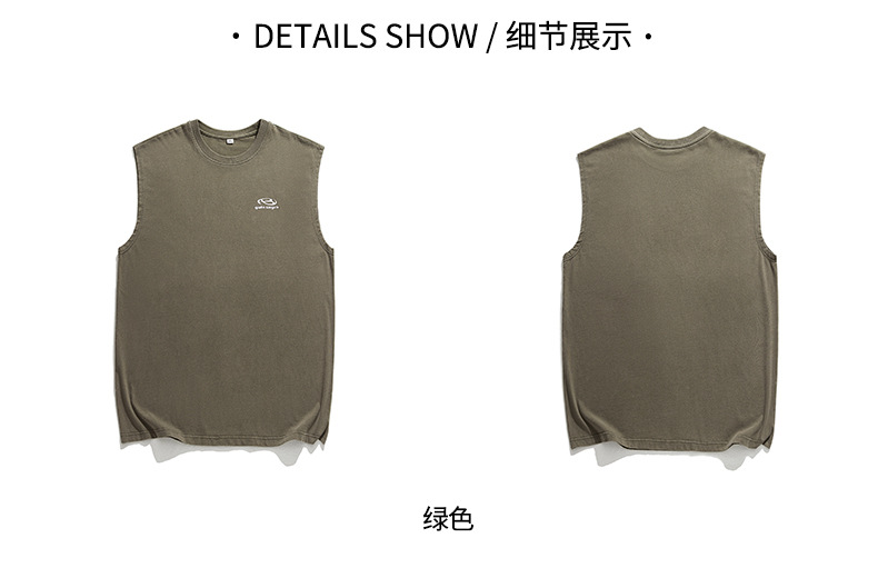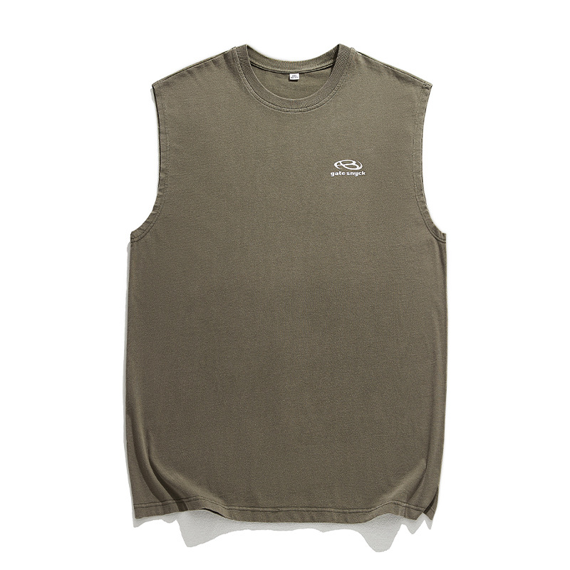 한로드 남성용 세탁 코튼 민소매 티셔츠 조끼 새로운 일본 레트로 트렌디 브랜드 인쇄 느슨한 웨이스트 코트 Q스토어 가기