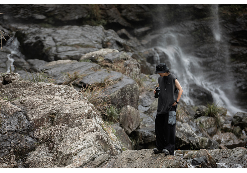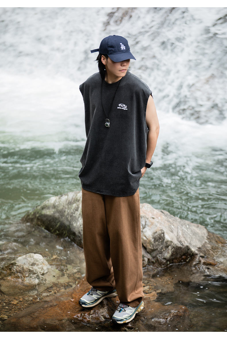 한로드 남성용 세탁 코튼 민소매 티셔츠 조끼 새로운 일본 레트로 트렌디 브랜드 인쇄 느슨한 웨이스트 코트 Q