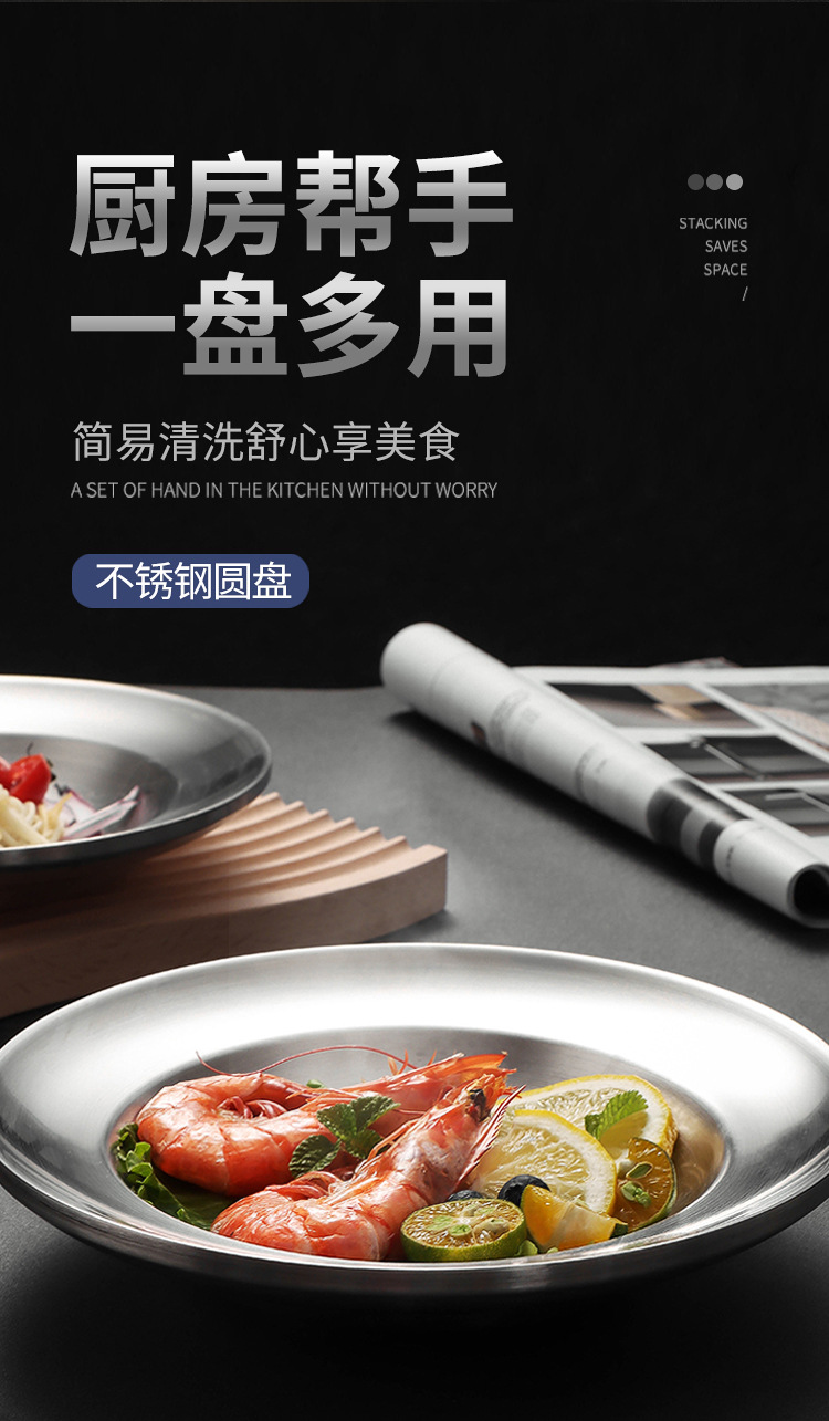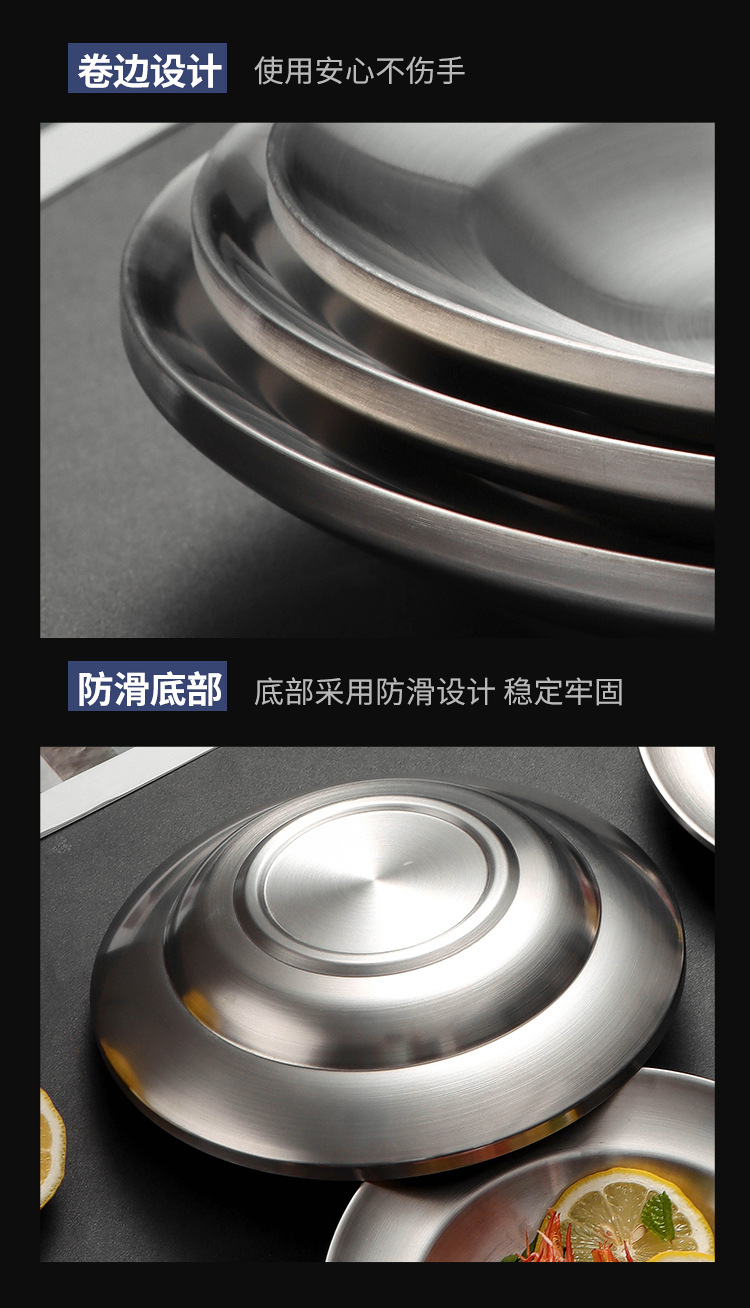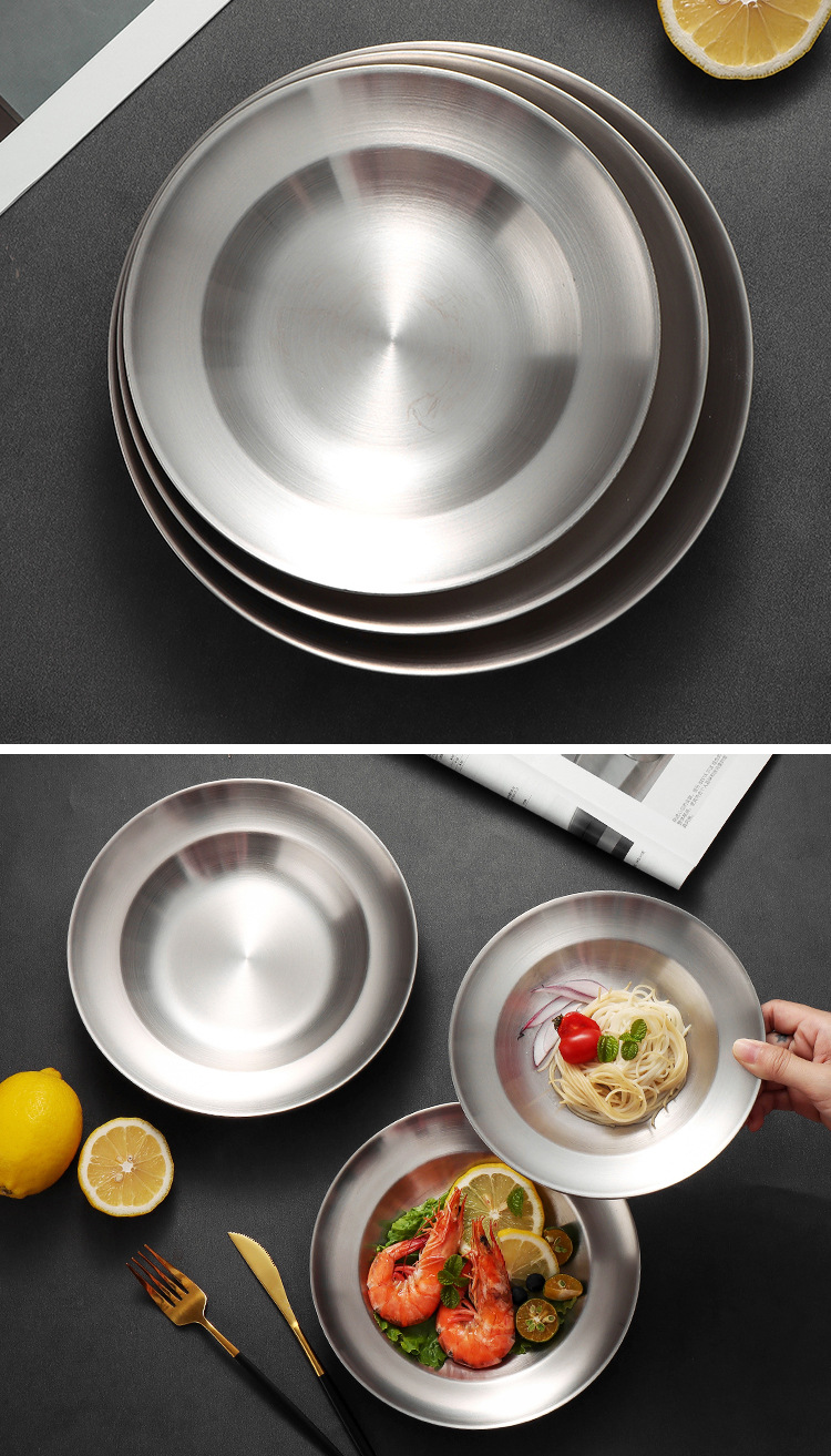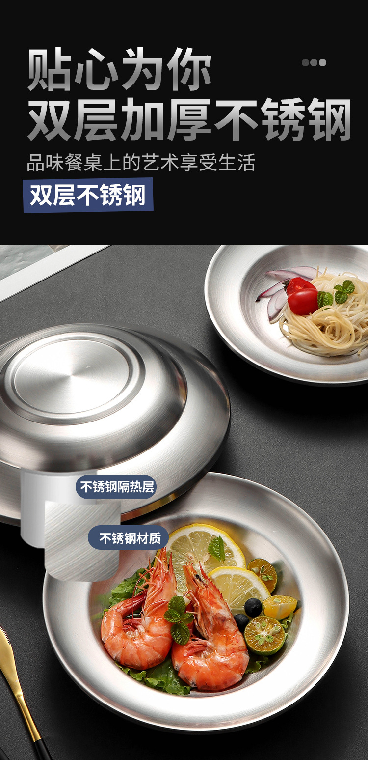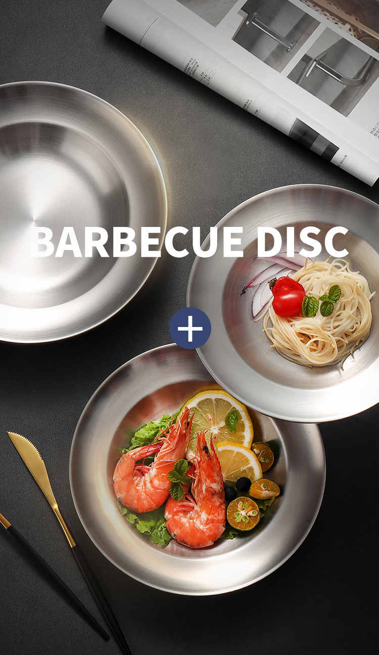 유럽식 서양식 레스토랑 식기, 뷔페 바베큐 접시, 원형 과자 디저트 접시, 스테인레스 스틸 이중층 단열 접시 도매스토어 가기