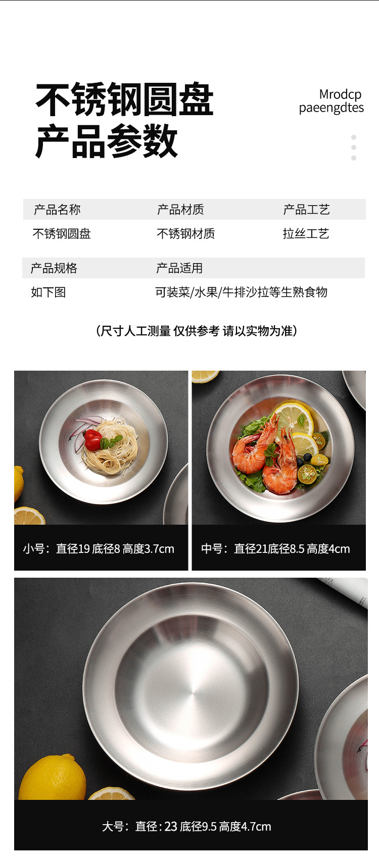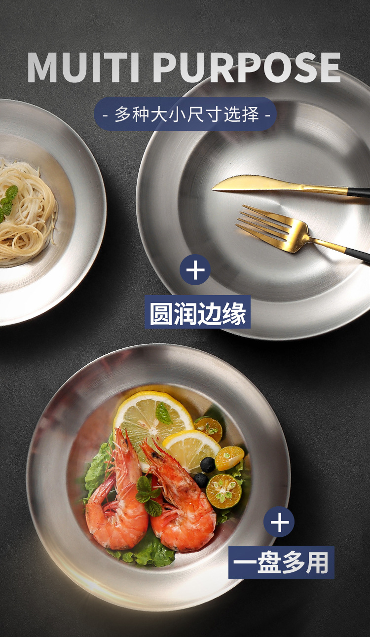 유럽식 서양식 레스토랑 식기, 뷔페 바베큐 접시, 원형 과자 디저트 접시, 스테인레스 스틸 이중층 단열 접시 도매