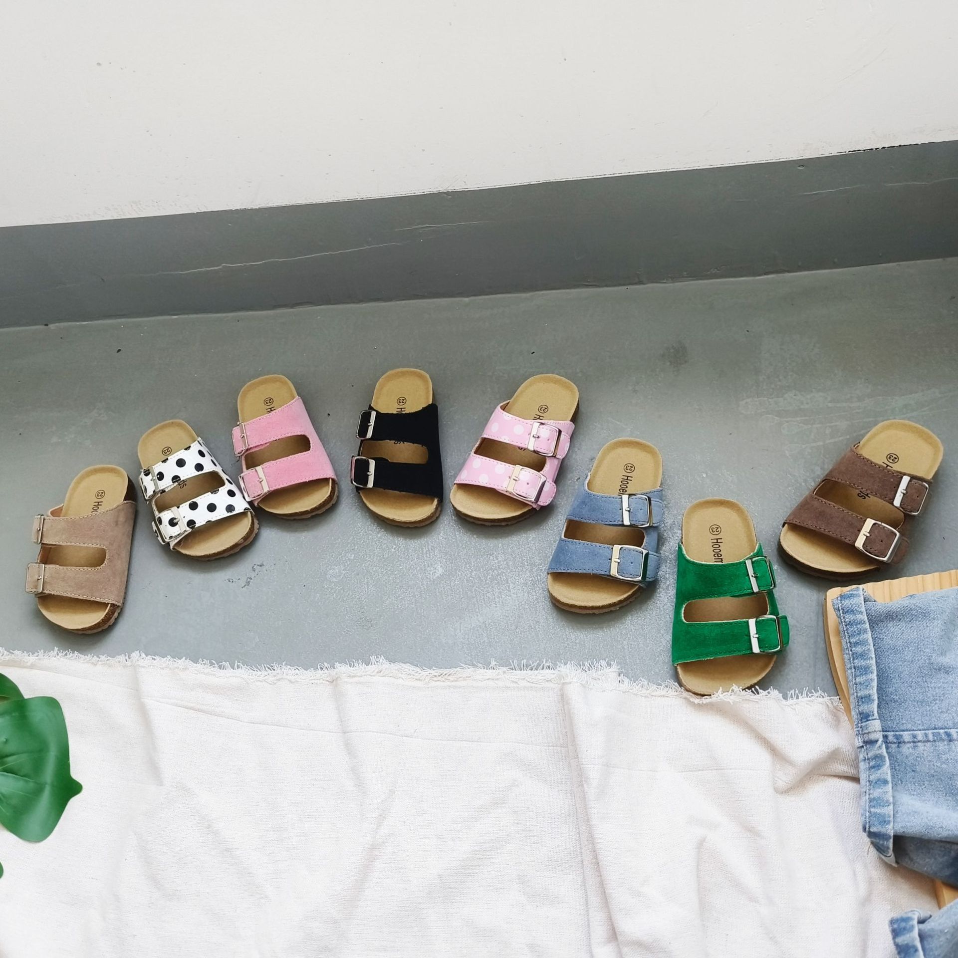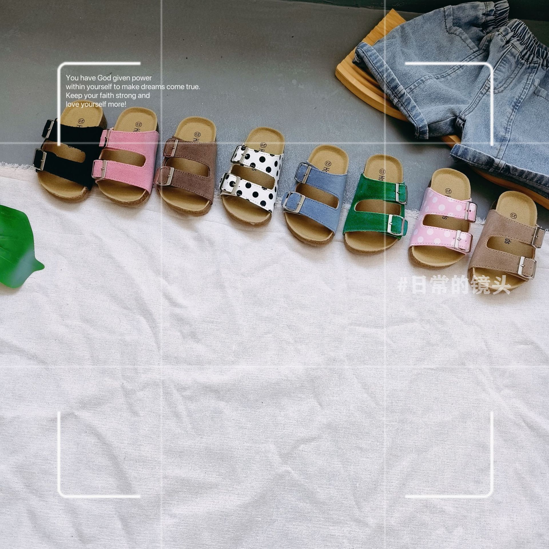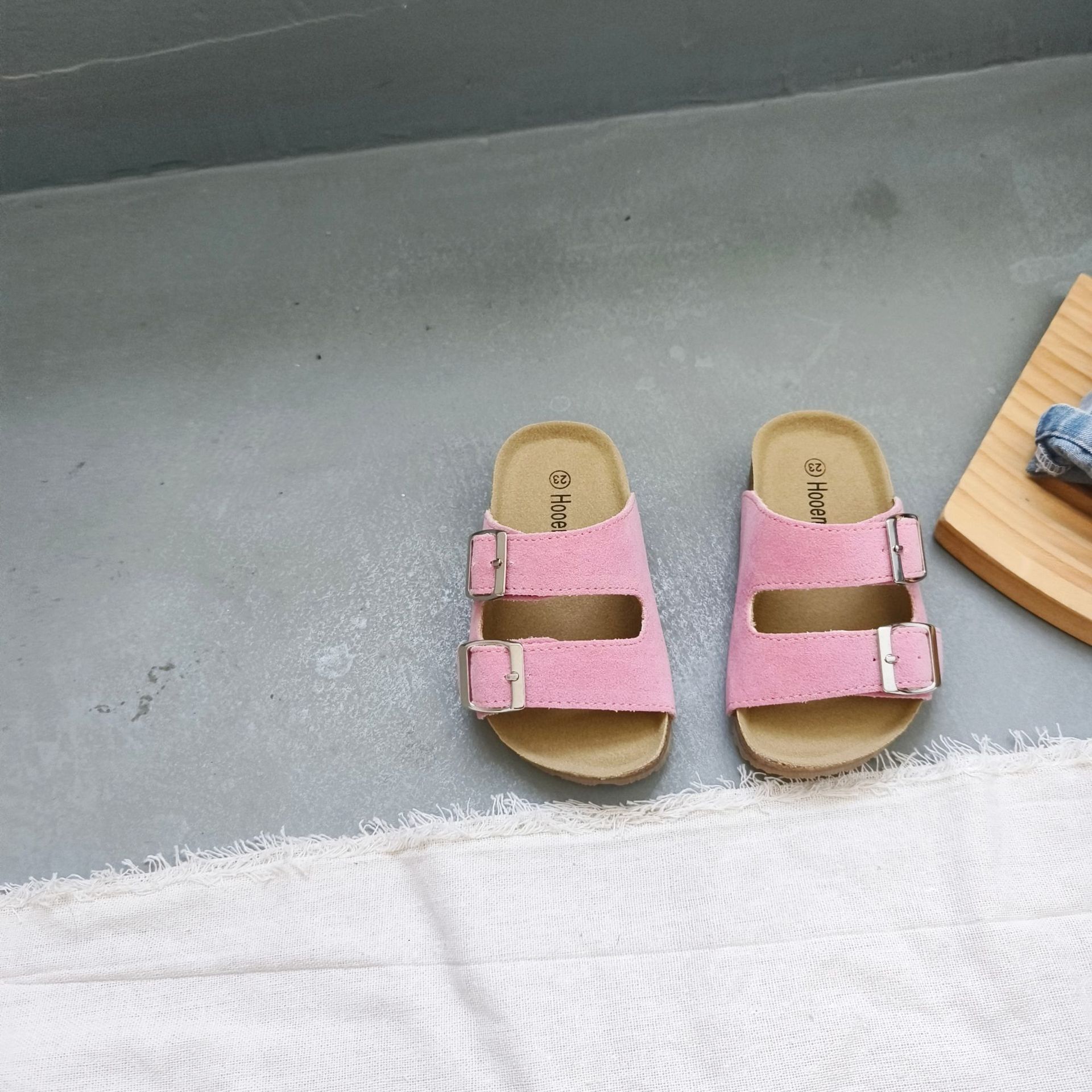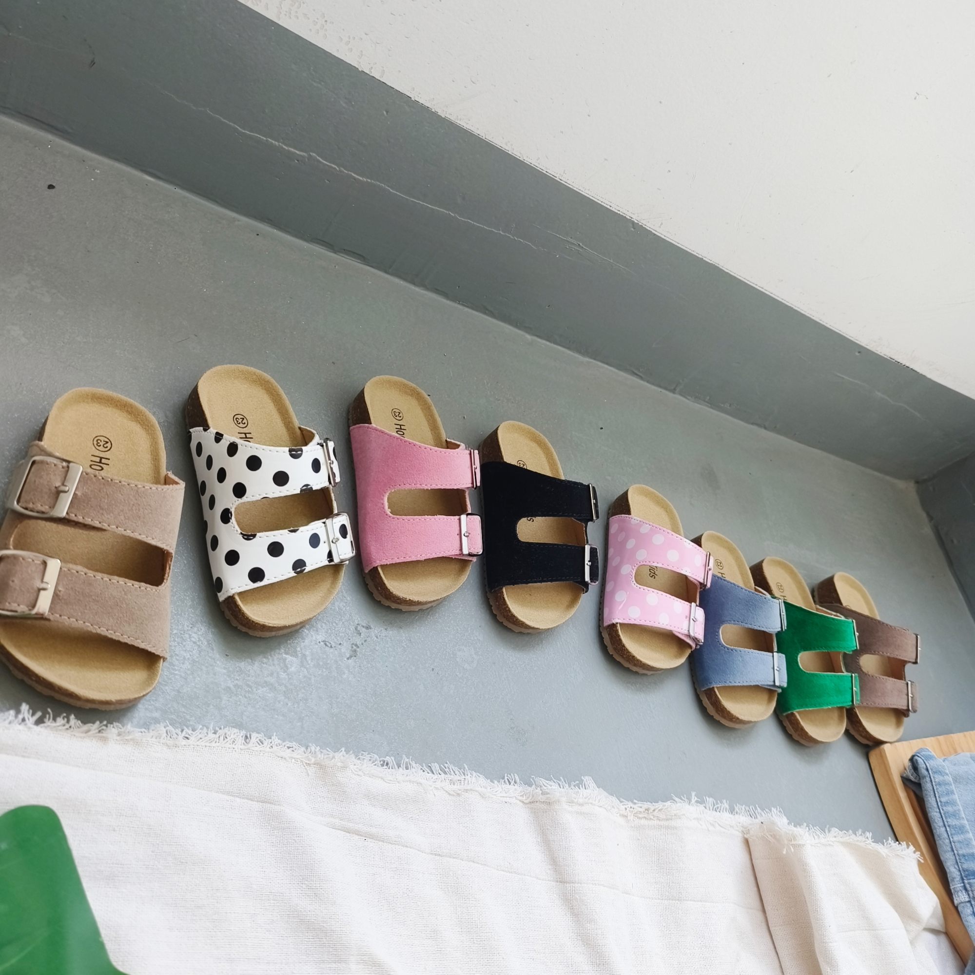 2024년 여름 신상품 여아용 투버튼 나무껍질 슬리퍼, 밝은 색상의 슬리퍼, 비치 슈즈, 부모-자식 샌들스토어 가기