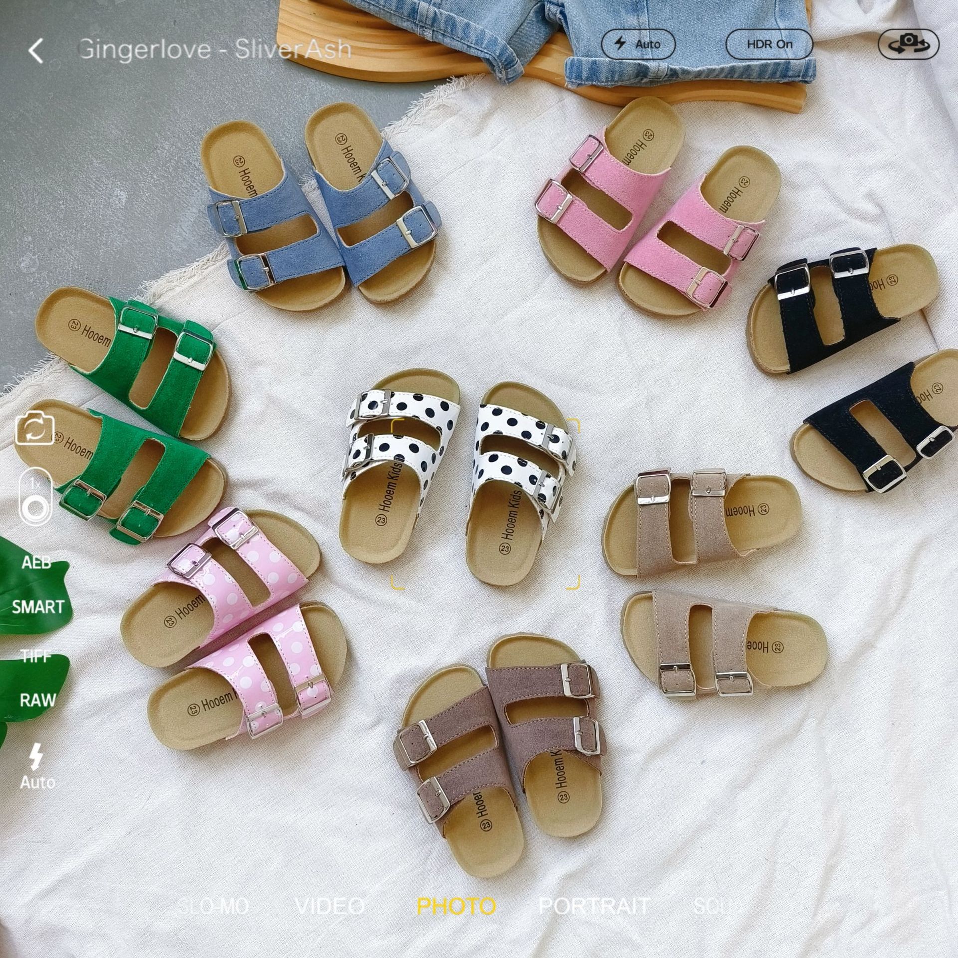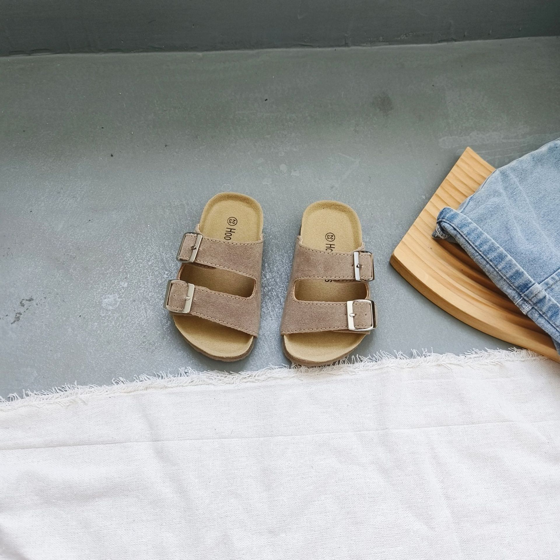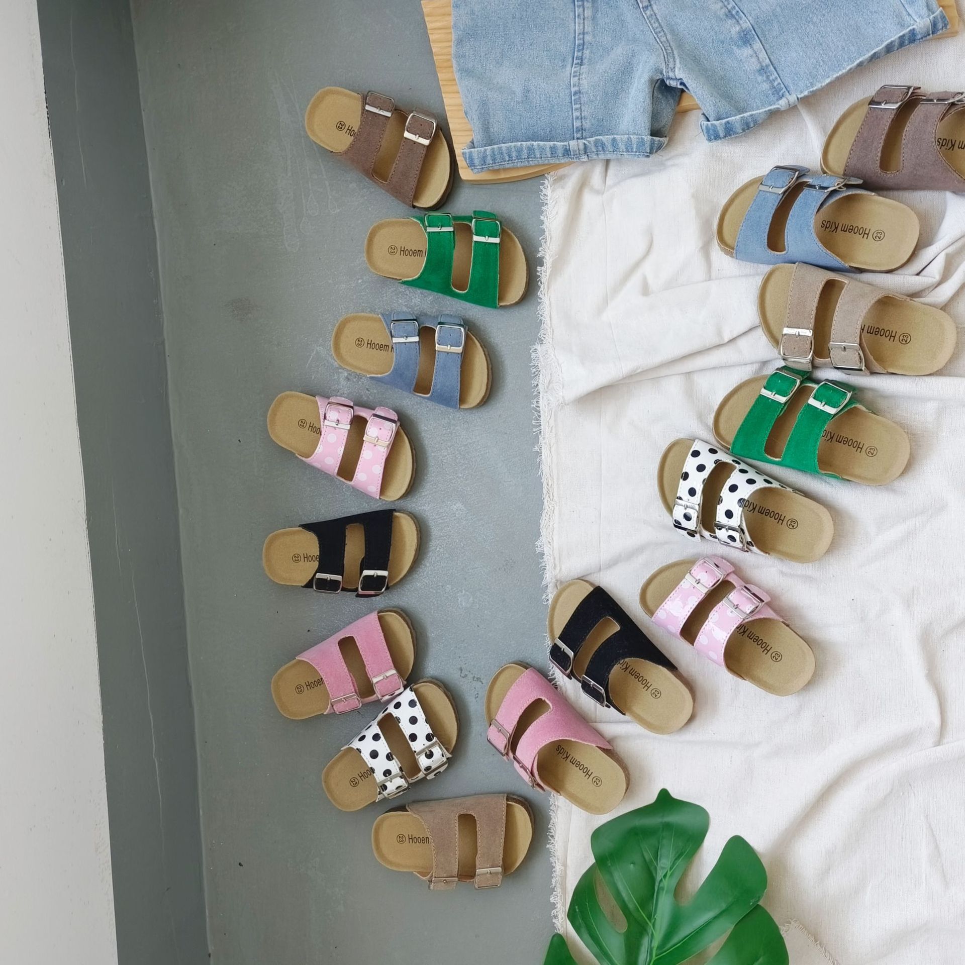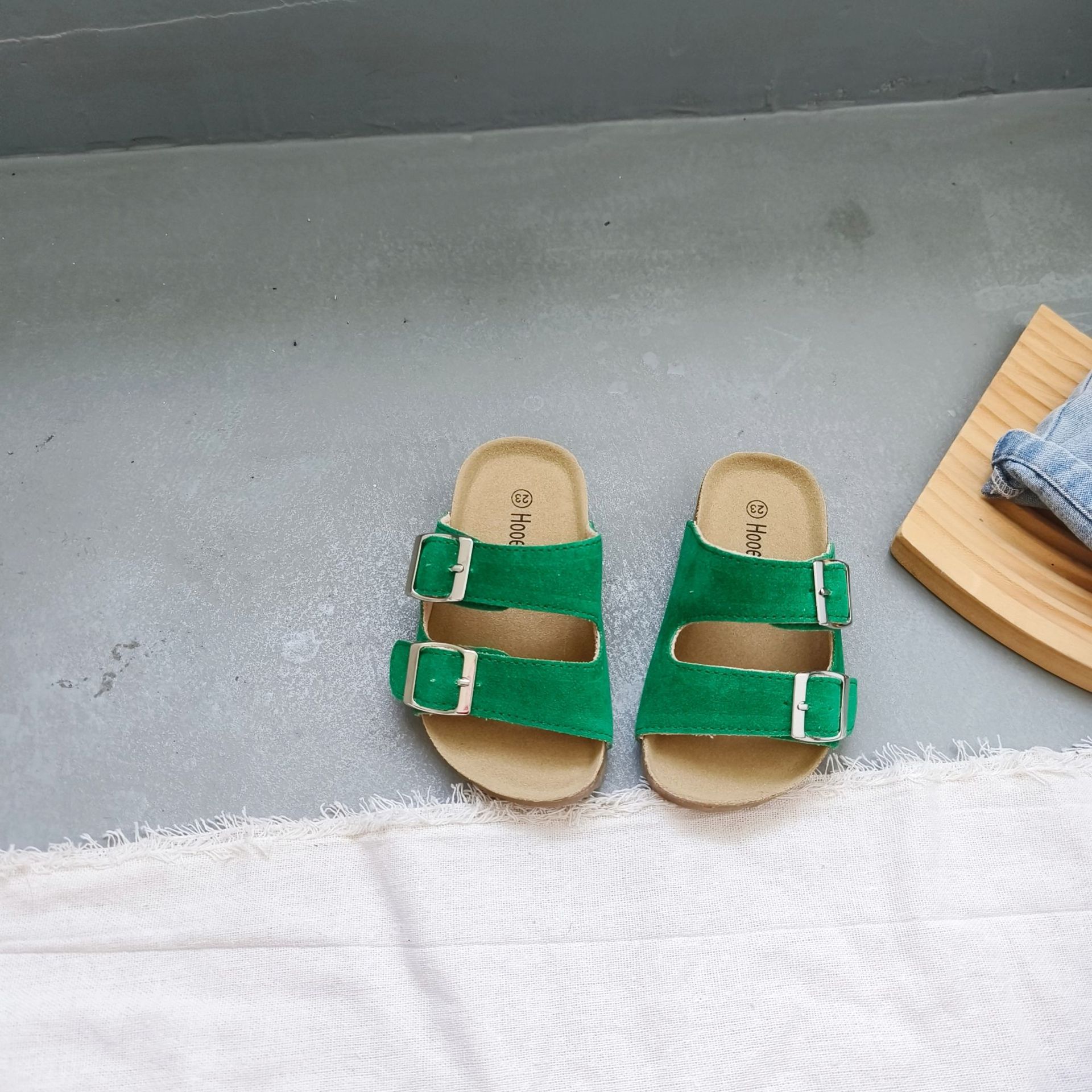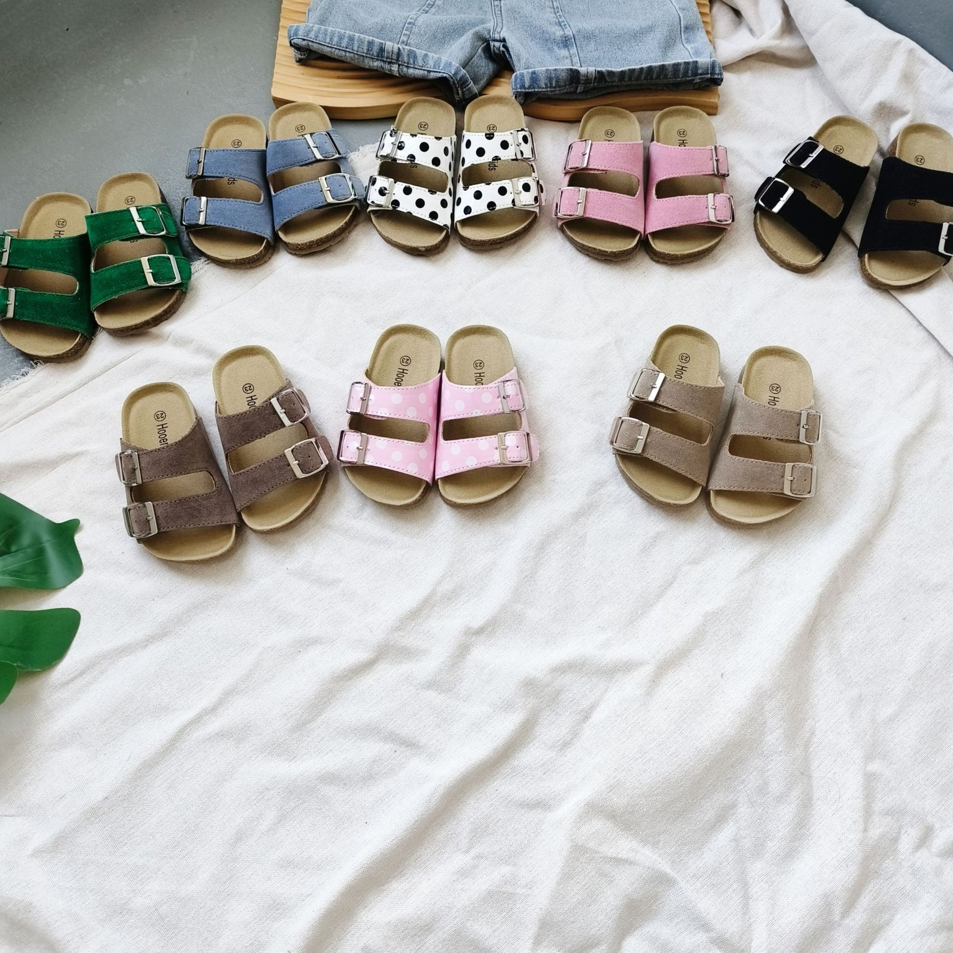 2024년 여름 신상품 여아용 투버튼 나무껍질 슬리퍼, 밝은 색상의 슬리퍼, 비치 슈즈, 부모-자식 샌들스토어 가기