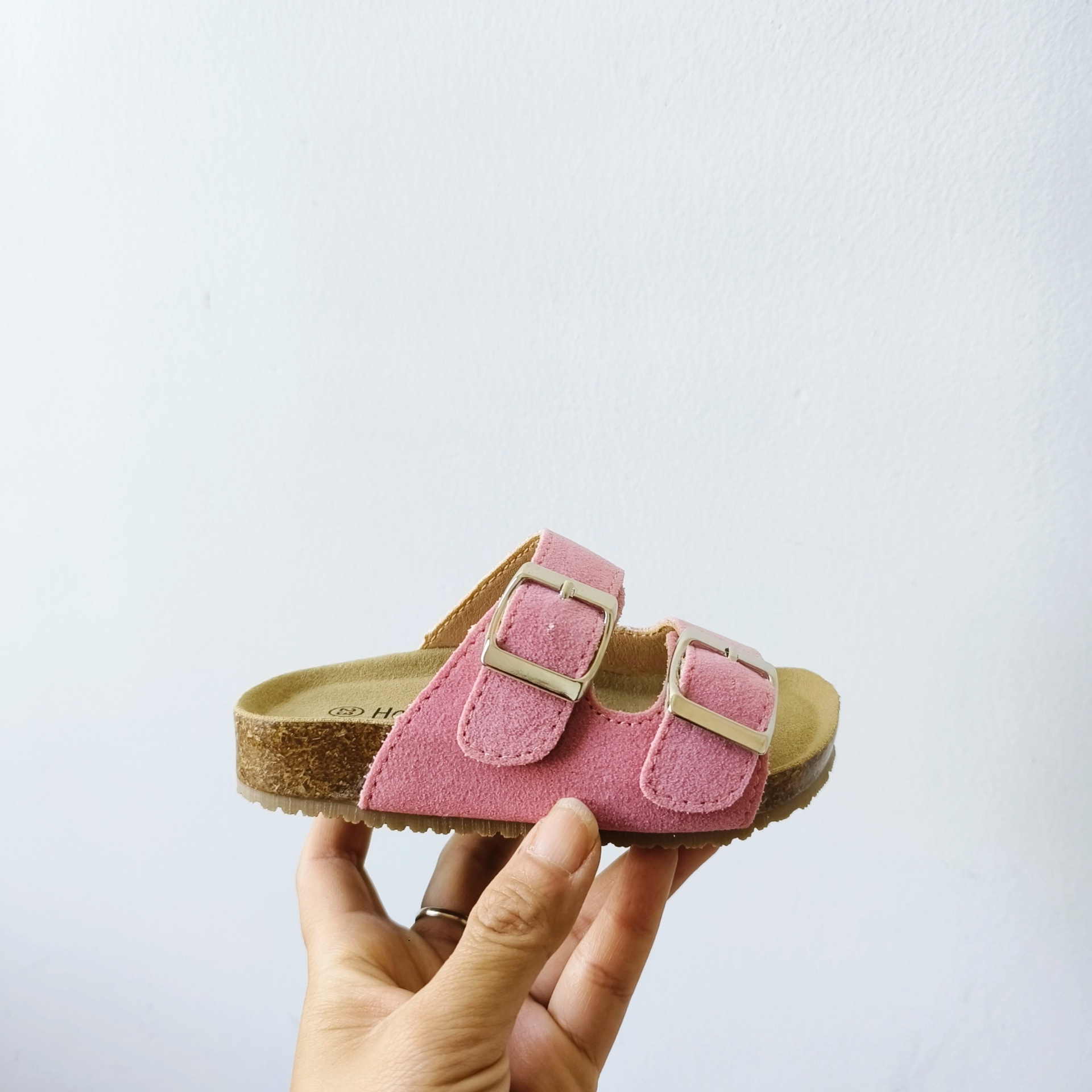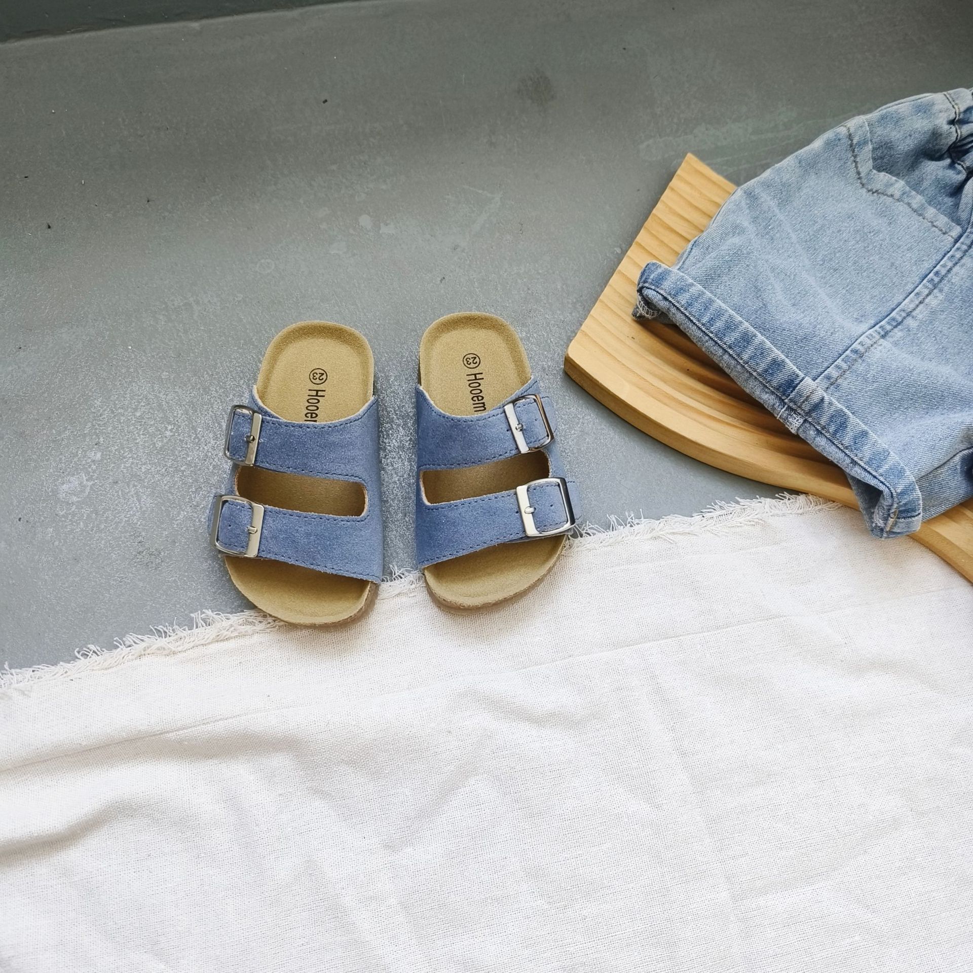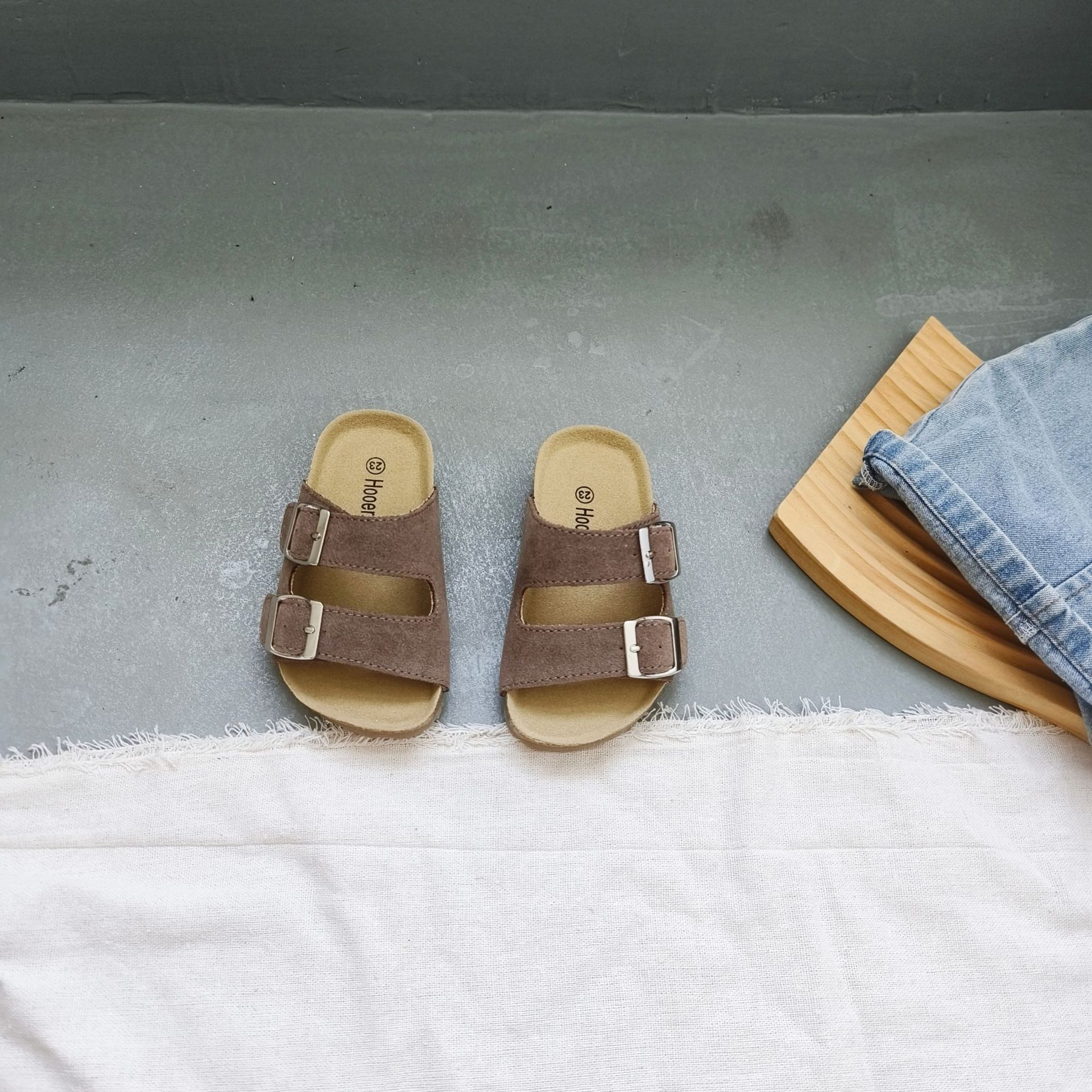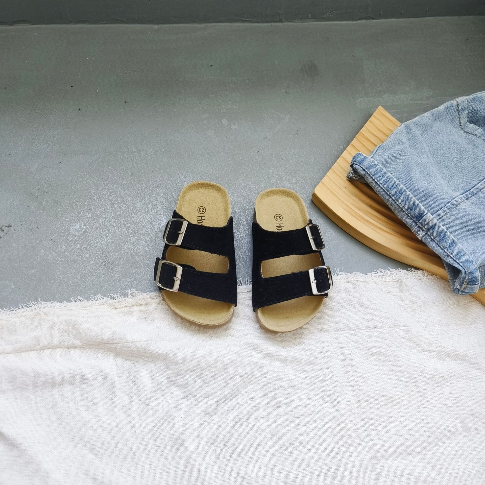 2024년 여름 신상품 여아용 투버튼 나무껍질 슬리퍼, 밝은 색상의 슬리퍼, 비치 슈즈, 부모-자식 샌들스토어 가기