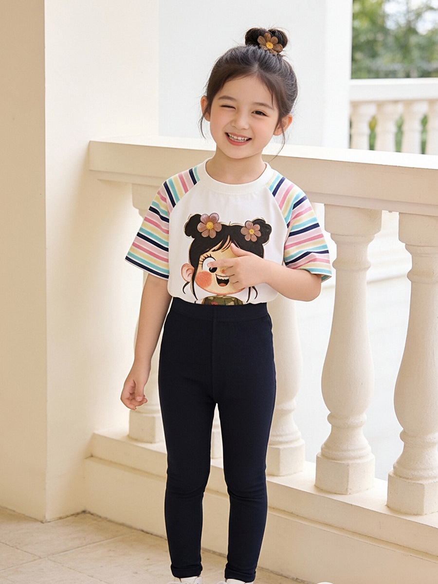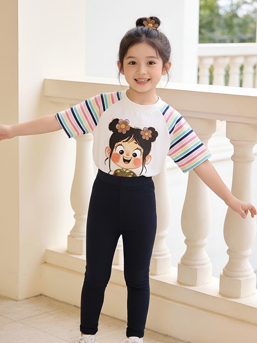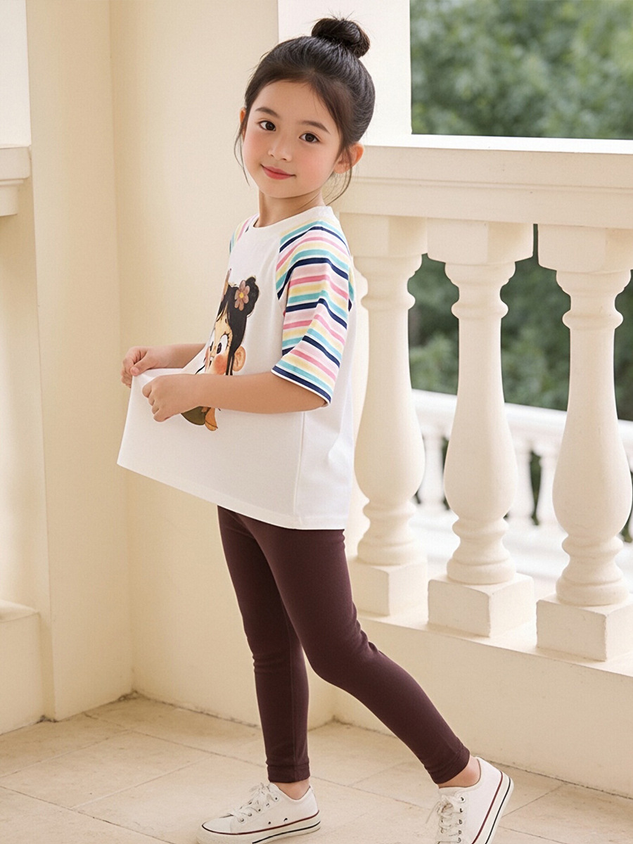 MDD 여아 한국식 신축성 있는 슬림 팬츠 2024 봄, 가을 새로운 스타일 중소형 아동용 코듀로이 레깅스