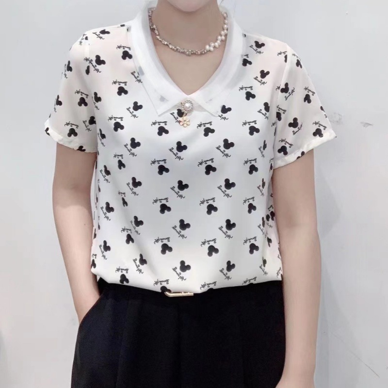 셔츠 여성의 여름 2024 새로운 디자인 센스 틈새 인쇄 셔츠 느슨한 올 매치 작은 셔츠 인형 칼라 탑