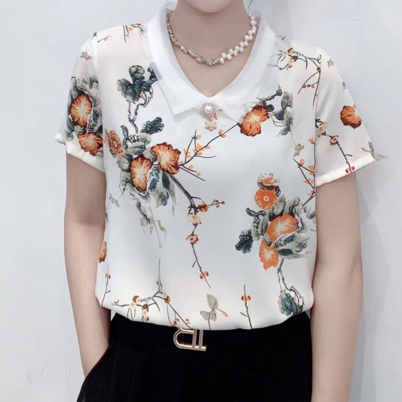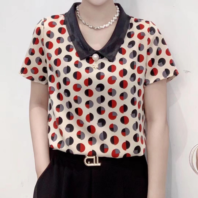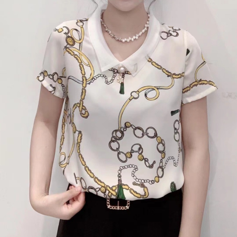 셔츠 여성의 여름 2024 새로운 디자인 센스 틈새 인쇄 셔츠 느슨한 올 매치 작은 셔츠 인형 칼라 탑스토어 가기