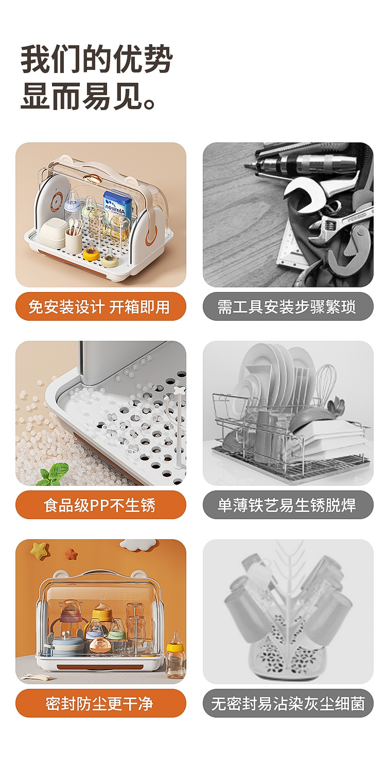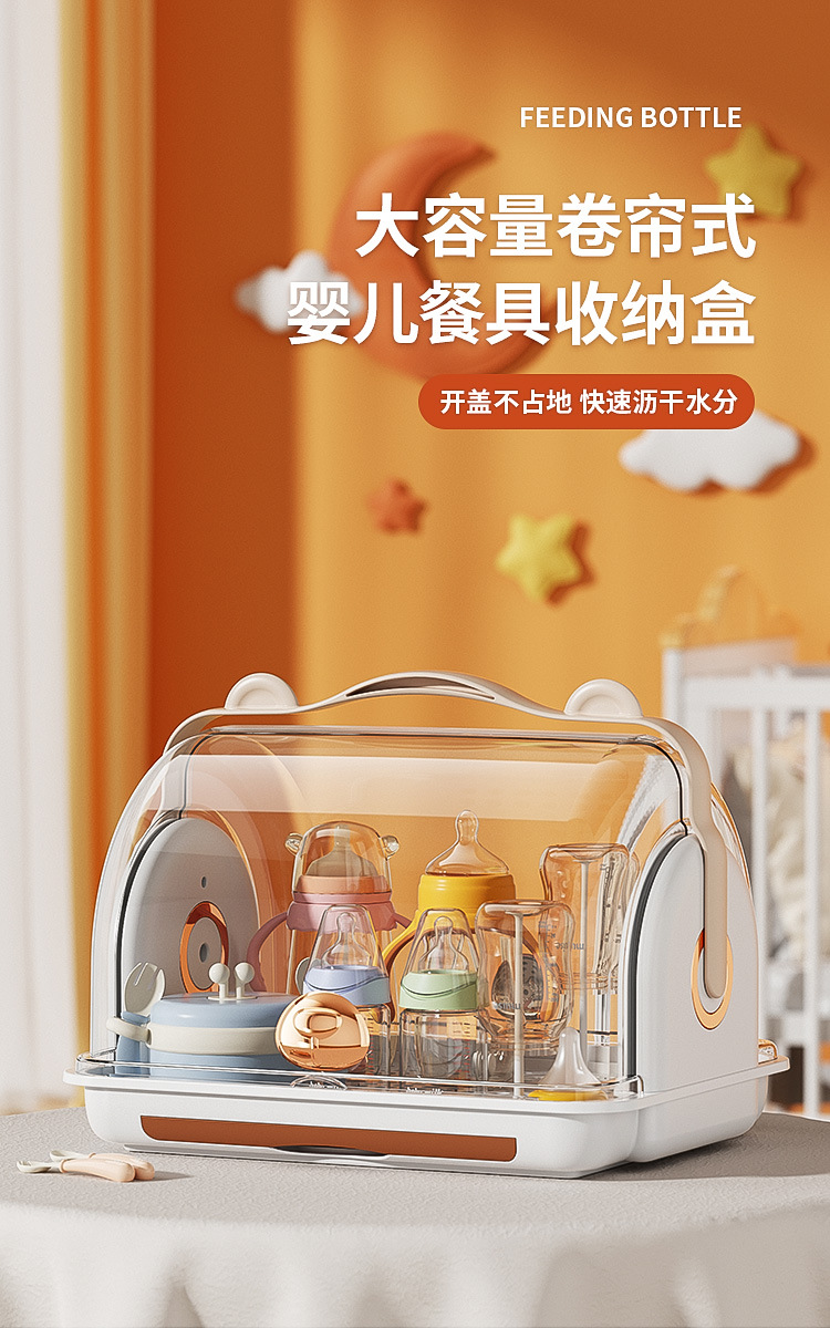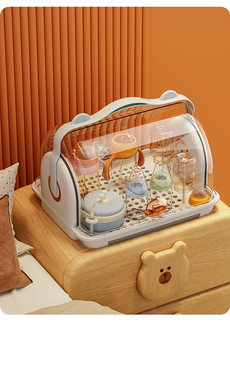 뚜껑이있는 아기 병 보관 상자 방진 랙 데스크탑 보관 아기 식기 식기 도구 캐비닛