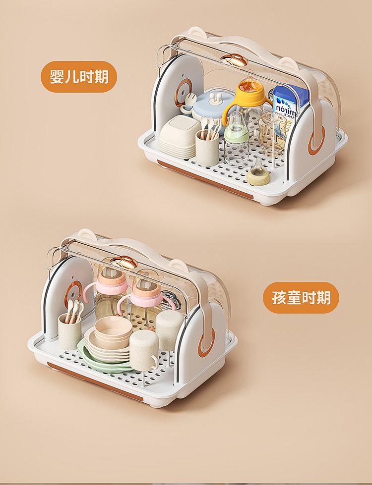 뚜껑이있는 아기 병 보관 상자 방진 랙 데스크탑 보관 아기 식기 식기 도구 캐비닛스토어 가기