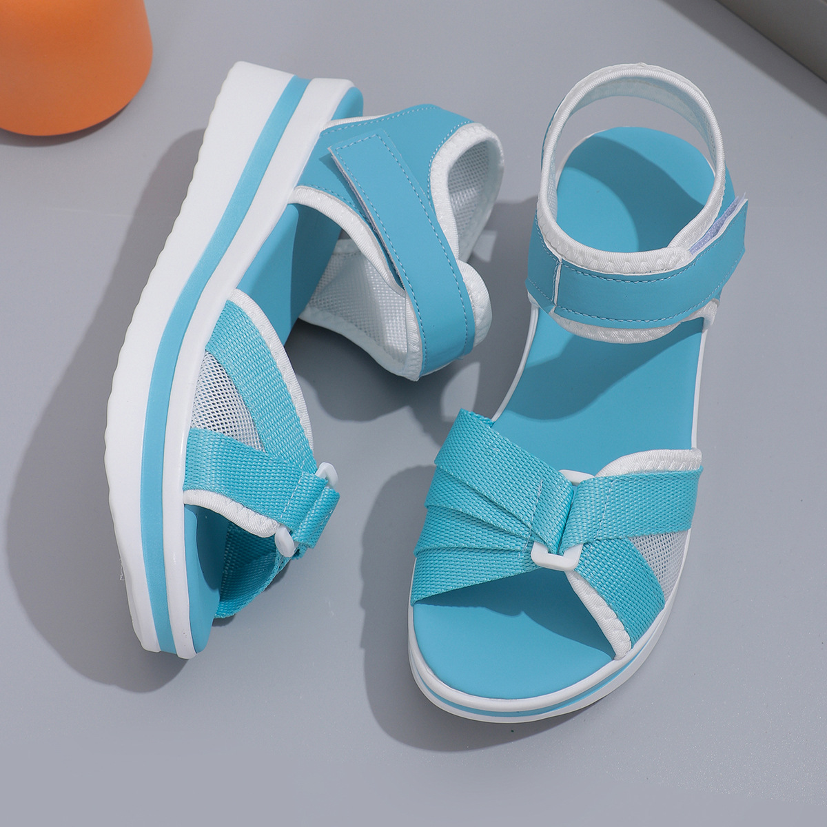 대외 무역 유럽과 미국 43 플러스 사이즈 2024 새로운 두꺼운 밑창 샌들 여성용 국경 간 플랫 벨크로 여성용 비치 샌들