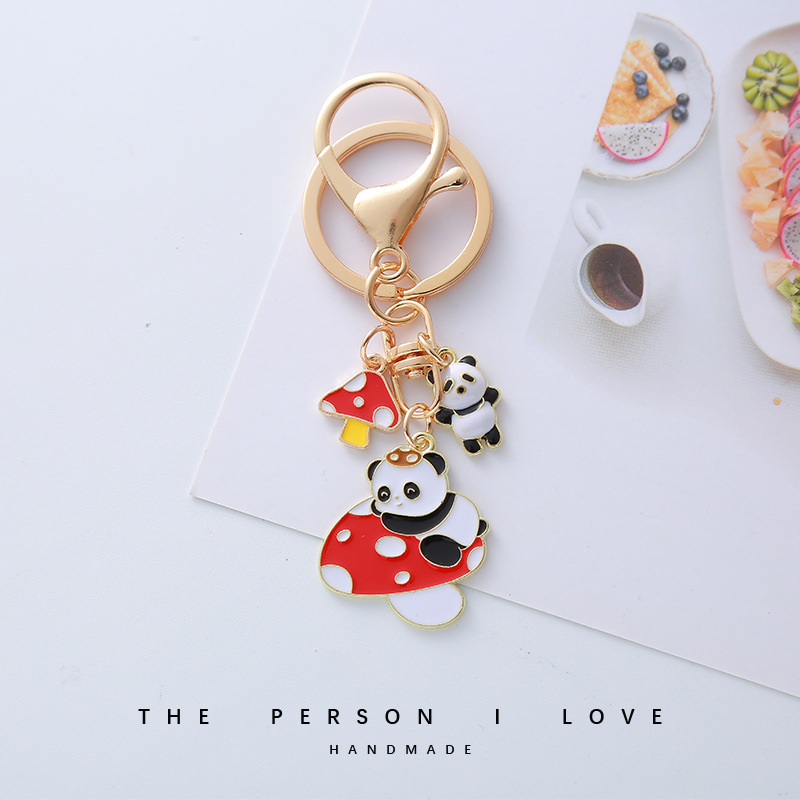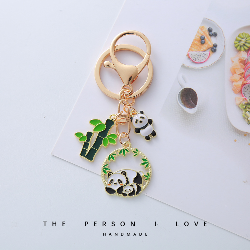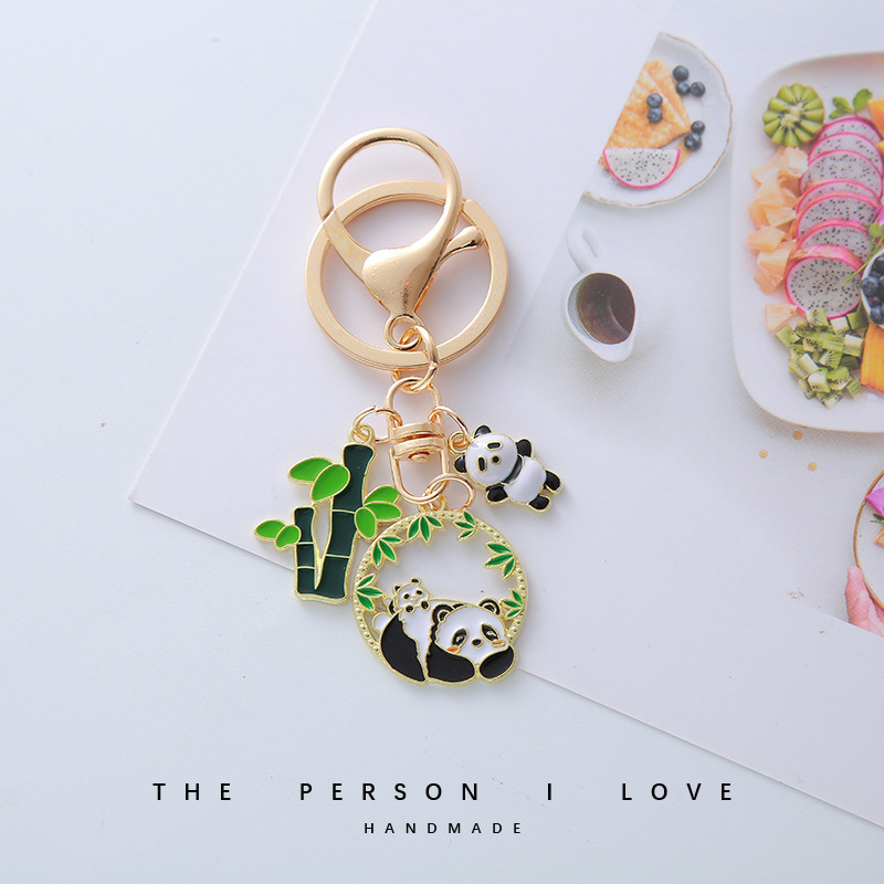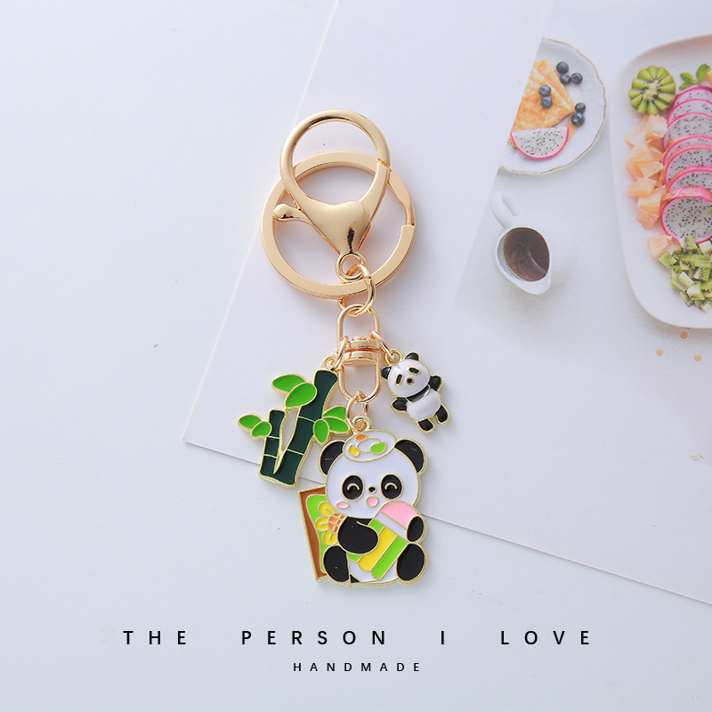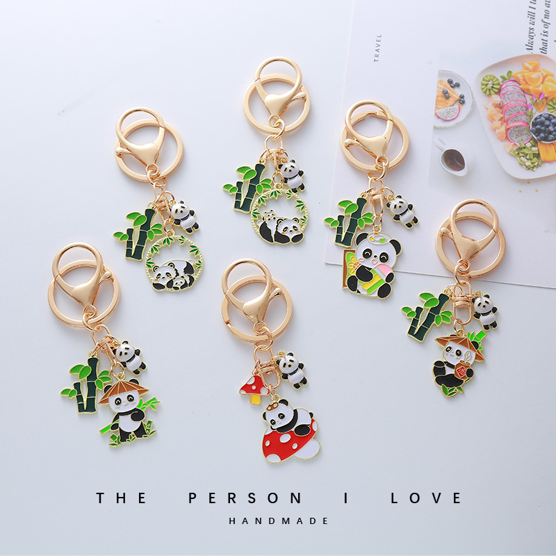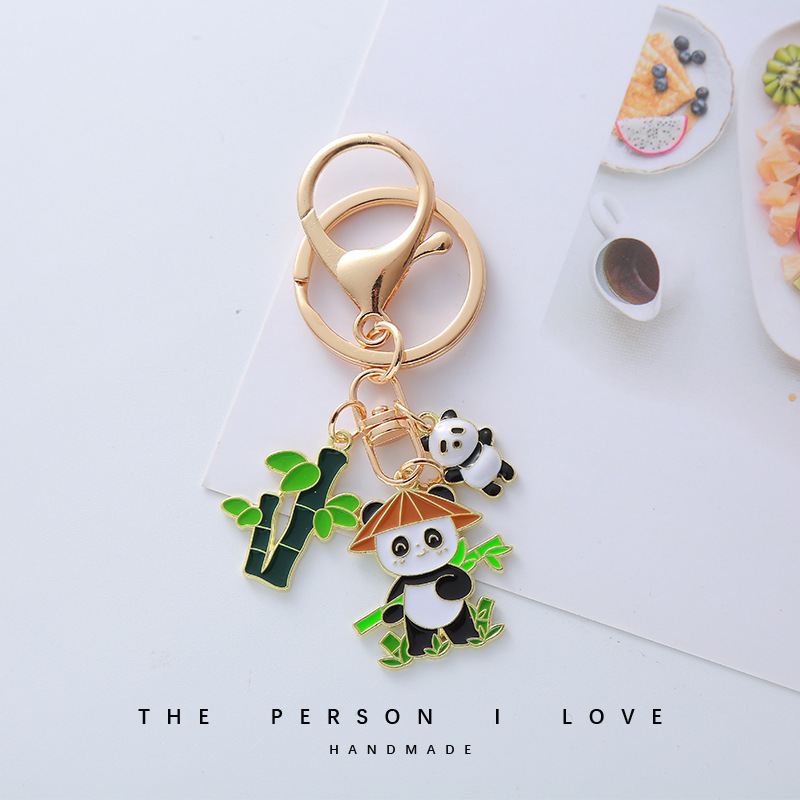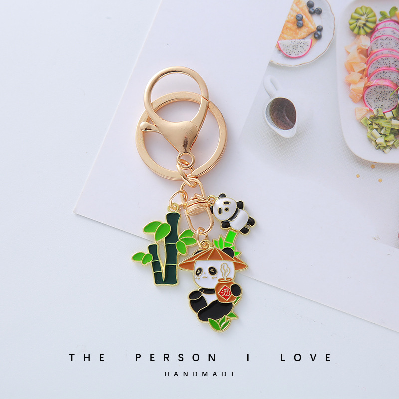 귀여운 자이언트 팬더 키 체인 중국 스타일 만화 국보 금속 펜던트 남녀 커플 교수형 기념품 선물스토어 가기