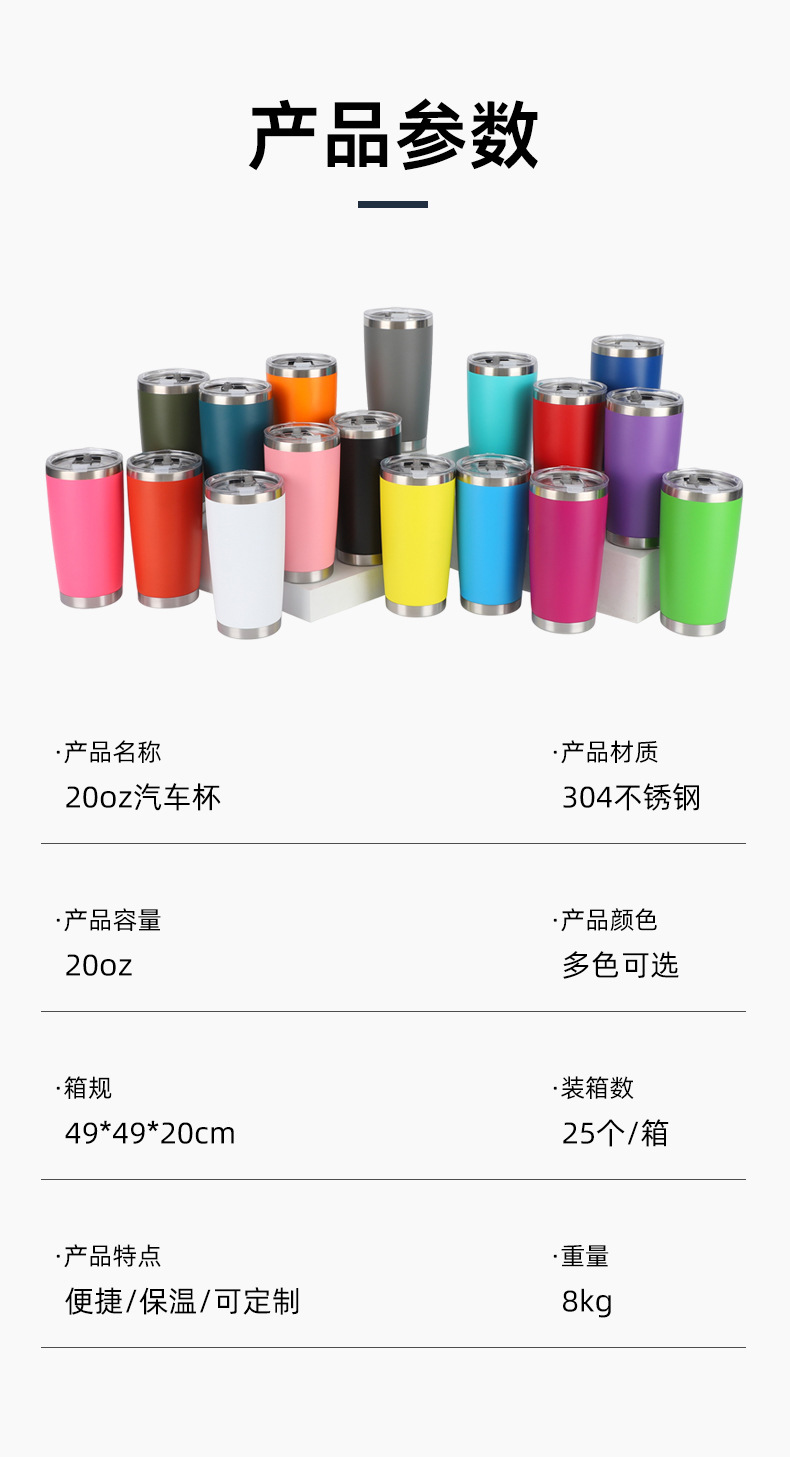 크로스보더 20온스 자동차컵 304 스테인리스 이중 진공 단열 보온보냉컵 차량용 스프레이 코팅 맥주 아이스컵스토어 가기