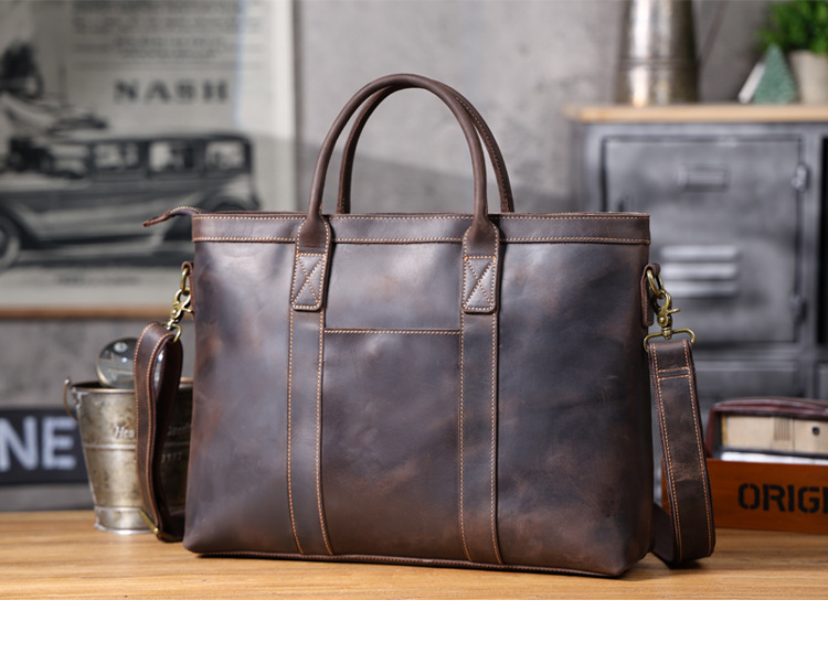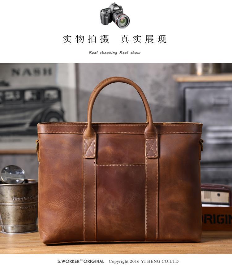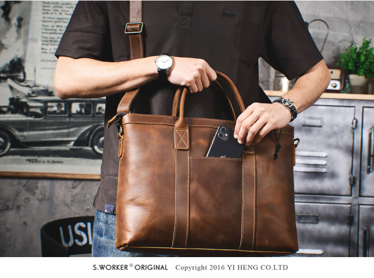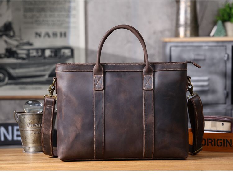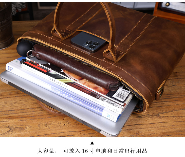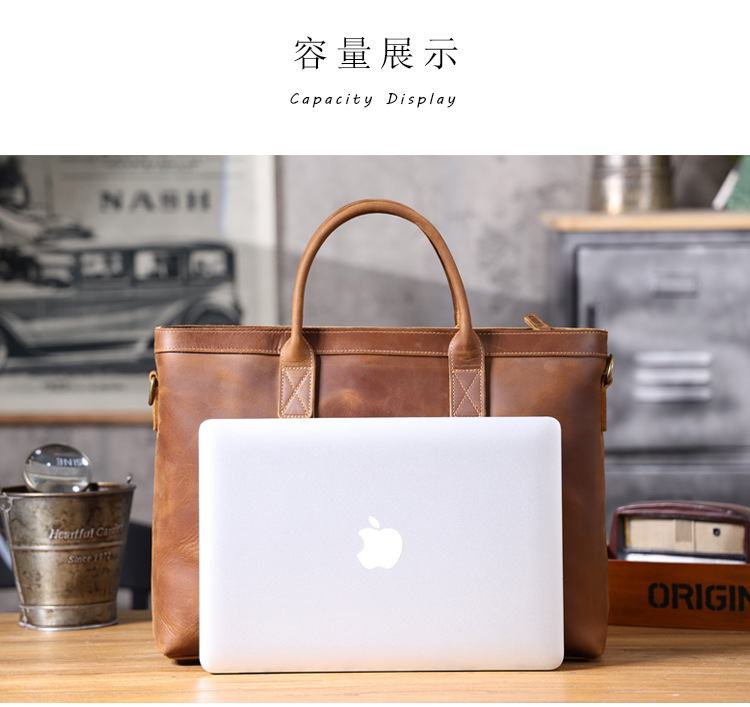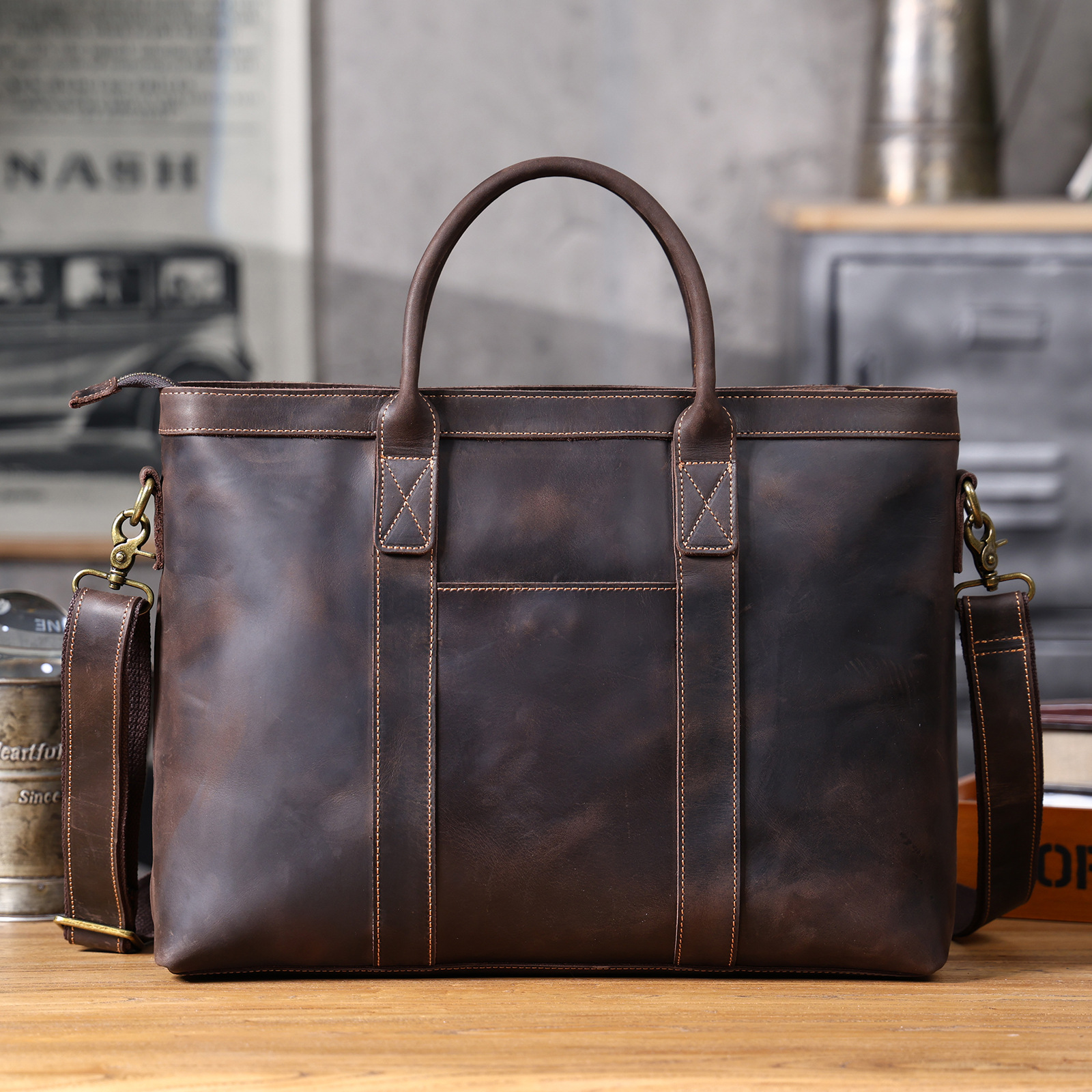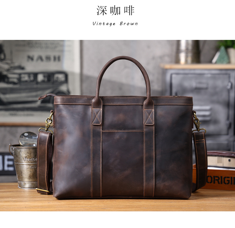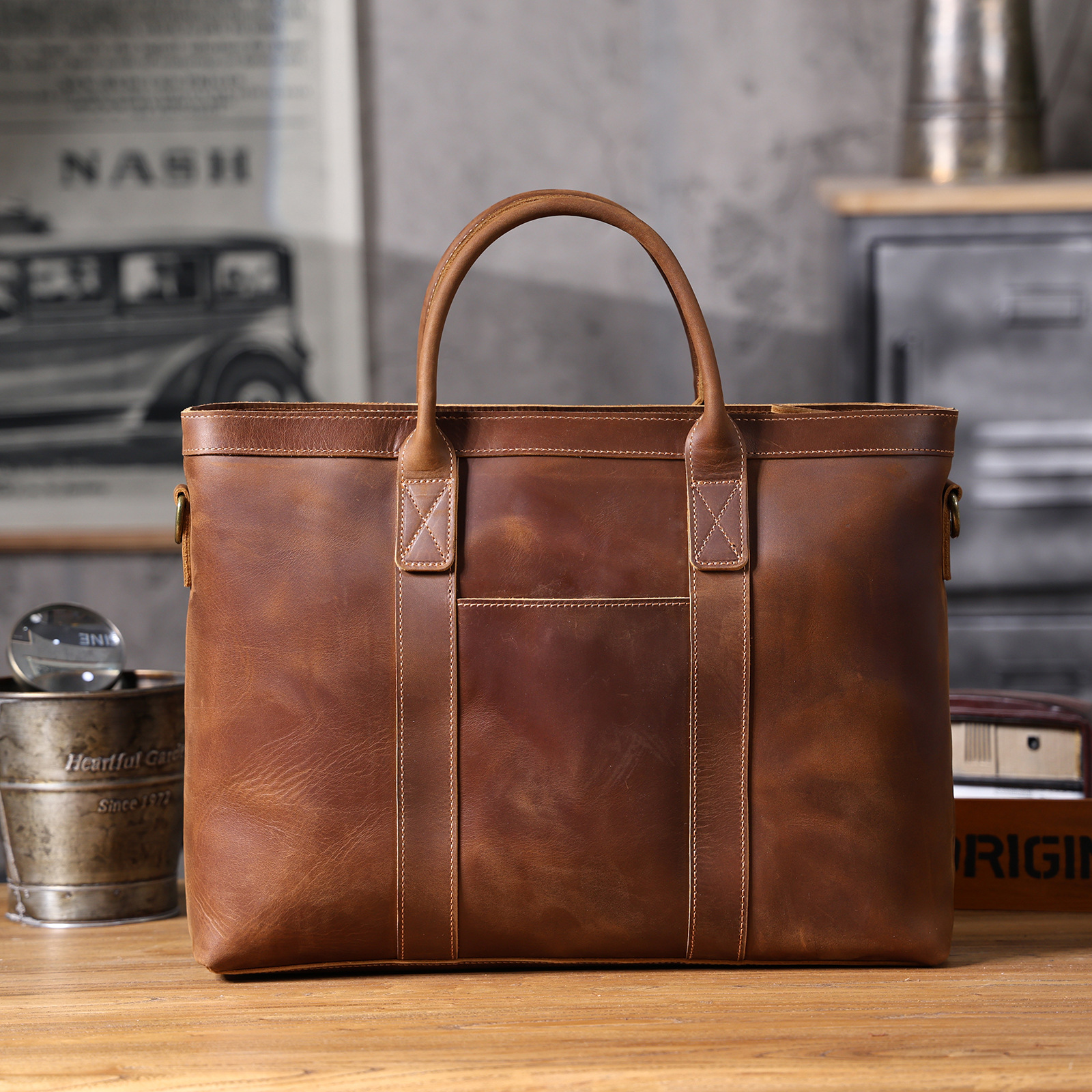 새로운 미친 말 가죽 핸드백 남성 서류 가방 사업 어깨 레트로 정품 가죽 컴퓨터 가방 헤드 레이어 Cowhide 대외 무역스토어 가기