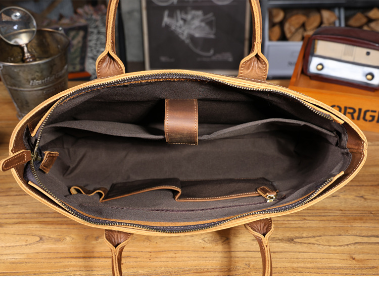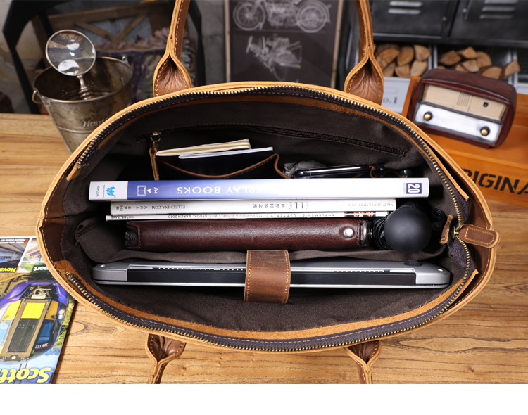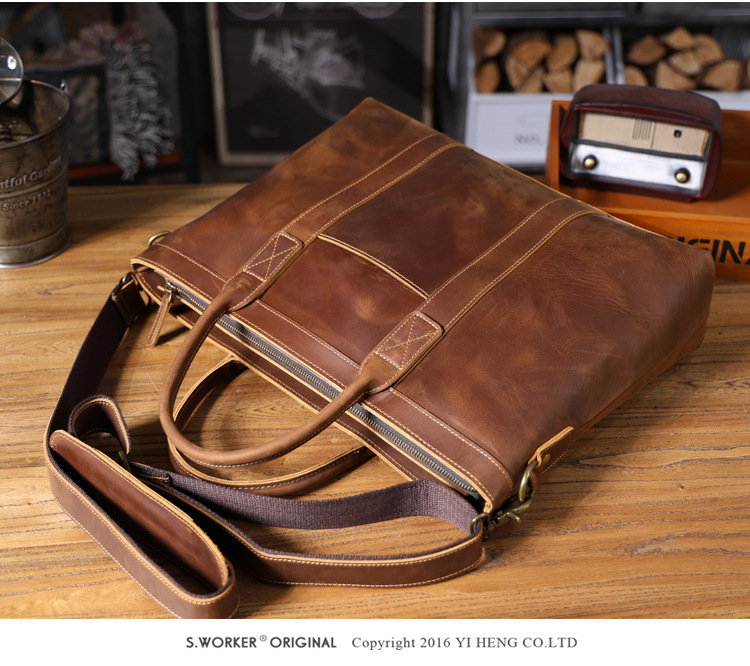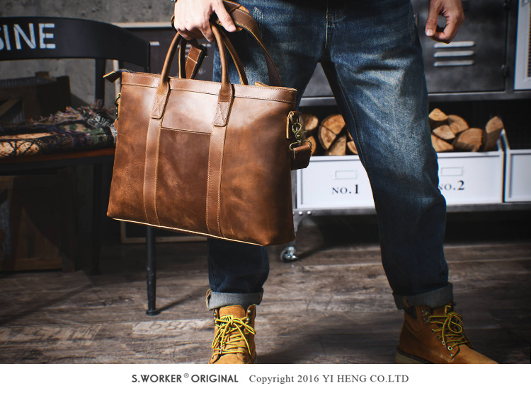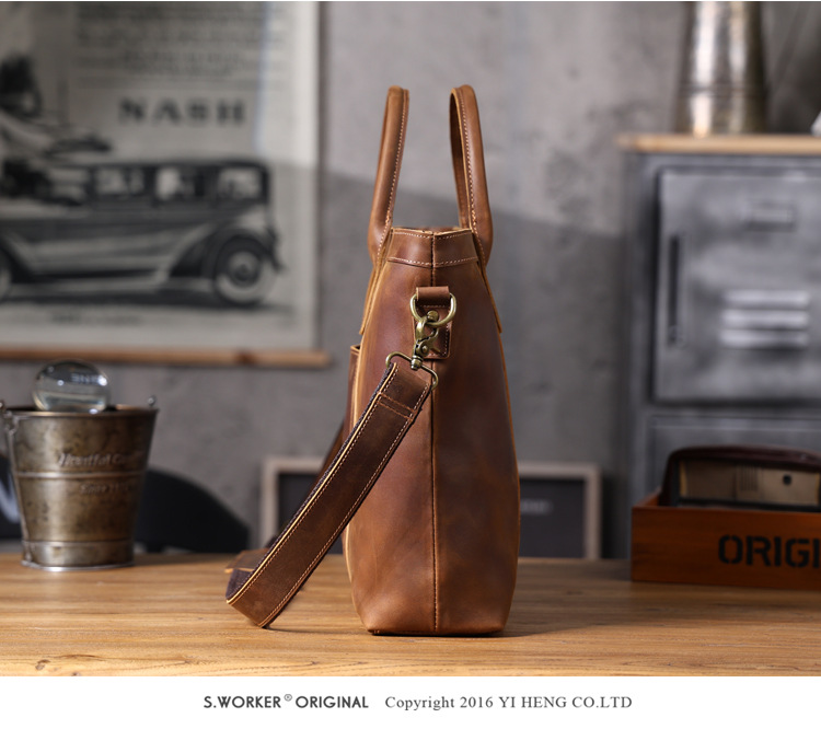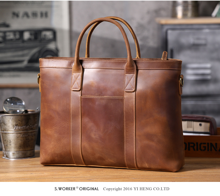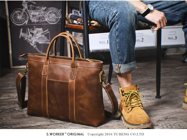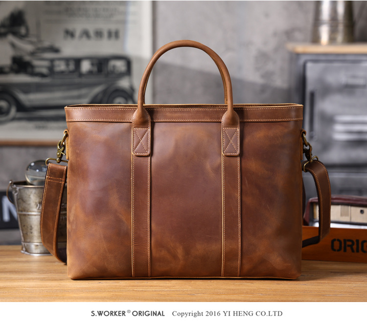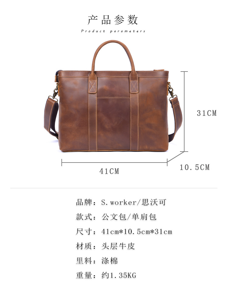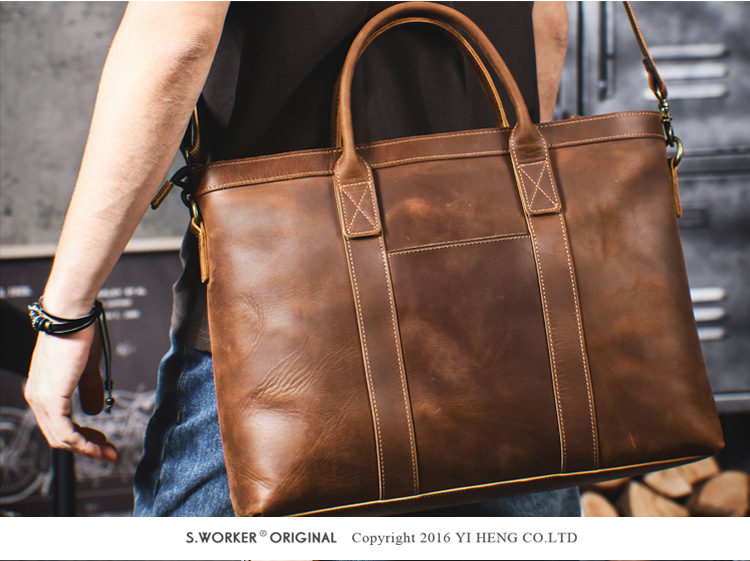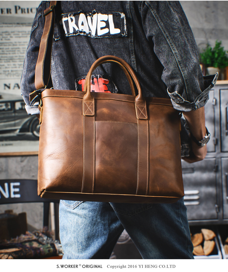 새로운 미친 말 가죽 핸드백 남성 서류 가방 사업 어깨 레트로 정품 가죽 컴퓨터 가방 헤드 레이어 Cowhide 대외 무역스토어 가기