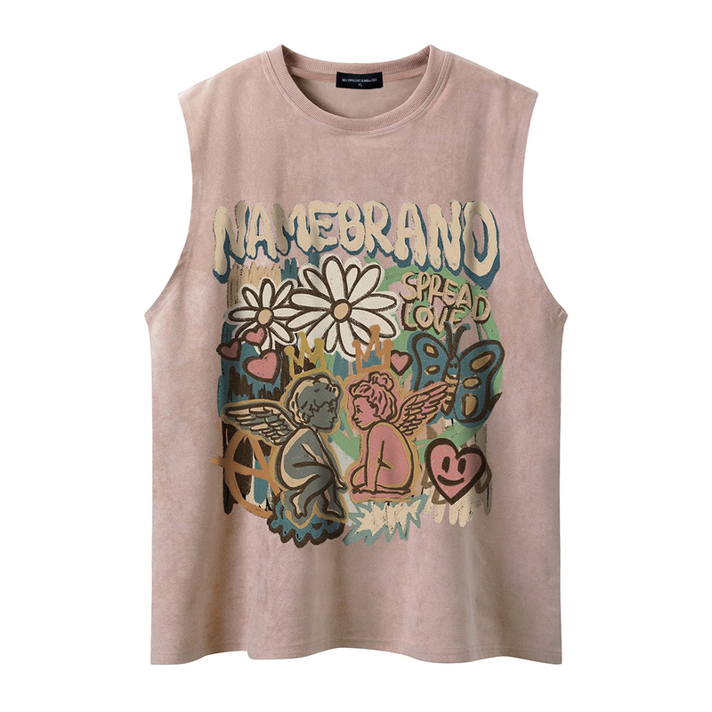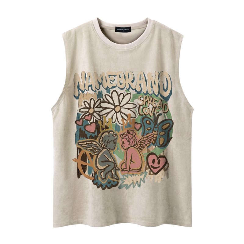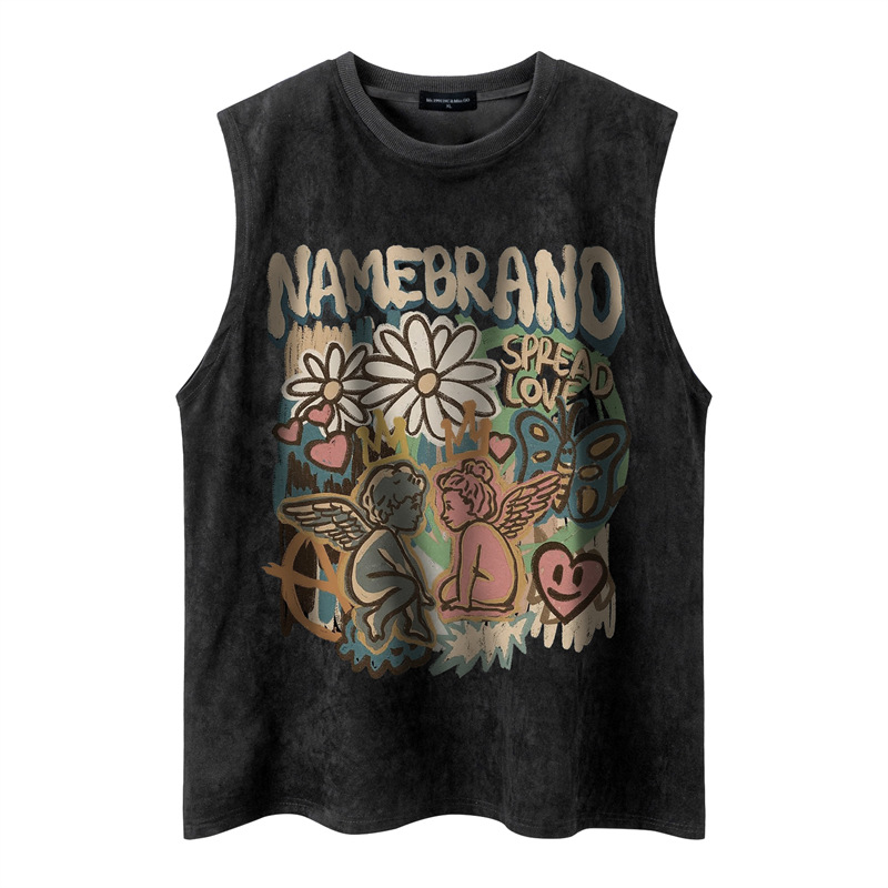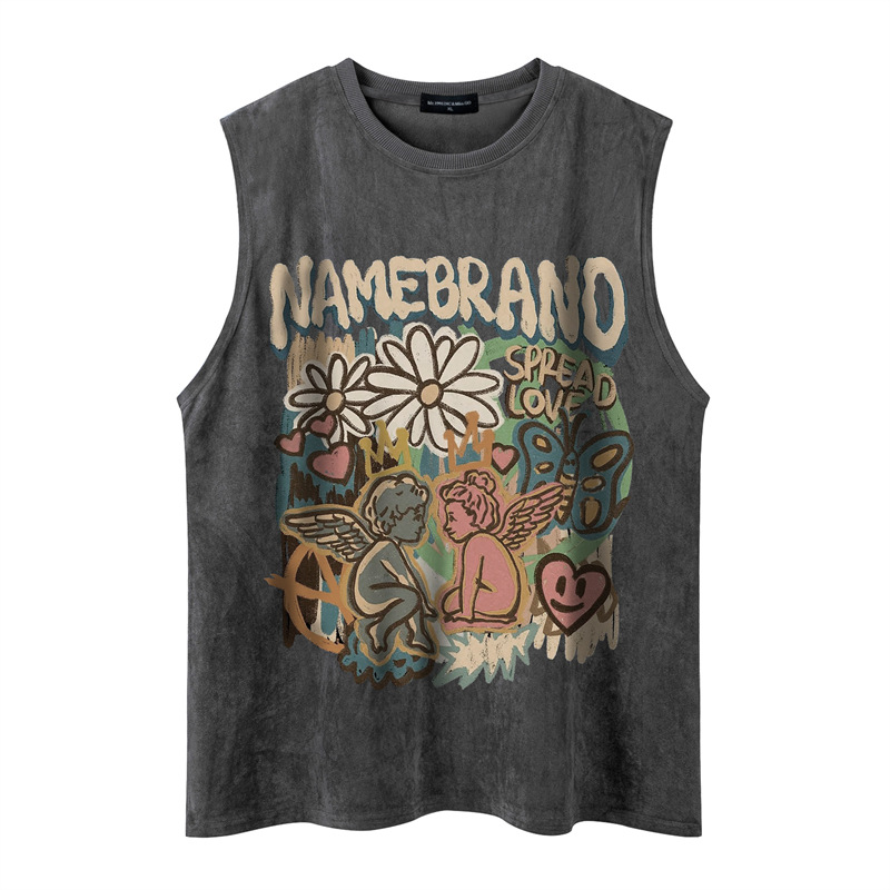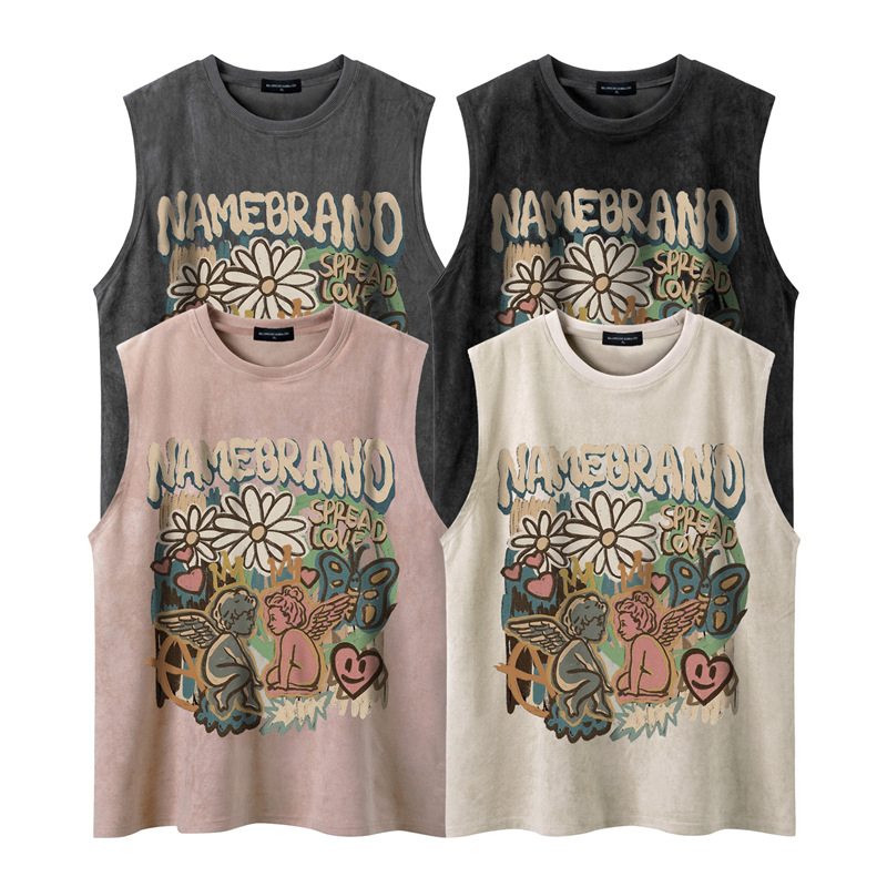 Tang Mu Chao 24 여름 매일 패션 도시 소년 간단한 캐주얼 라운드 넥 소매 패셔너블 남성용 루즈 라운드 넥 조끼스토어 가기