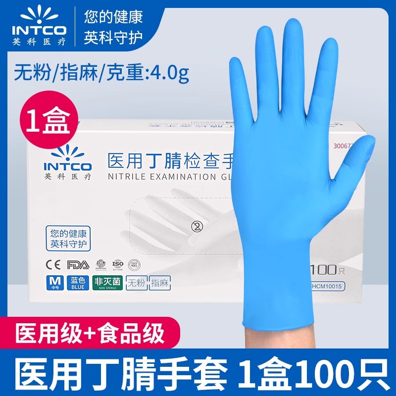 잉케 의료용 일회용 장갑 12 인치 분말없는 9 인치 블루 니트릴 장갑 두껍게 고무 장갑 제조 업체 도매스토어 가기