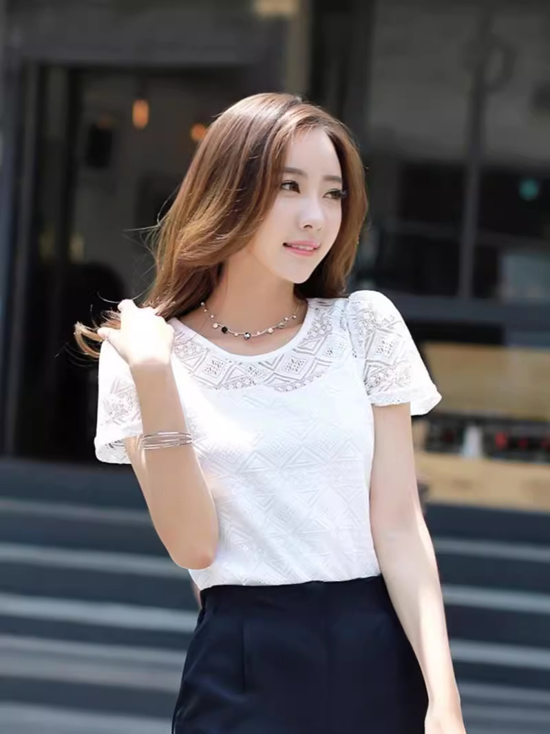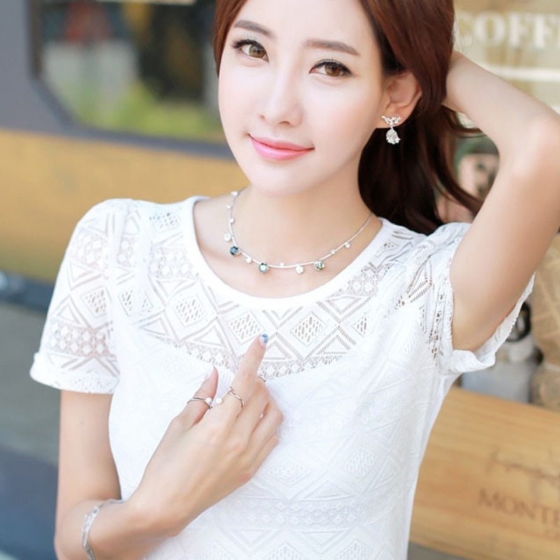 국경 도매 레이스 여성 여름 새로운 한국 스타일 반팔 티셔츠 탑 슬림 피트 다목적 흰색 바닥 셔츠 대외 무역스토어 가기