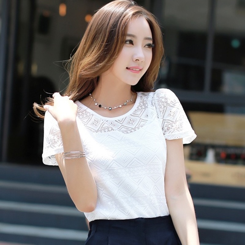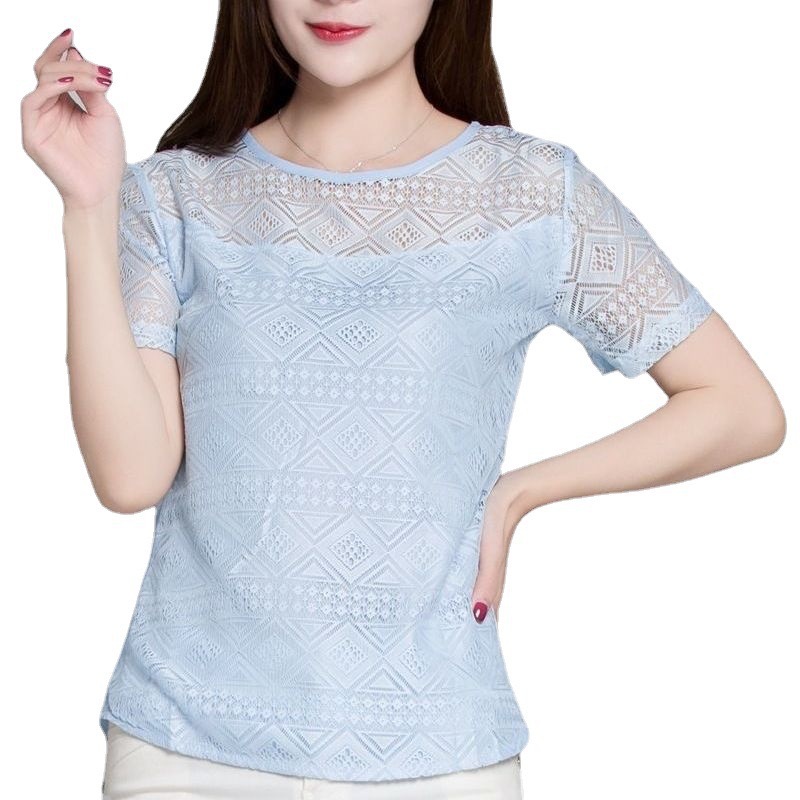 국경 도매 레이스 여성 여름 새로운 한국 스타일 반팔 티셔츠 탑 슬림 피트 다목적 흰색 바닥 셔츠 대외 무역