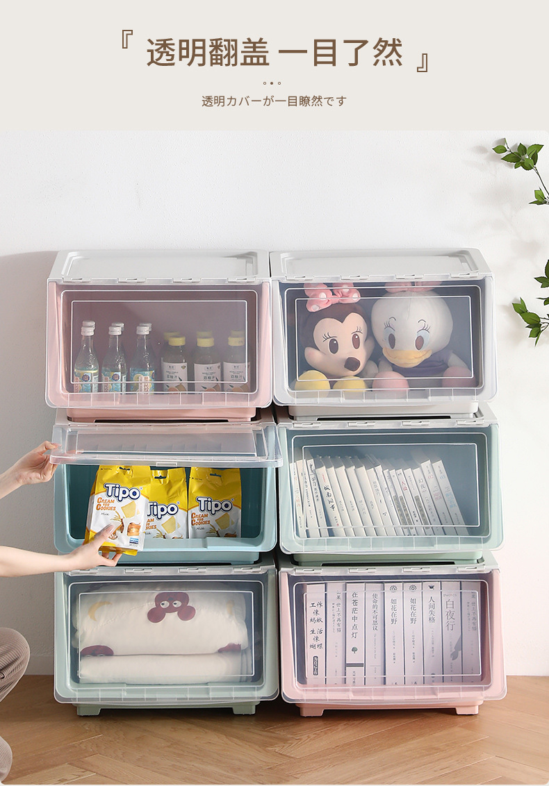 맞춤형 전면 개방형 수납함, 어린이 장난감 플립 수납함, 거실 수납 바구니, 스낵 수납함, 수납 캐비닛스토어 가기