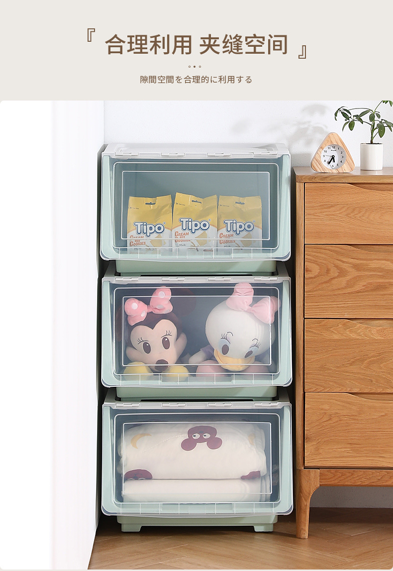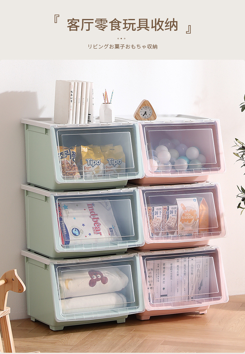 맞춤형 전면 개방형 수납함, 어린이 장난감 플립 수납함, 거실 수납 바구니, 스낵 수납함, 수납 캐비닛