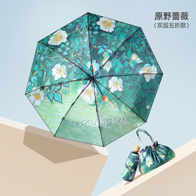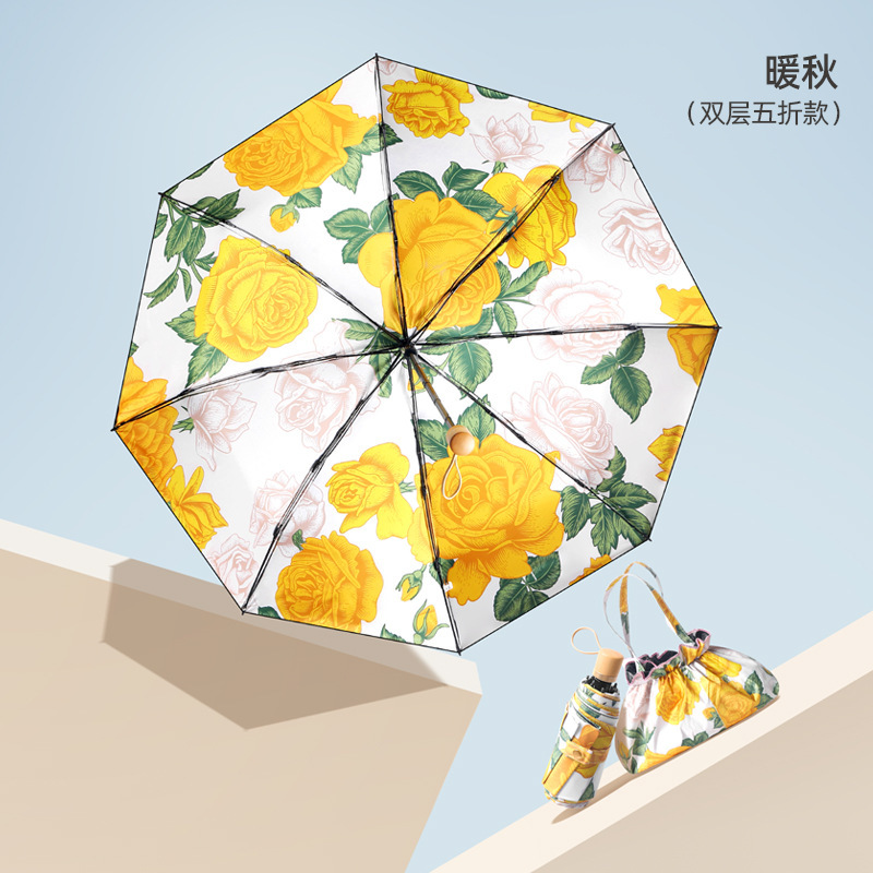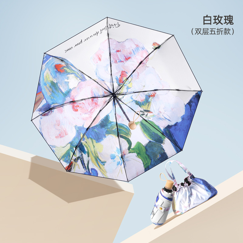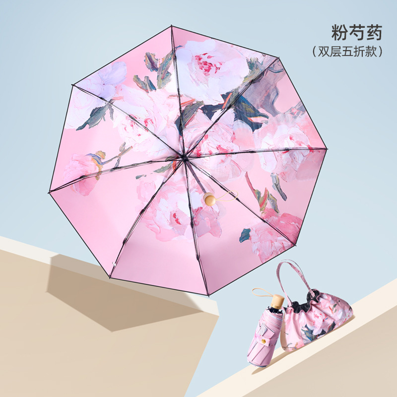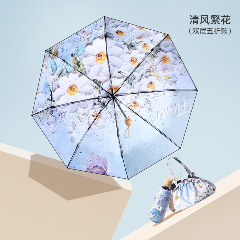 • 한여름 분말 50% 접은 6 뼈 손가락 반지 우산