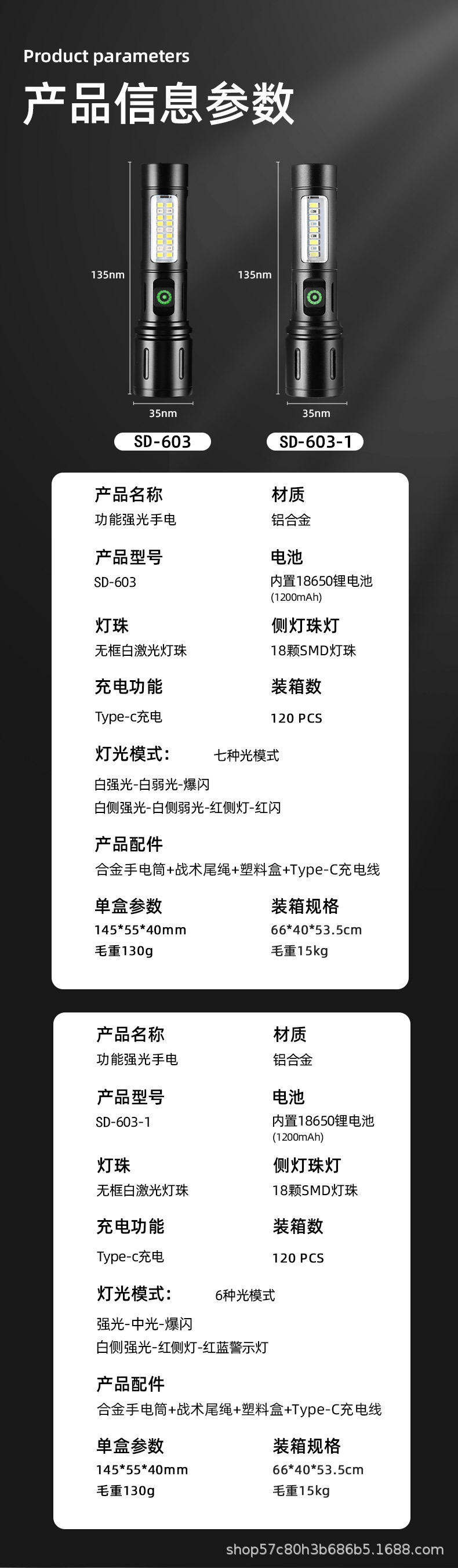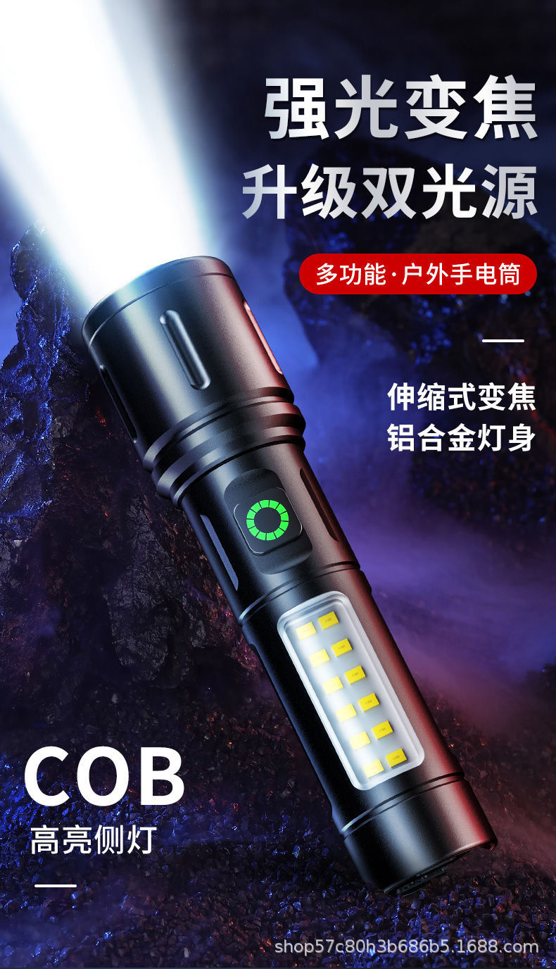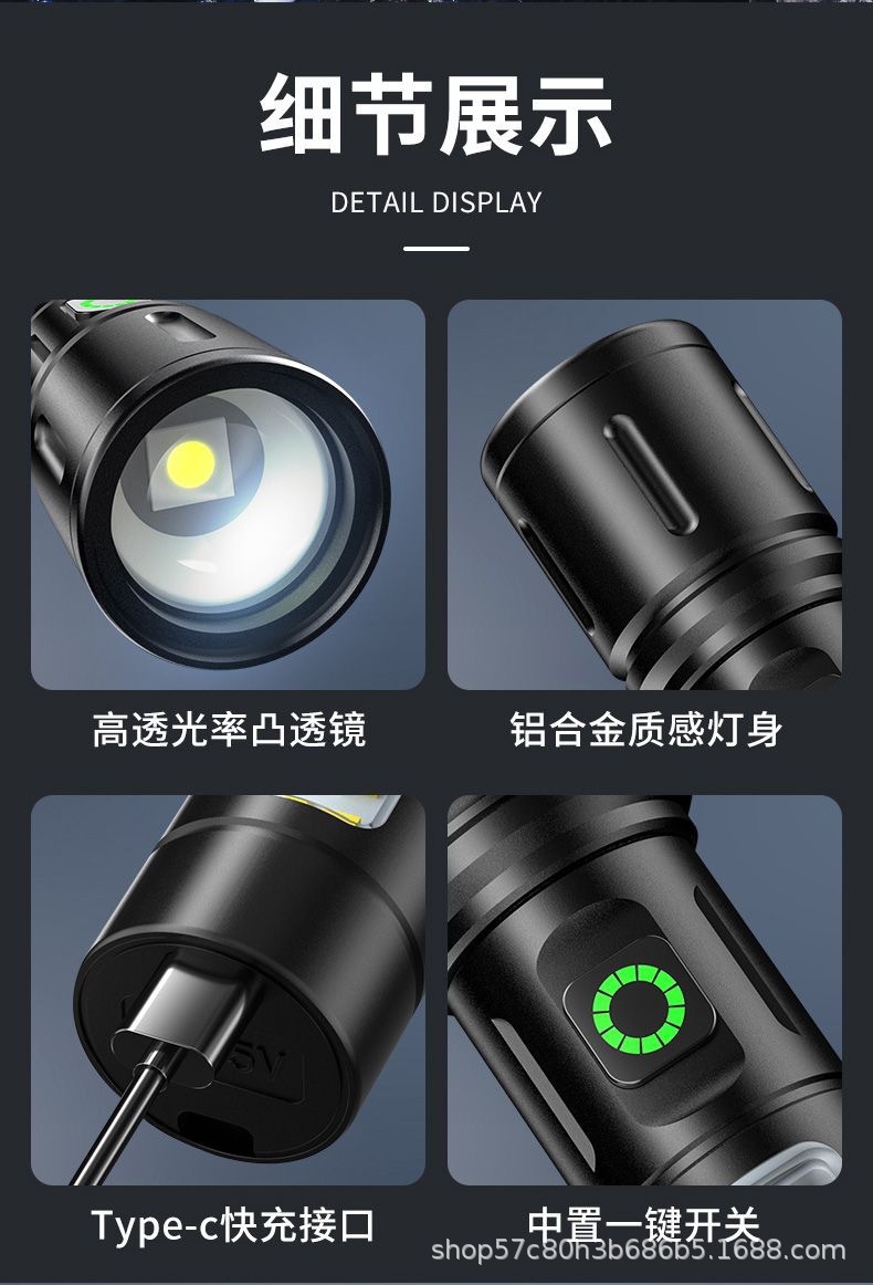 새로운 알루미늄 합금 손전등 typ-c 충전식 야외 cob 측면 조명 경고 작업 조명 야외 조명스토어 가기