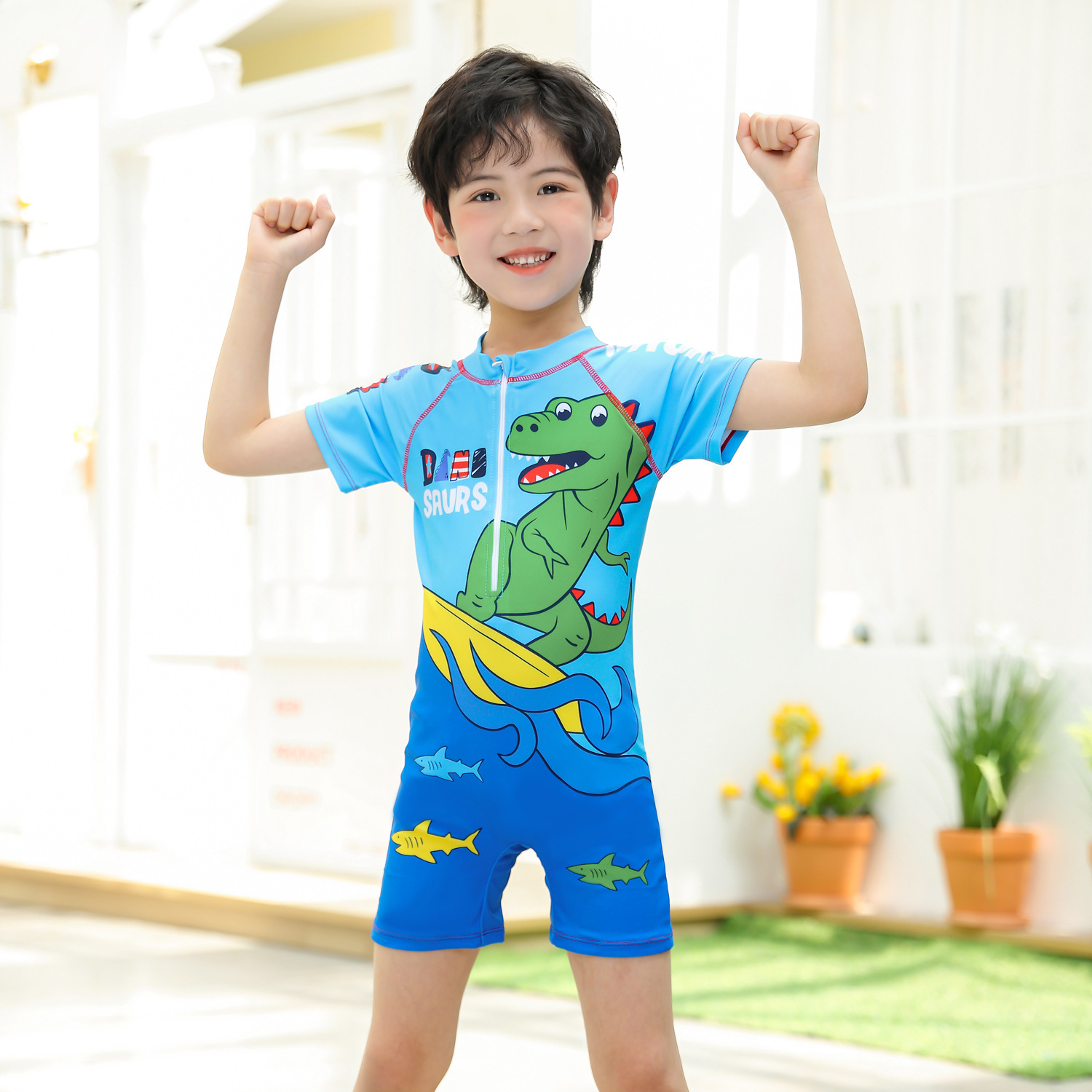 여름 소년 원피스 수영복 어린이 만화 공룡 중형 및 대형 어린이 수영복 소년 빠른 건조 어린이 아기 수영복