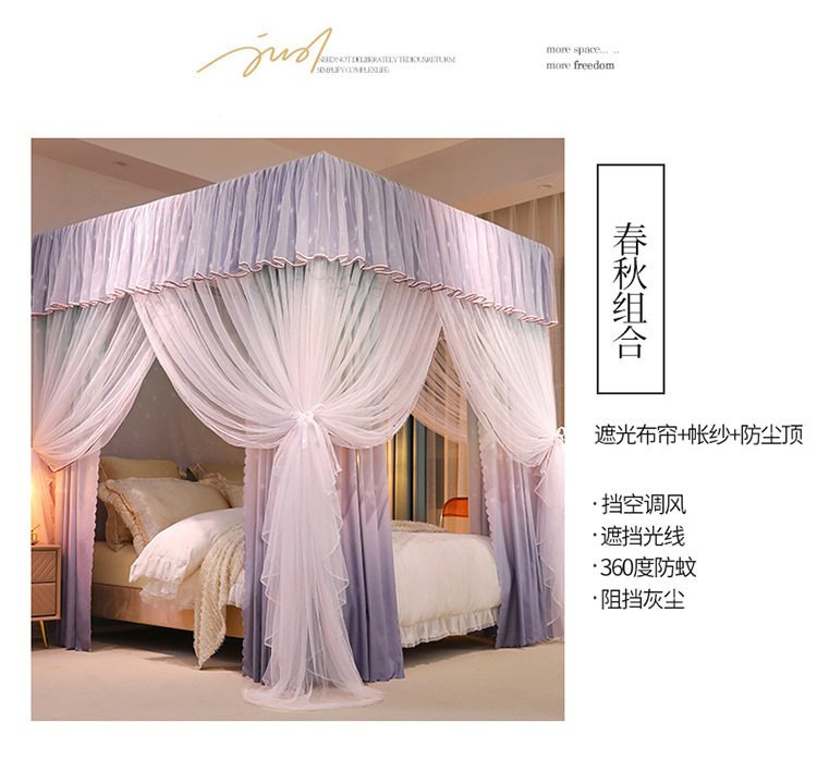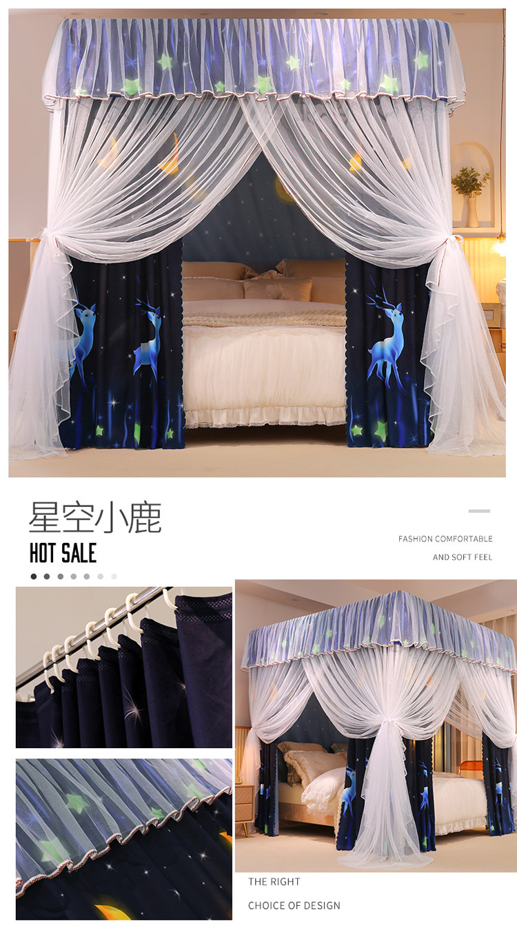 침대 커튼 가정용 침실 침대 커튼 모기장 통합 바닥 브라켓 완전히 닫힌 3 도어 음영 앞 유리 따뜻한스토어 가기