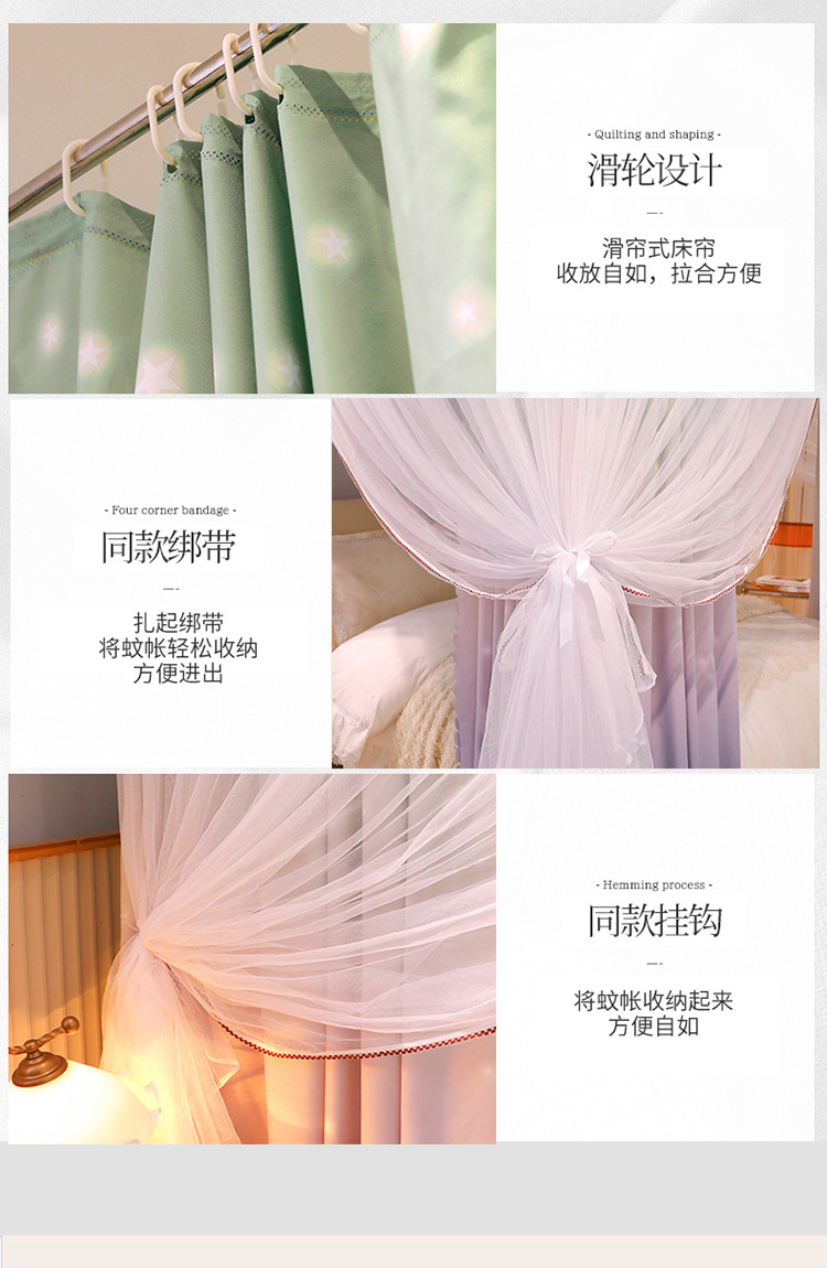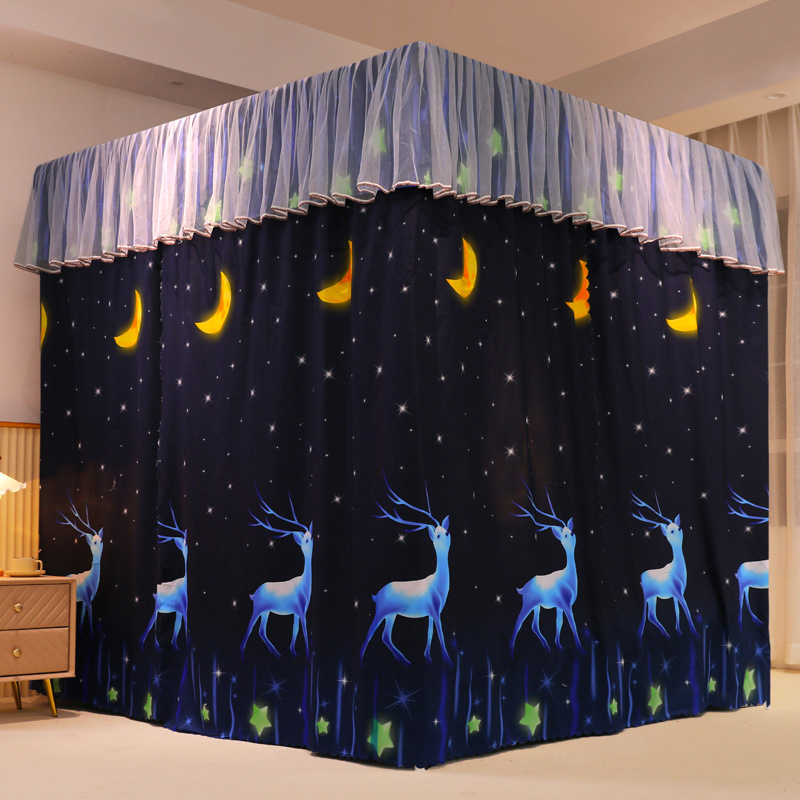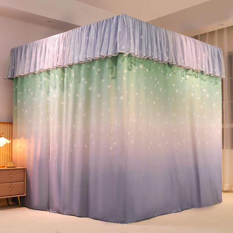 침대 커튼 가정용 침실 침대 커튼 모기장 통합 바닥 브라켓 완전히 닫힌 3 도어 음영 앞 유리 따뜻한