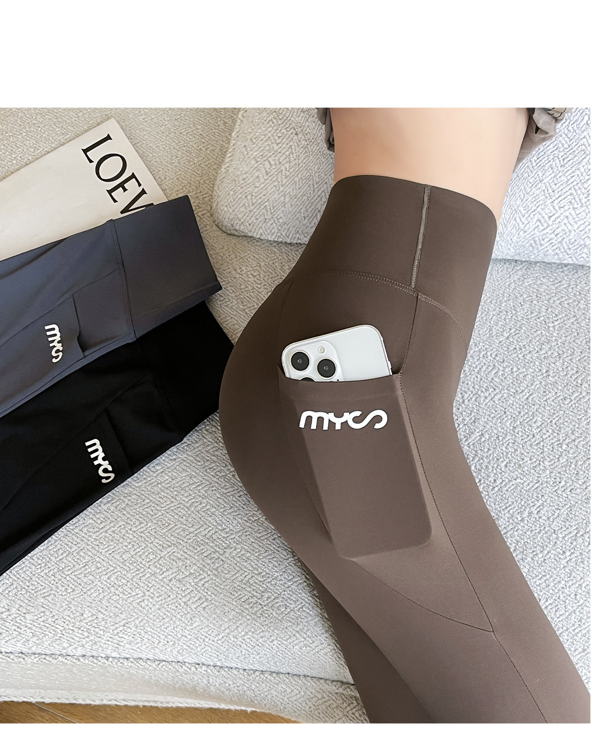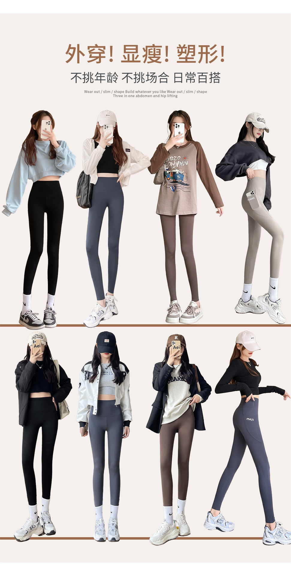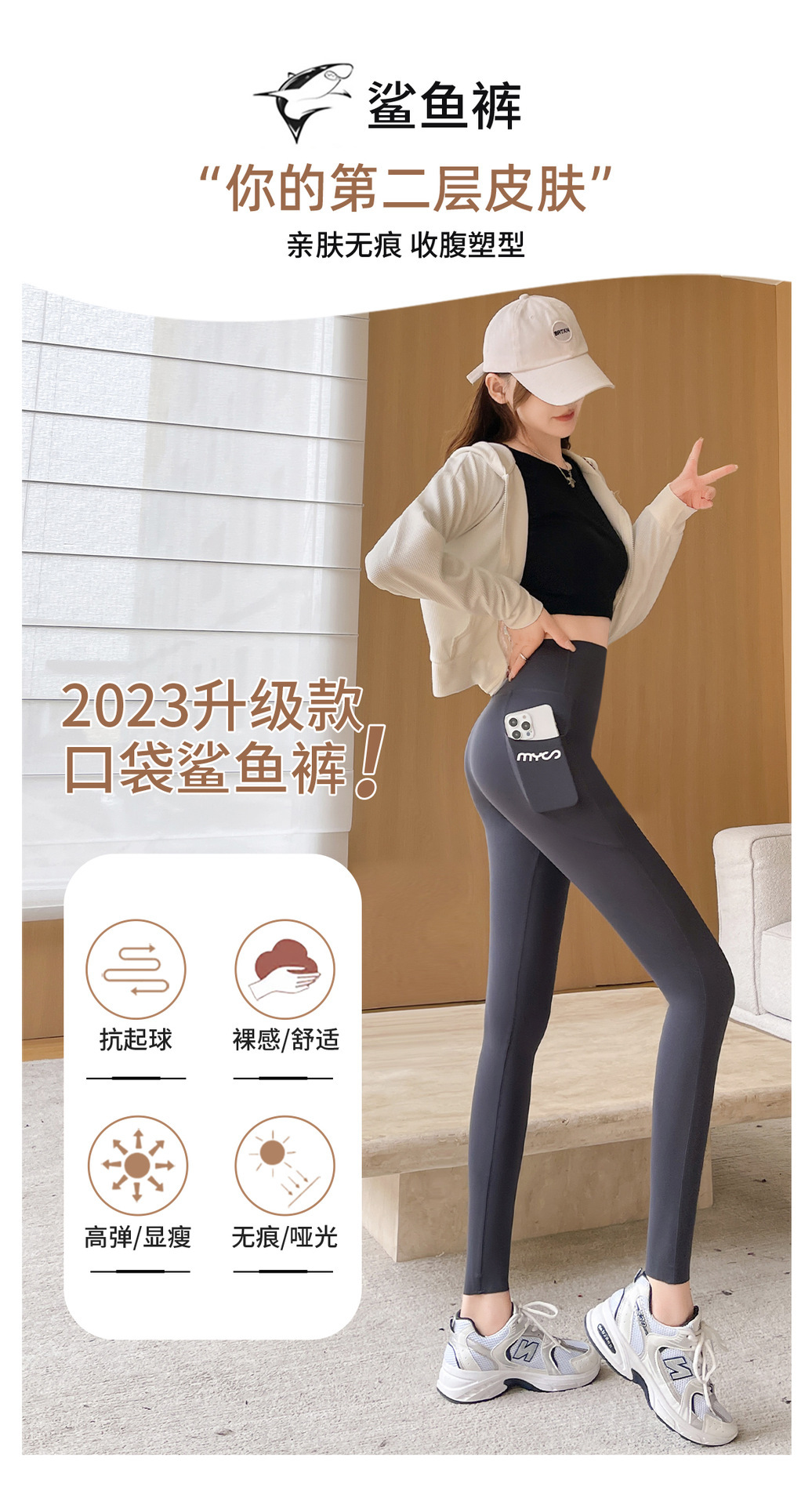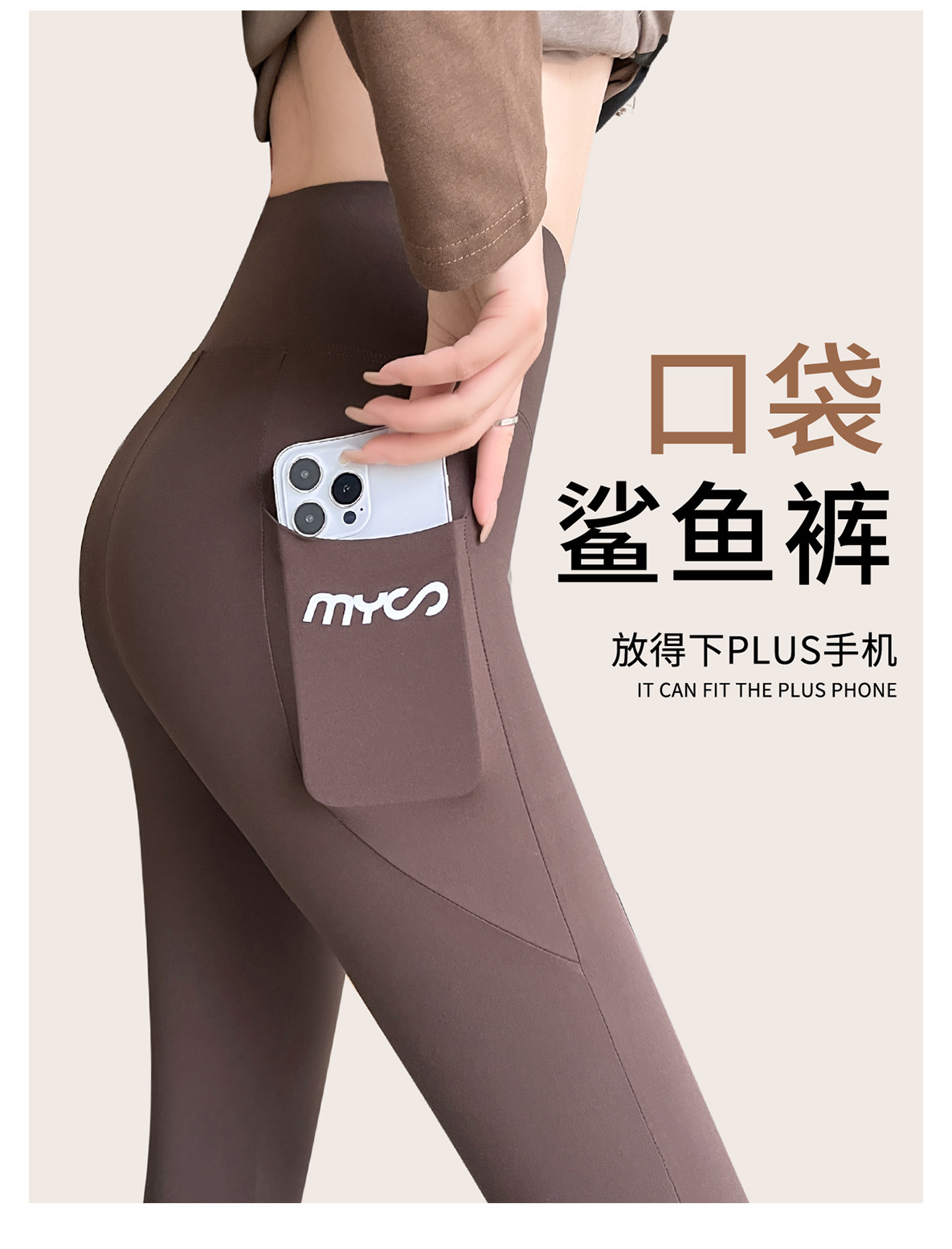 봄과 여름 상어 바지 바비 타이트 바지 높은 허리 벨리 사이드 포켓 얇은 외부 착용 요가 스포츠 레깅스