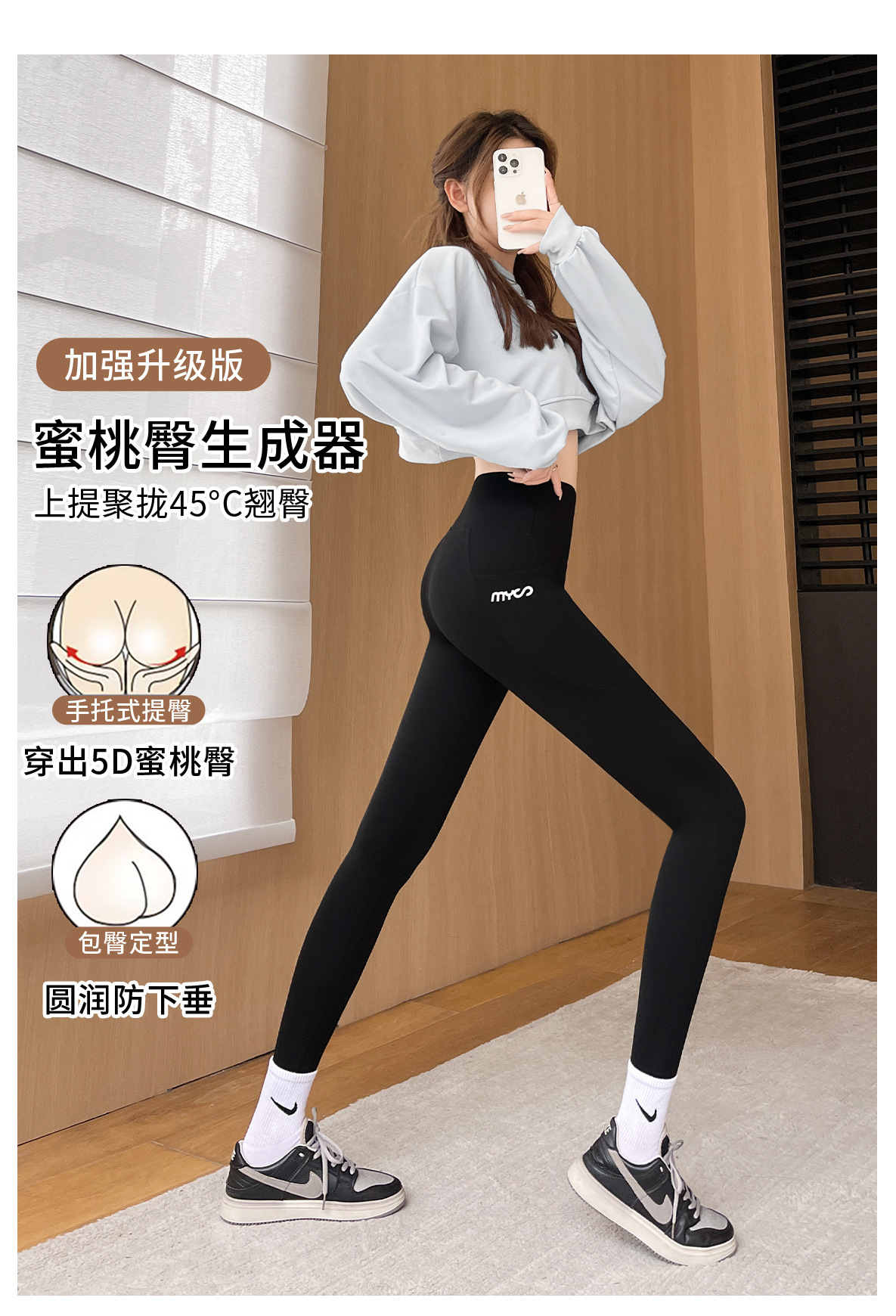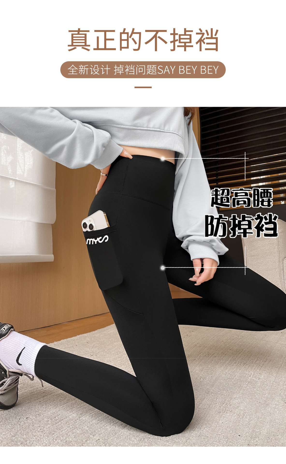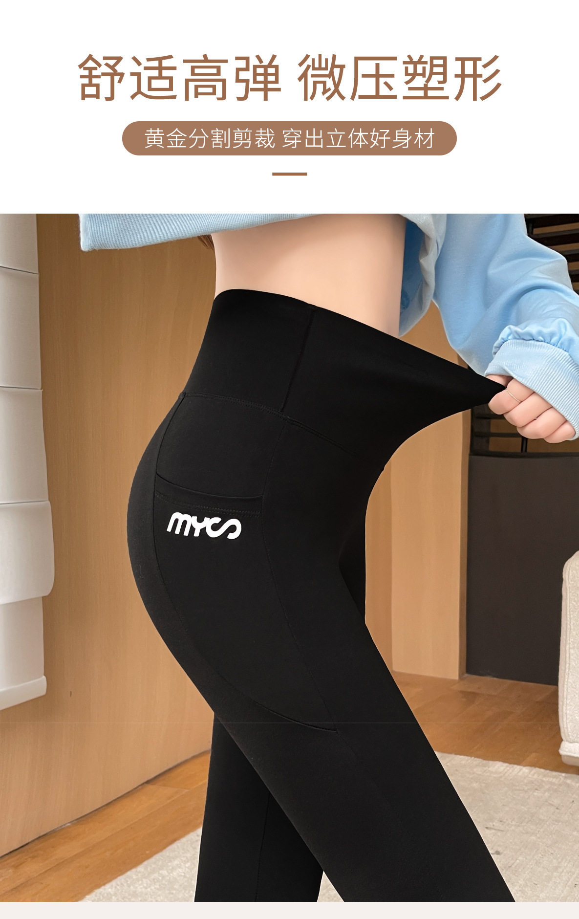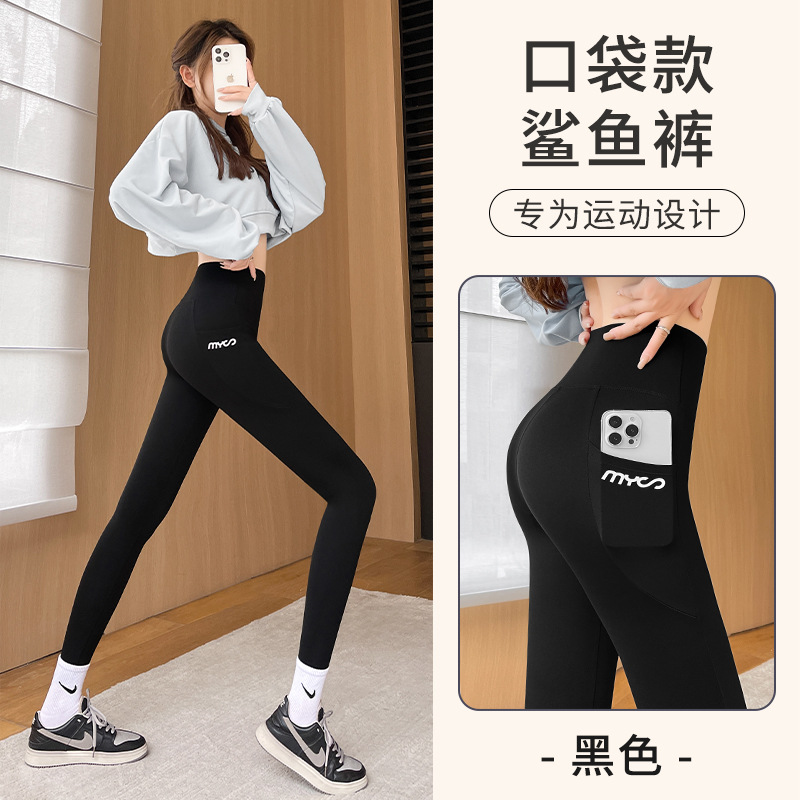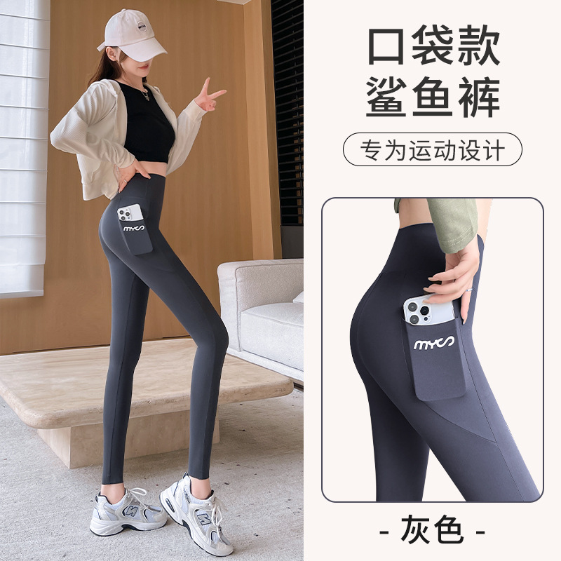 봄과 여름 상어 바지 바비 타이트 바지 높은 허리 벨리 사이드 포켓 얇은 외부 착용 요가 스포츠 레깅스스토어 가기