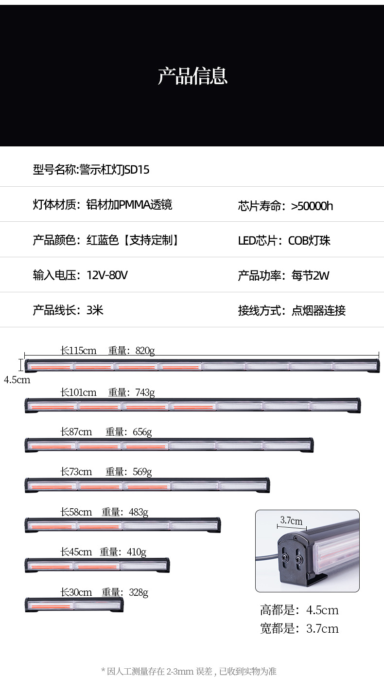 COB 스트립 깜박이는 가벼운 자동차 안전 경고 바 라이트 엔지니어링 차량 트럭 고속도로 경고 신호등