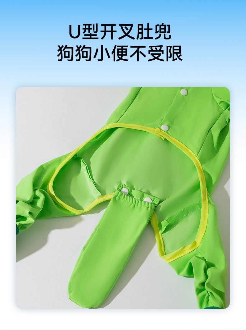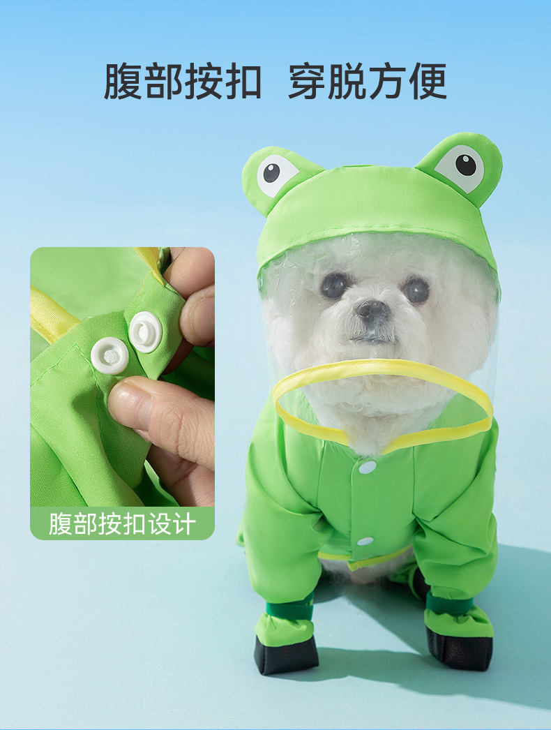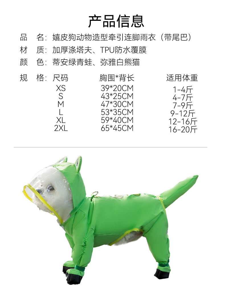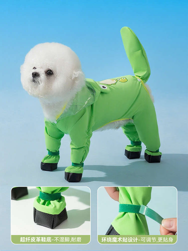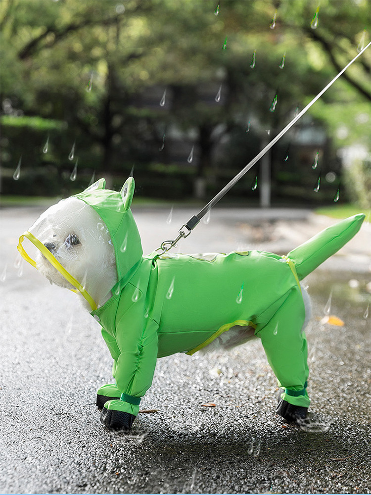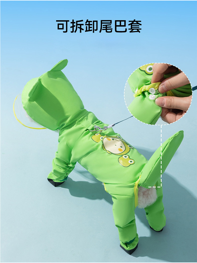 신선한 녹색 동물 모양의 발과 꼬리가 달린 레인코트, 강아지가 비오는 날 외출할 때 방수, 봄과 여름용 애완동물 용품스토어 가기