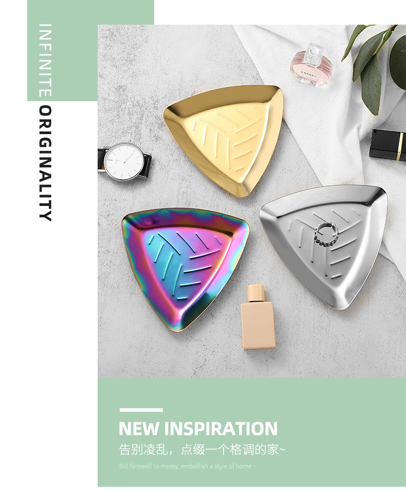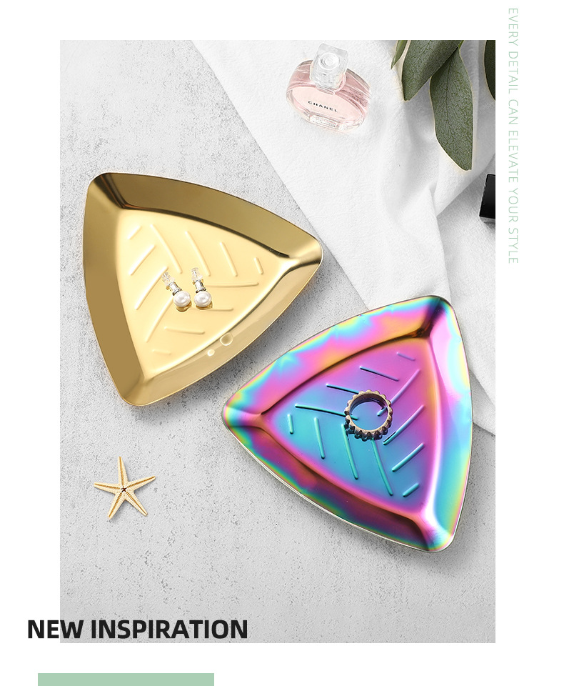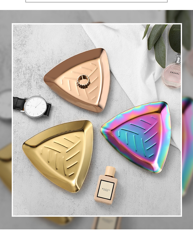 Ins 갈색 스테인레스 스틸 작은 트레이 여자 반지 착용 갑옷 쥬얼리 쥬얼리 트레이 거실 입구 장식 금속 트레이