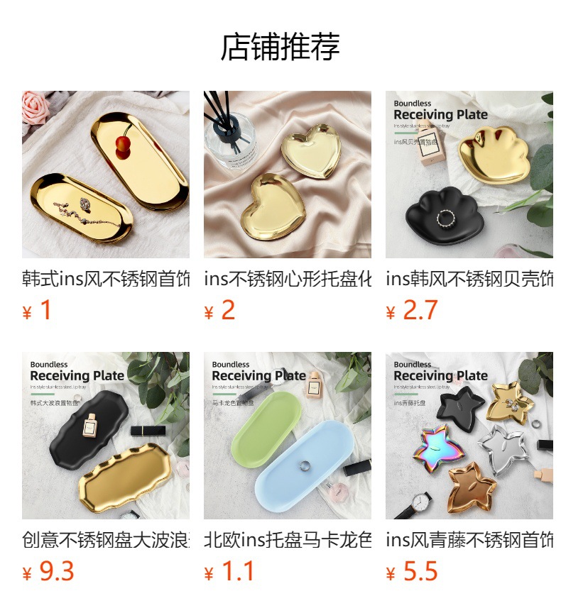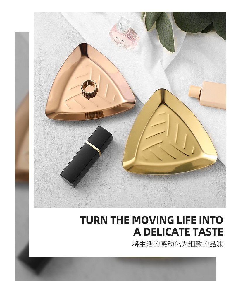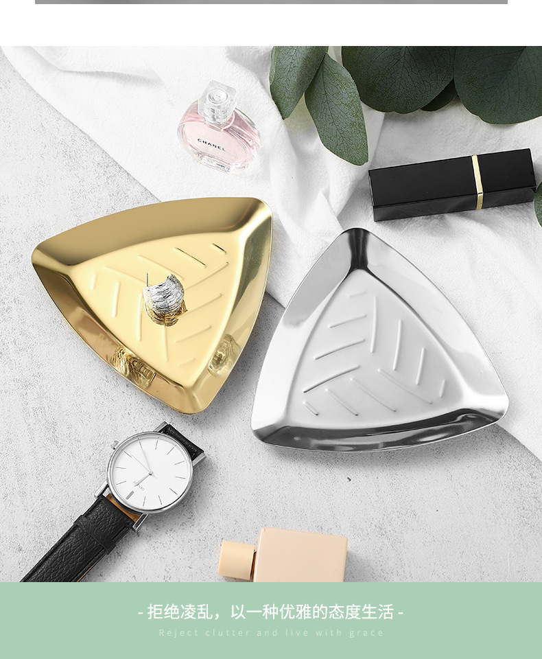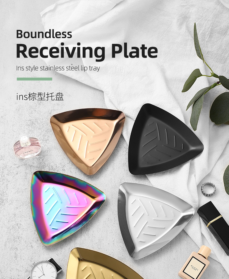 Ins 갈색 스테인레스 스틸 작은 트레이 여자 반지 착용 갑옷 쥬얼리 쥬얼리 트레이 거실 입구 장식 금속 트레이스토어 가기